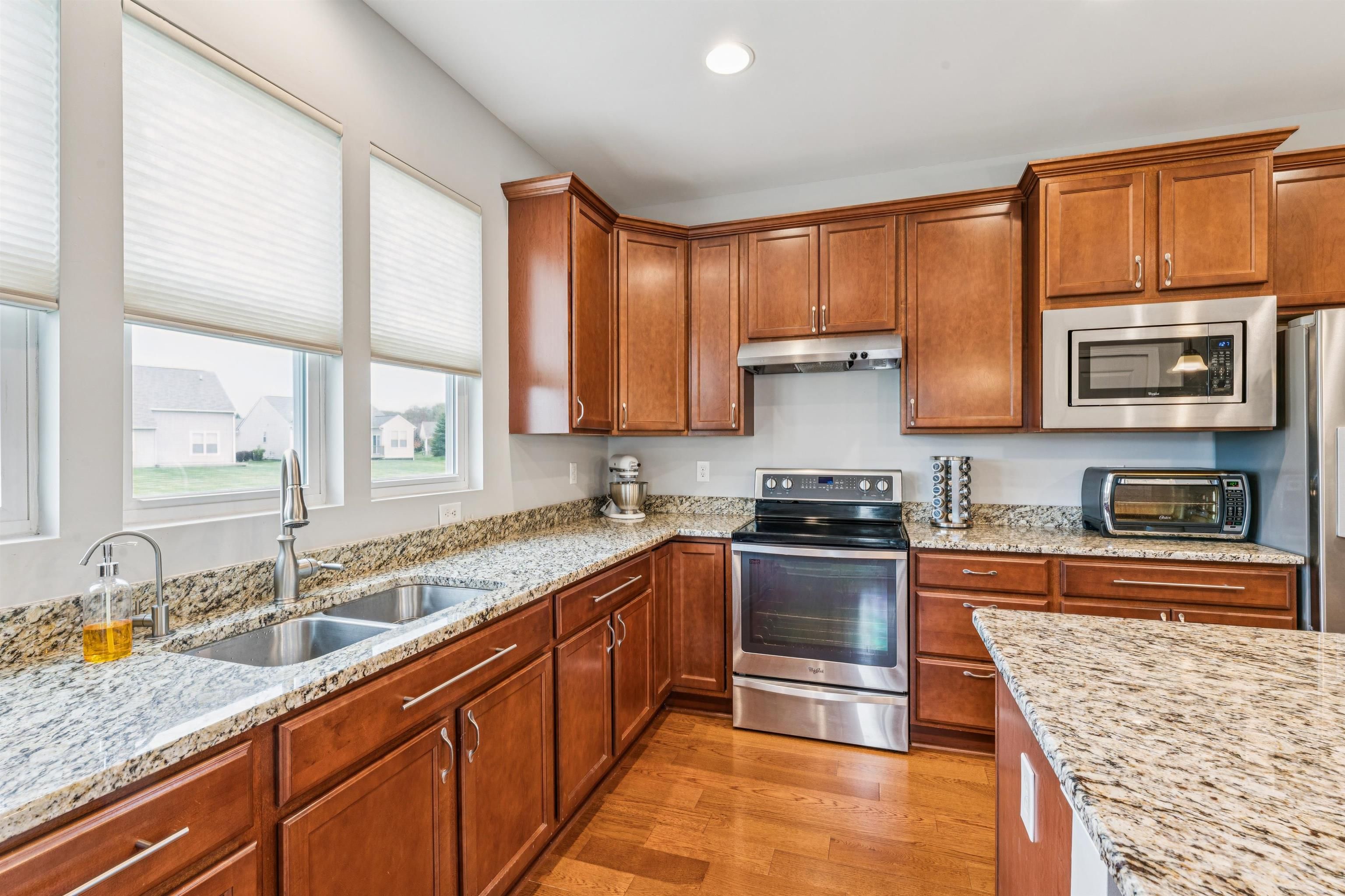 Perfectly located in the exclusive Townes at Grand Reserve, this beautifully maintained home offers a perfect blend of comfort, style, and convenience - ready for immediate move-in! Designed with thoughtful upgrades and a well-planned layout that maximizes space and storage, it features a freshly painted interior, premium whole-house water filtration and conditioning system, reverse osmosis at the kitchen sink, and an expanded two-car garage with an additional alcove - ideal for a workshop, craft area, or extra storage. Inside, you'll find a spacious open floor plan with hardwood floors and a gourmet kitchen boasting granite countertops, a large island, and a stainless steel sink. The abundance of cabinets and clever storage options throughout make everyday living effortlessly organized. A flexible room provides the perfect space for a home office or cozy reading nook. Both bedrooms include custom closets, while the stunning window shades add a touch of elegance and privacy throughout. Living in Grand Reserve means enjoying low-maintenance, luxury living year-round with access to resort-style amenities. The 15,500 sq. ft. Grandview Lodge serves as the community's social hub, offering indoor and outdoor pools, a hot tub, fitness center, tennis and pickleball courts, bocce ball, disc golf, horseshoes, walking trails, and countless clubs and activities organized by a full-time lifestyle director. Whether you're looking to unwind by the pool, stay active on the courts, or connect with neighbors at community events, Grand Reserve offers the perfect balance of relaxation and recreation in a beautifully maintained, welcoming environment.