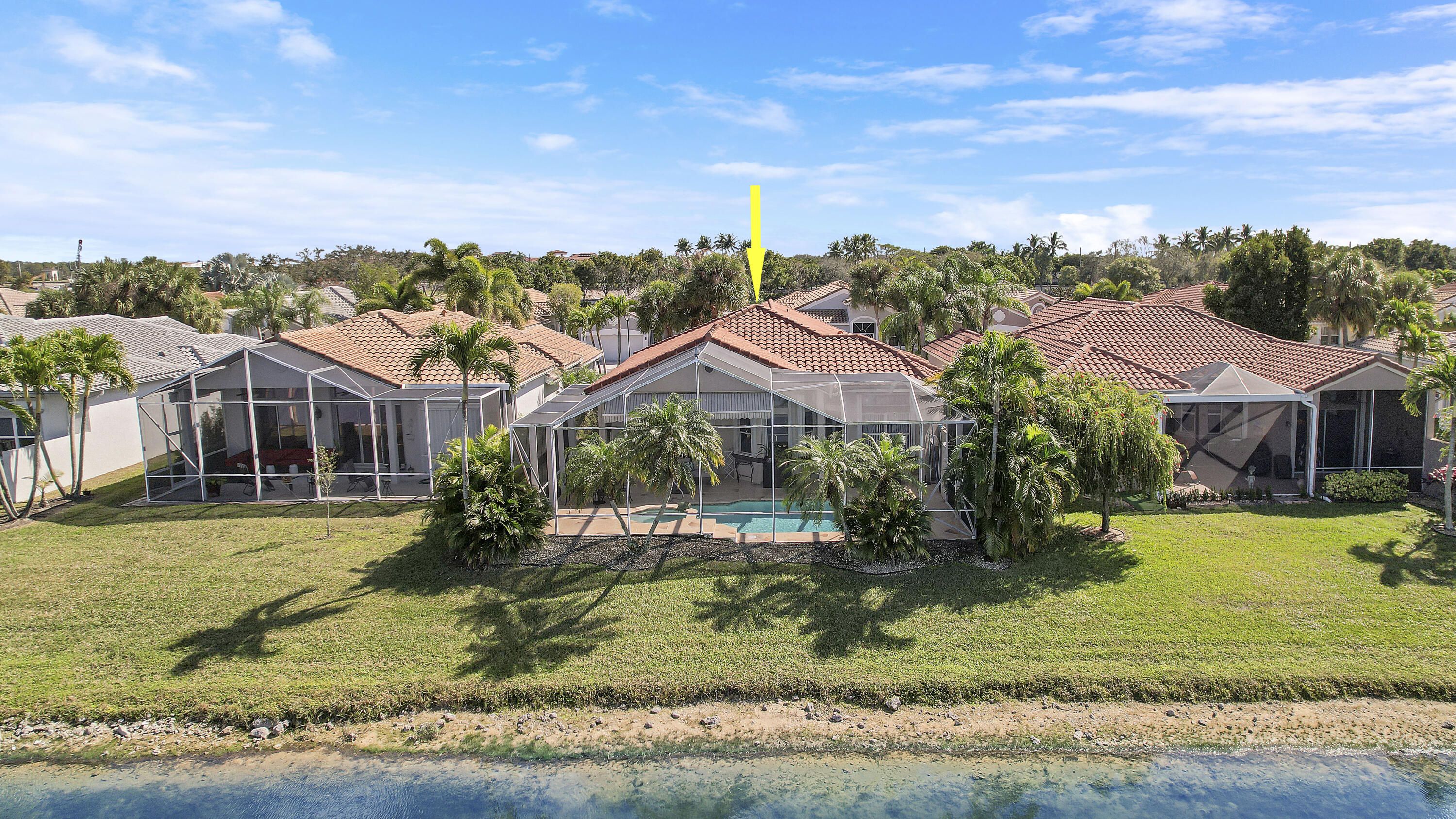 NEW ROOF Installed August, 2025! Welcome to Beautiful Bellaggio! This is a Spacious, 3 Bedroom, 2 bath, Magnificent Home, with a breathtaking Water-view and a Screened-in Private Pool, Spa, Shower and Awning. As you enter though the Impact Glass Double Doors, you cannot help but notice the large Open Floor plan. The Refaced Kitchen, with Custom Cabinets Granite Countertops and Backsplash, also has a cozy Breakfast Nook overlooking the Pool & Lake. Also featured is a Walk-in Pantry. The Master Bedroom Suite has 2 Walk-in Custom Closets and a Master Bathroom with a Separate Shower & Roman Tub with Dual His & Hers Vanities. The Guest Bathroom has been updated.