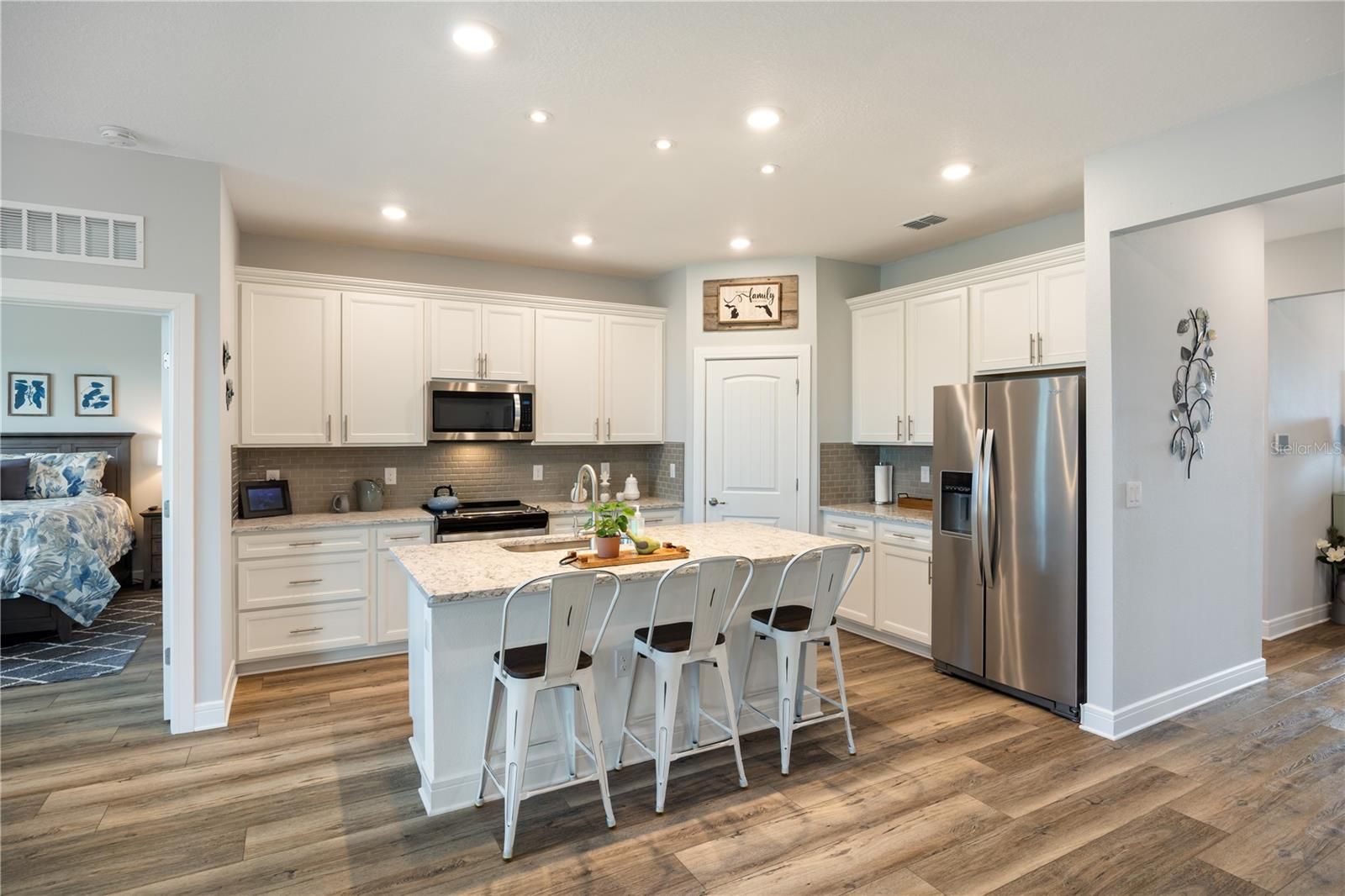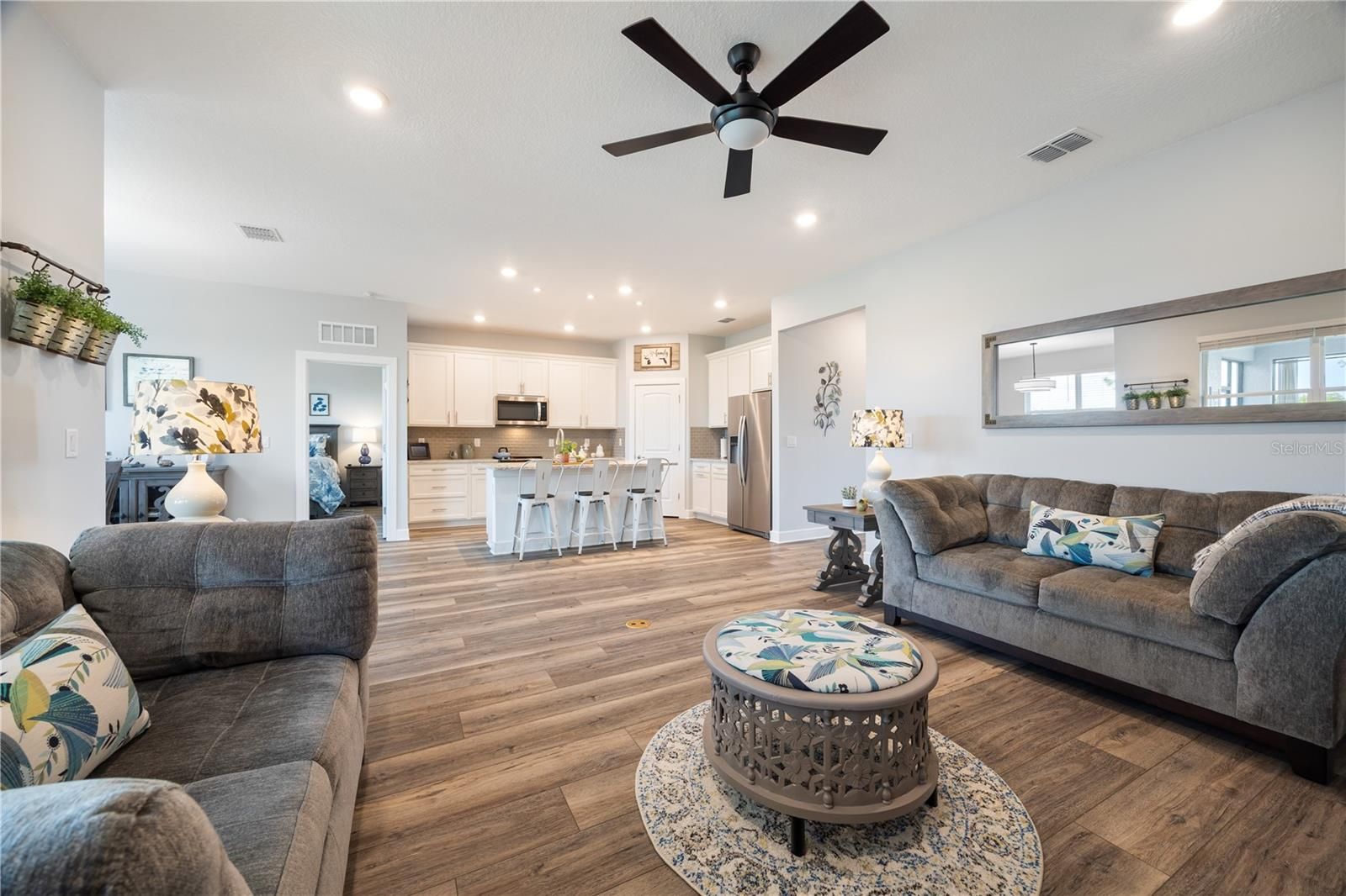 - Ceiling Fan(s), Eat-in Kitchen, Kitchen/Family Room Combo, Living/Dining Room, Open Floorplan, Main Level Primary, Thermostat, Walk-In Closet(s)