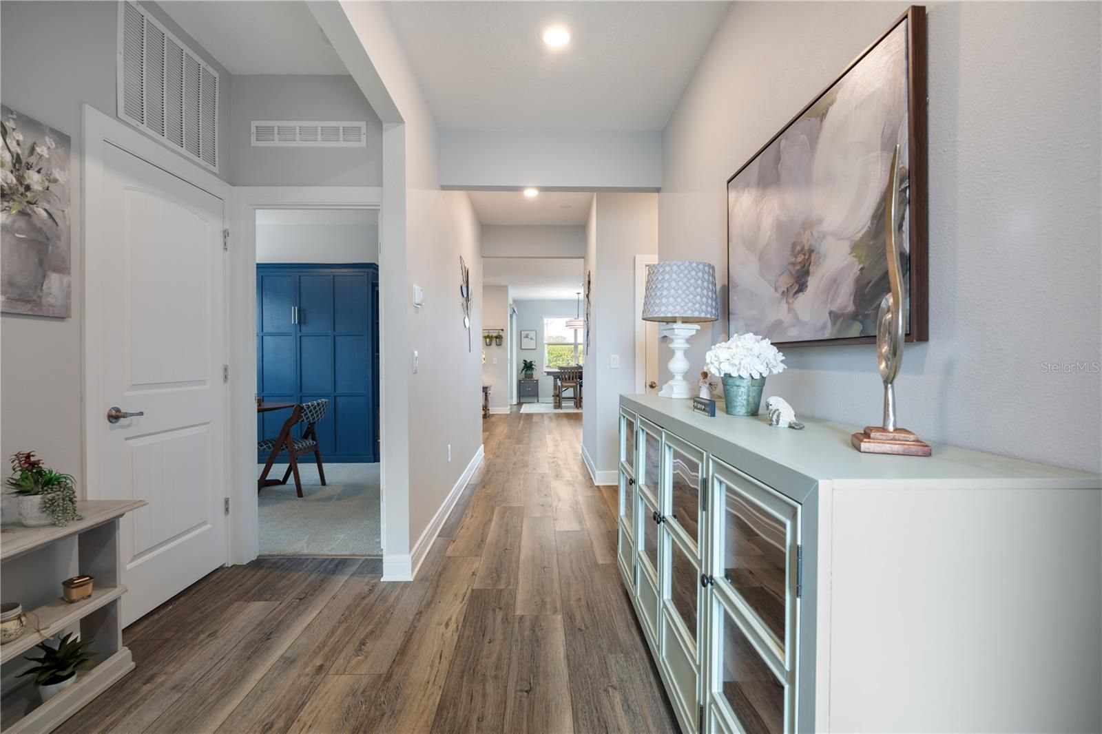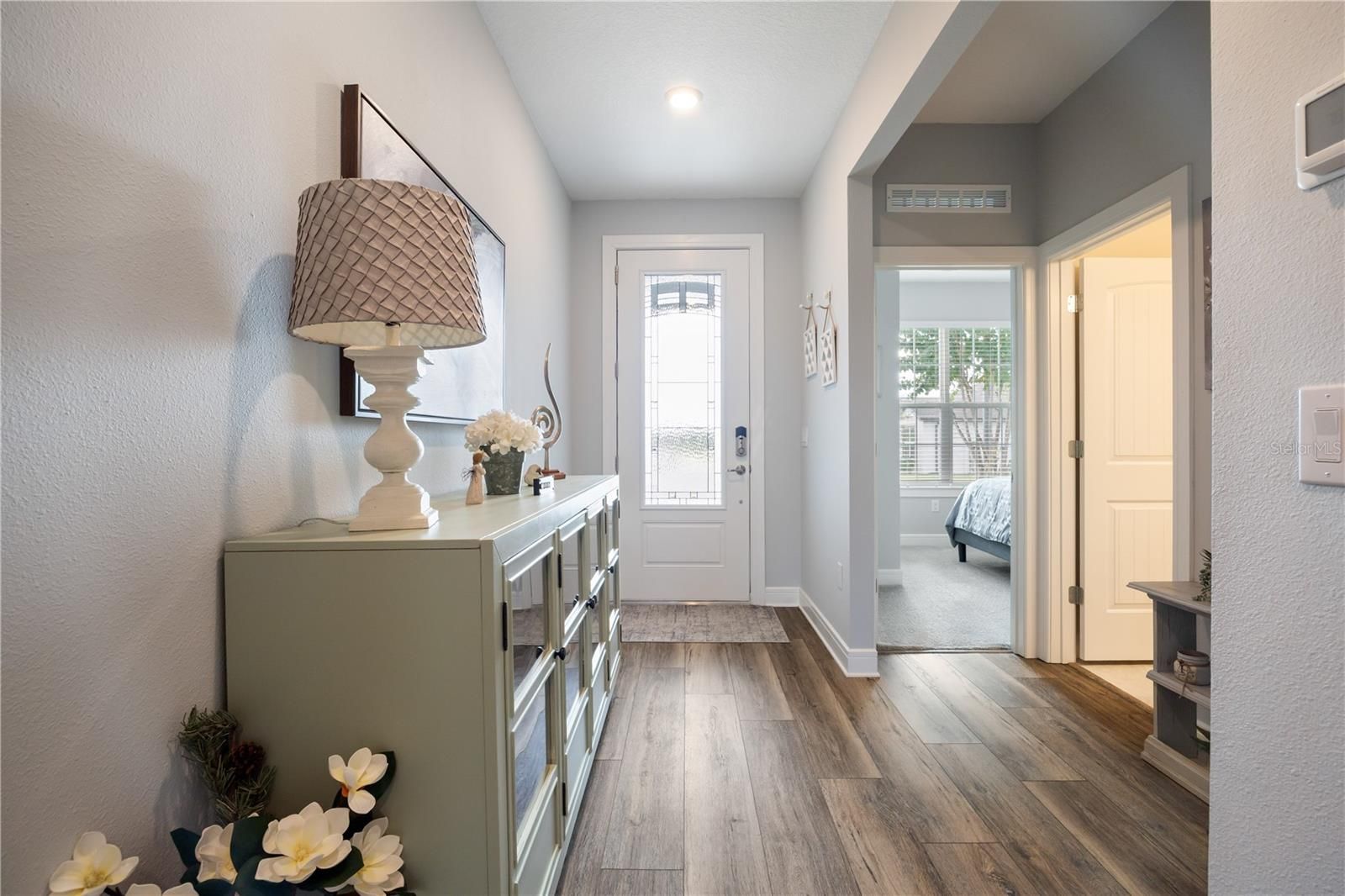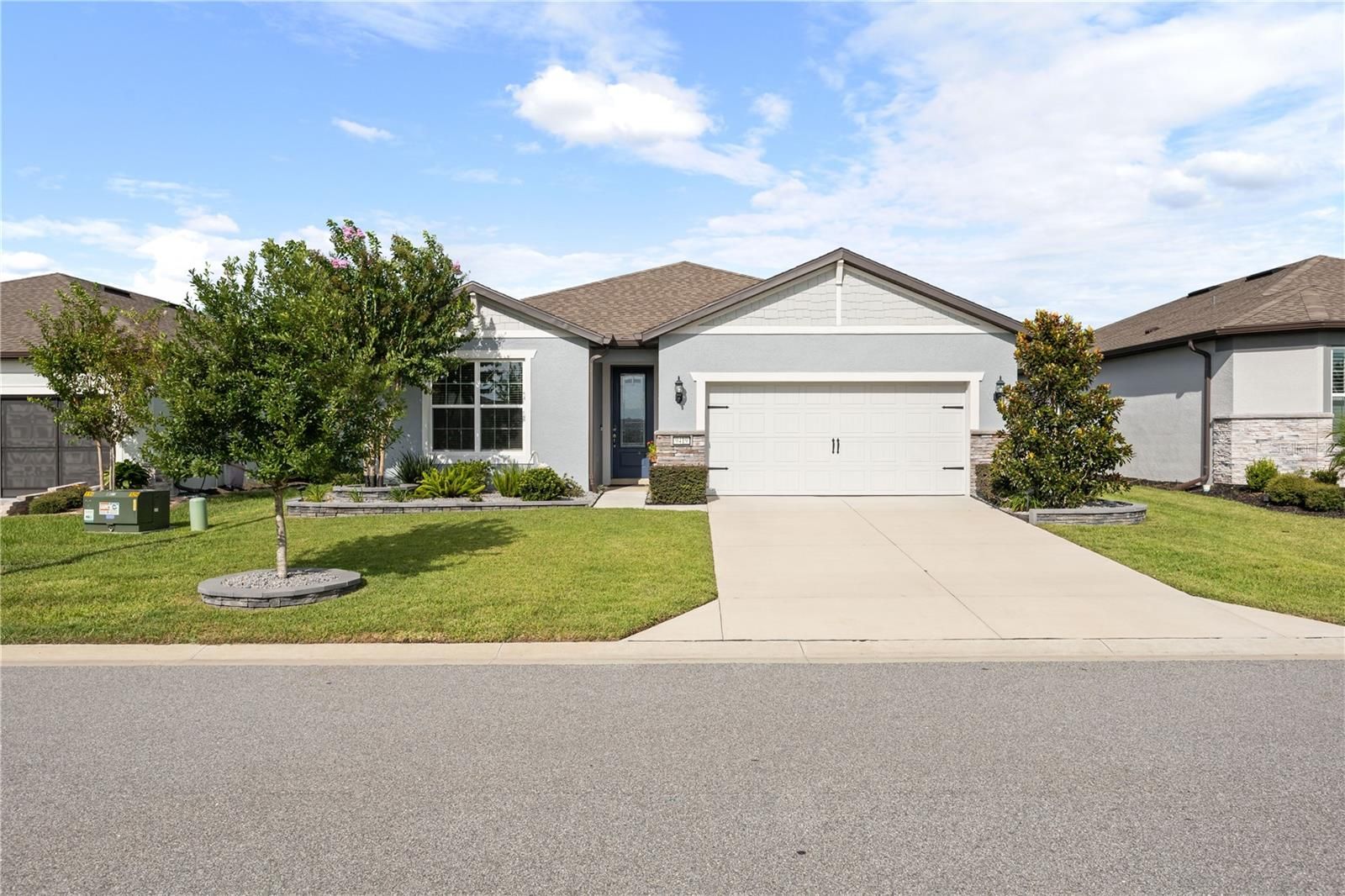 Welcome to this beautifully maintained Cedar model in the desirable 55+ community of Del Webb Stone Creek. This 3-bedroom, 2-bath home backs up to a tranquil meadow, offering both privacy and peaceful views. Inside, you’ll find LVP flooring throughout the main living areas, tile in the bathrooms, and cozy carpet in the two guest bedrooms. Thoughtful upgrades include crown molding on the kitchen cabinets and a custom closet organizer in the primary suite, while the primary bath features a spacious walk-in tile shower with a bench for added comfort. Outdoor living is easy with a screened lanai and paver back patio, perfect for relaxing or entertaining. Additional highlights include an epoxied garage floor, extra storage, and a smart, functional design that makes everyday living simple and organized. This move-in ready home offers the perfect blend of comfort and convenience in one of Ocala’s premier active adult communities.
