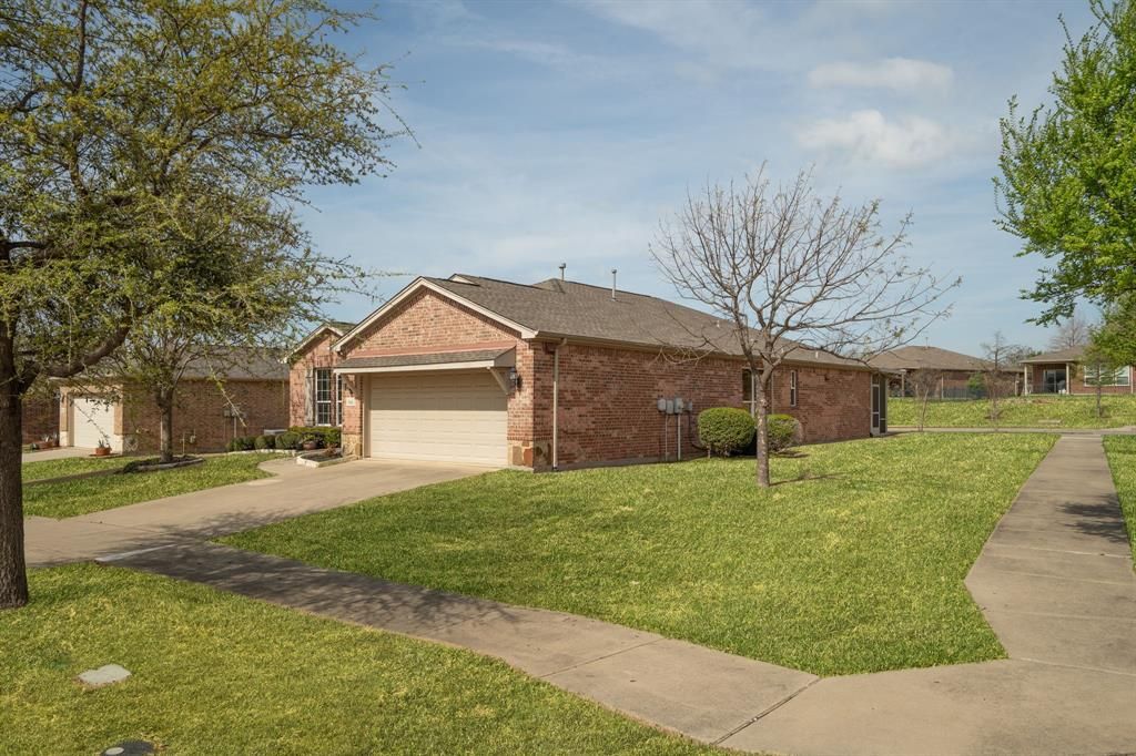 Welcome home! This adorable one-story home, situated on a desirable corner lot in the heart of Frisco, is packed with wonderful features, offering both comfort and style. With three gorgeous bedrooms, each designed to feel light, airy, and refreshing, this home provides a welcoming and serene atmosphere. The spacious kitchen boasts extended built-in cabinetry, granite countertops, sleek stainless steel appliances, and a cozy eat-in area—perfect for casual dining. Flowing seamlessly into the living room, the open floor plan creates an inviting space ideal for relaxation and entertaining. Step outside and enjoy the covered patio, complete with an attached ceiling fan to keep you cool during those warm Texas summers. The screened-in design wraps around the entire patio, offering a perfect spot to unwind while staying protected from the elements. Don't miss out on this delightful home. Schedule a showing today!