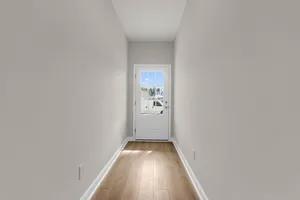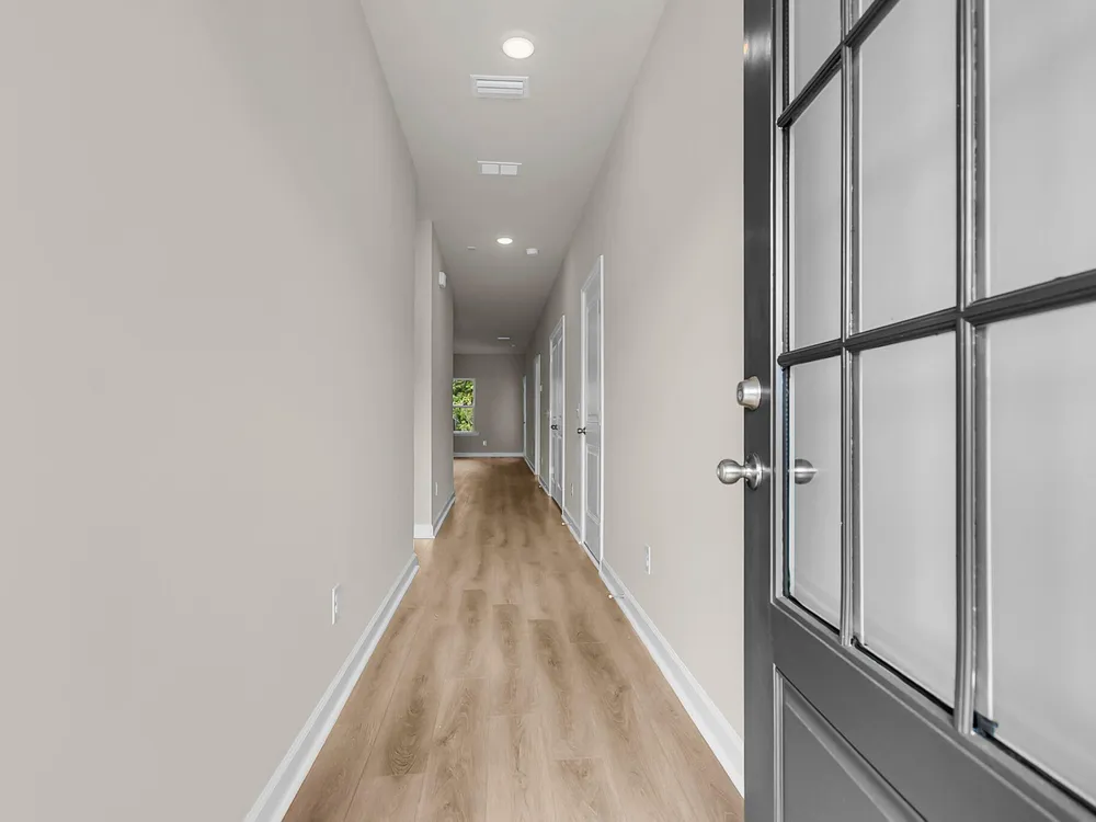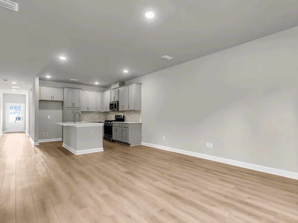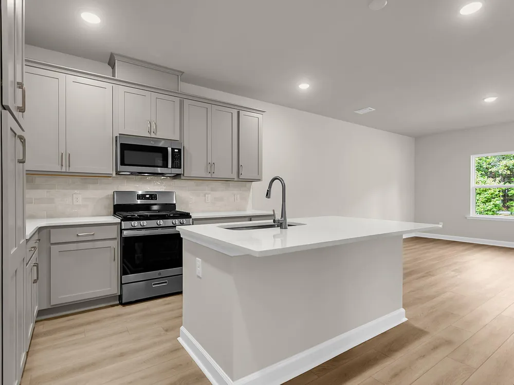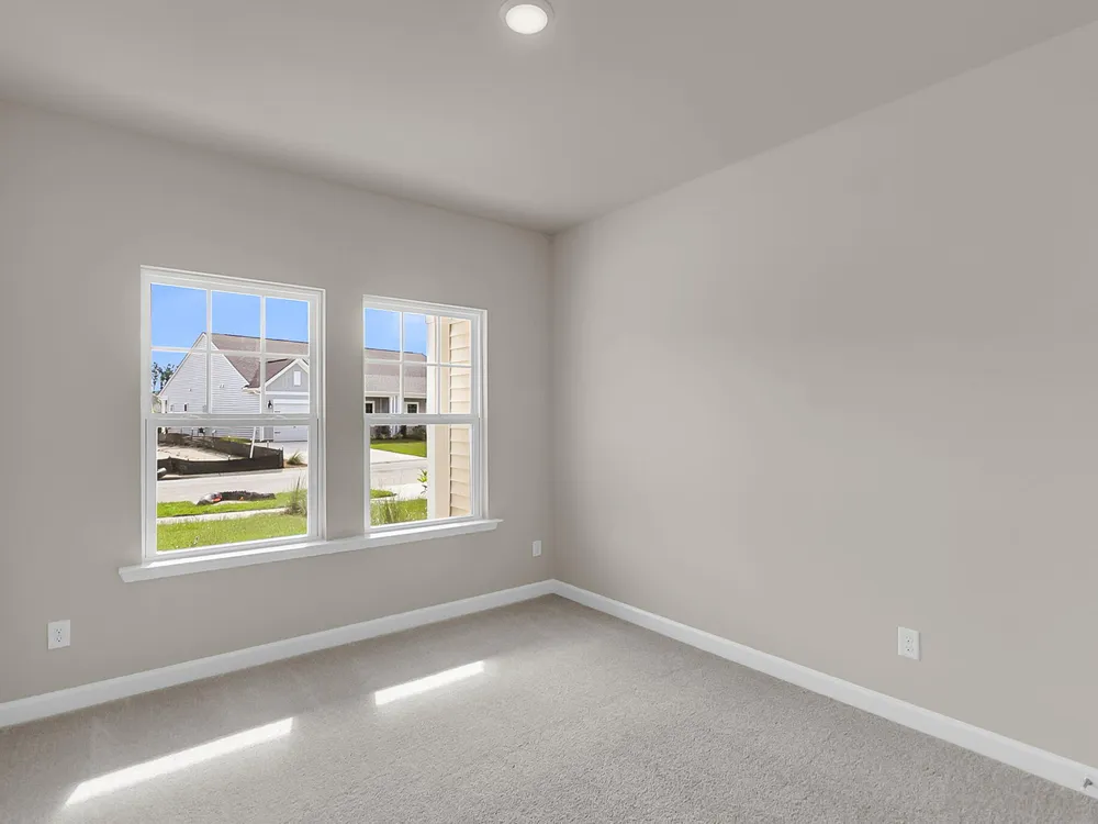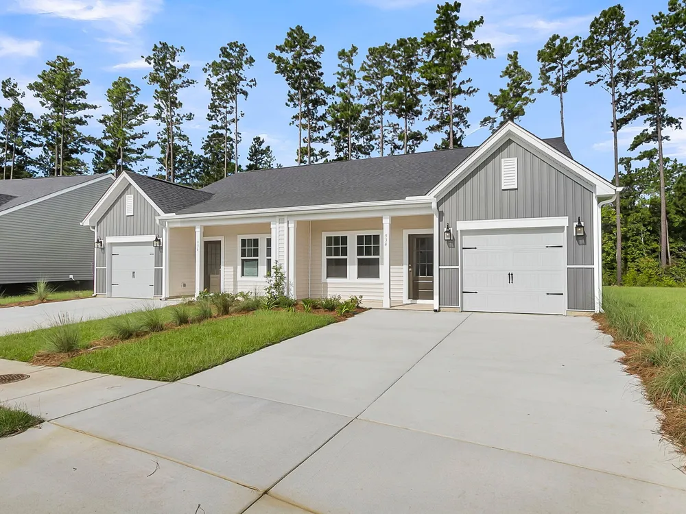 This two bedroom two bathroom villa backs to an HOA tree buffer and has an extended back covered porch and patio slab area, perfect for sitting out and enjoying the lowcountry breeze! The home has grey shaker cabinets, quartz countertops, gas appliances, and designer backsplash. The main areas have luxury vinyl plank flooring for easy cleaning, and the primary bedroom faces the backyard and trees beyond.