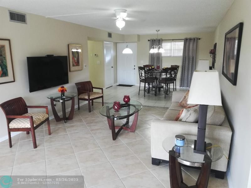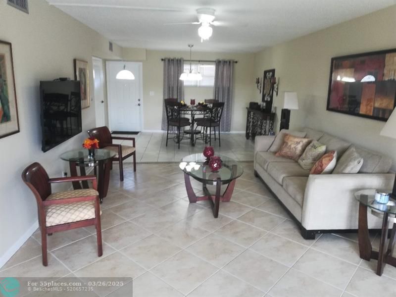 Neighborhood: -55+ Gated community with 24-hour roving patrol -Golf: 18-hole PGA championship course and 18-hole executive course, putting green and driving range Apartment features: 2 BEDROOM 1 ½ Bathroom 3rd floor APARTMENT, FULLY Furnished Beautiful Upgraded Eat-in Kitchen and bathrooms. Freshly painted throughout. Master BEDROOM includes full en-suite bathroom, large walk-in closet, ceiling fan and window treatments. AIR CONDITIONING THROUGHOUT. Tiled throughout except Master bedroom. Enclosed patio with Garden view