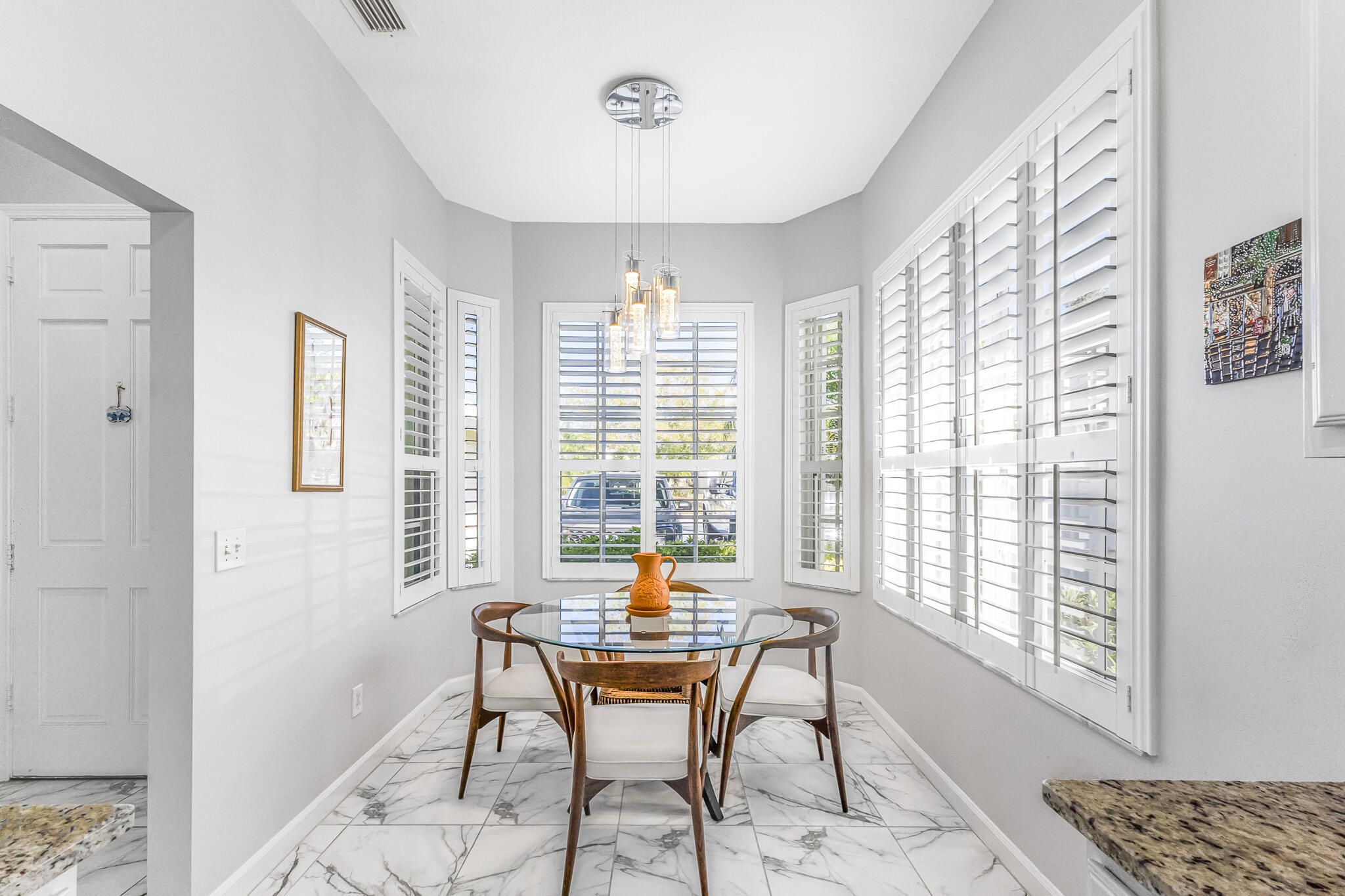 - High Ceilings, Walk-In Closet(s), Split Bedrooms, Pull Down Attic Stairs, Breakfast Area, Florida/Dining Room, Dual Sinks, Separate Shower, Soaking Tub