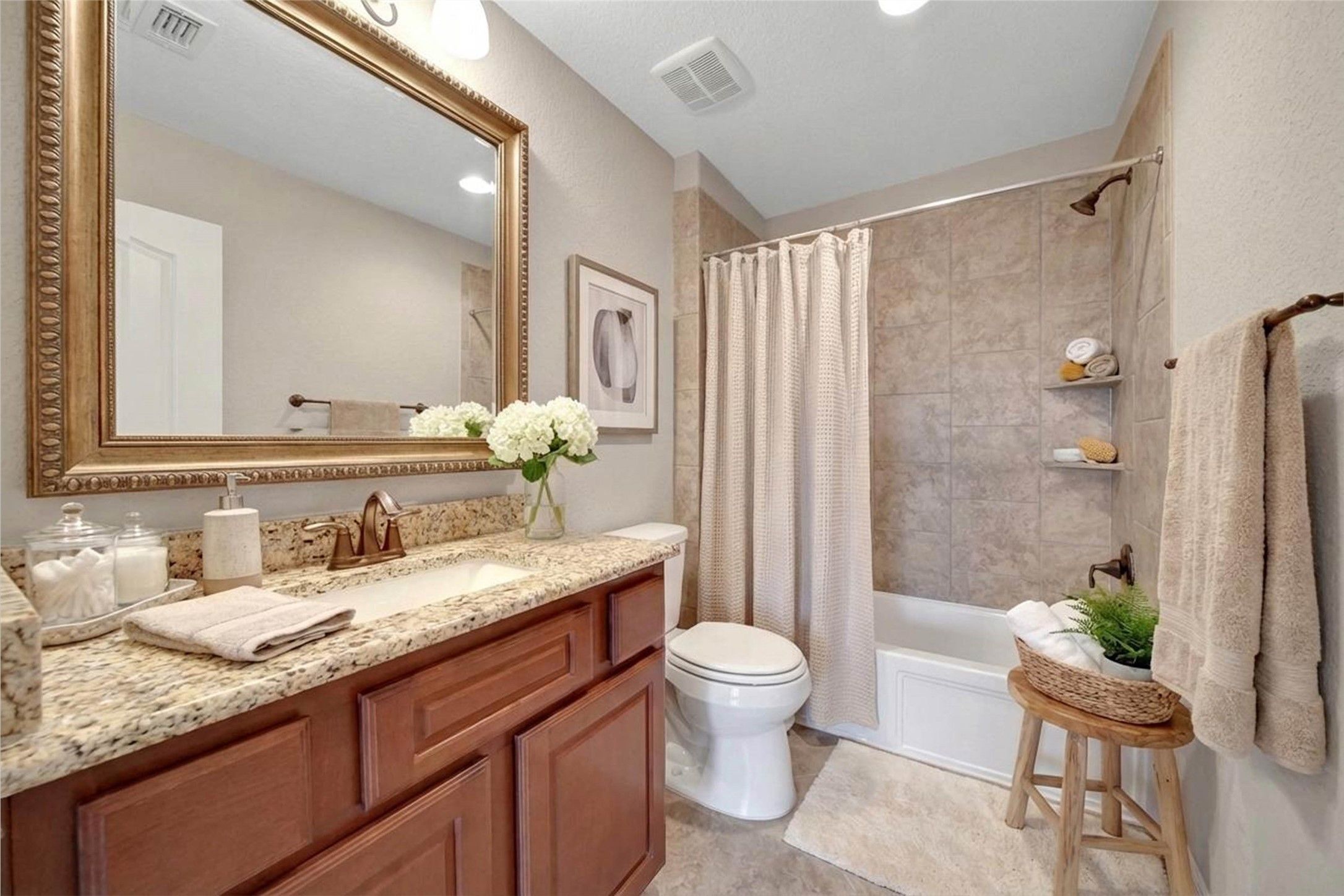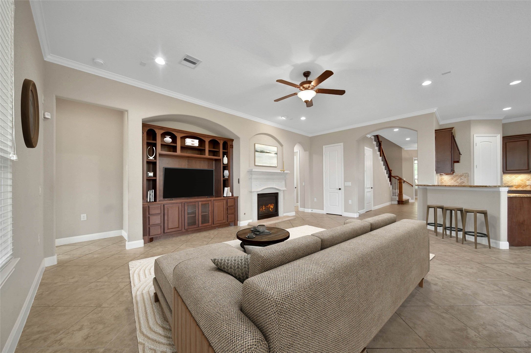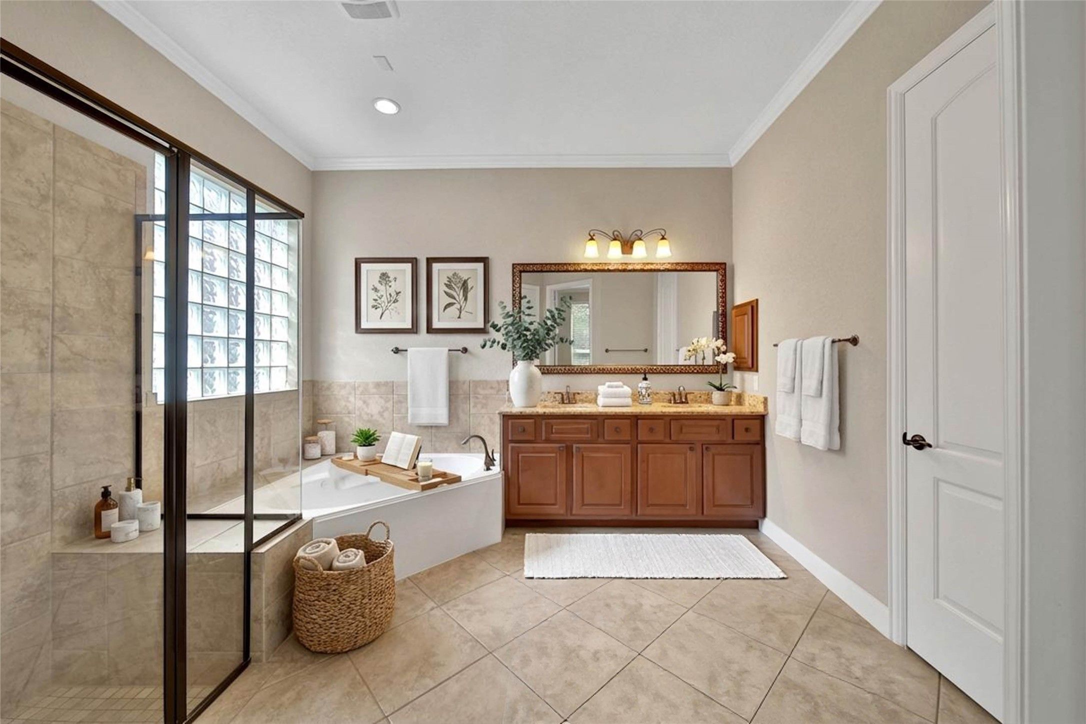- Breakfast Bar, Bidet, Crown Molding, Double Vanity, Entrance Foyer, Granite Counters, High Ceilings, Jetted Tub, Kitchen/Family Room Combo, Pantry, Separate Shower, Walk-In Pantry, Wired for Sound, Window Treatments, Ceiling Fan(s), Programmable Thermostat
