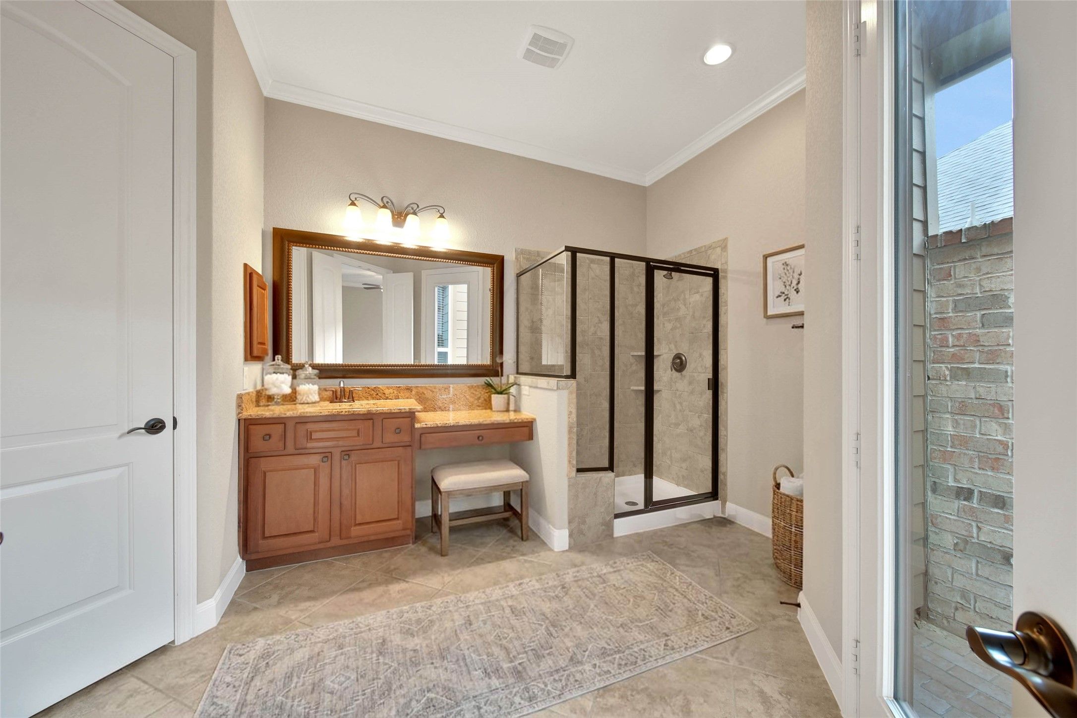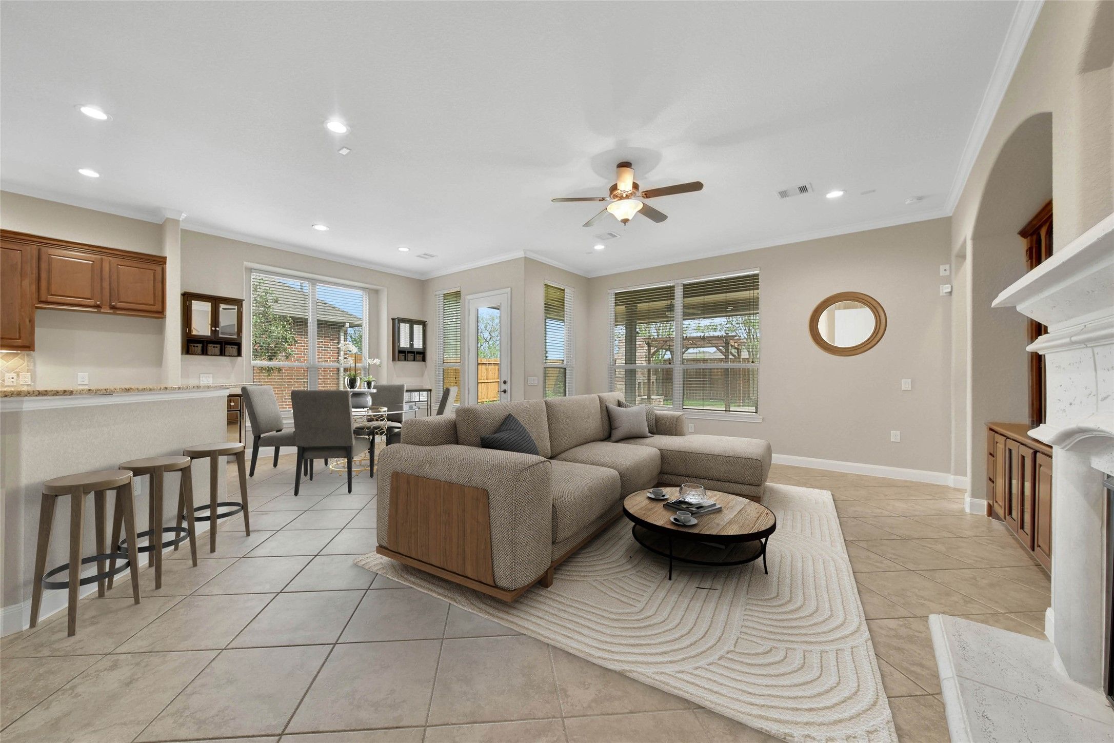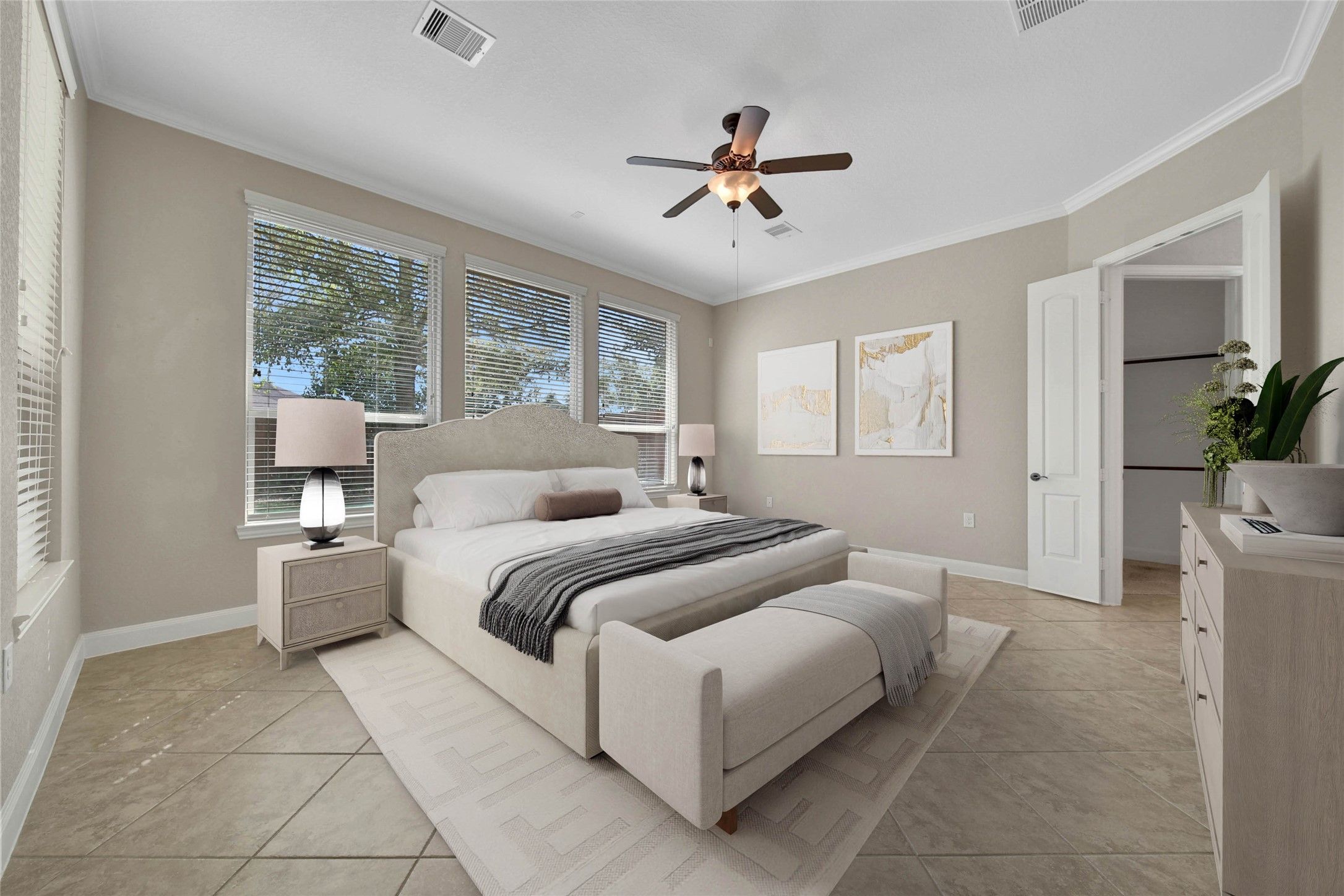 - Breakfast Bar, Bidet, Crown Molding, Double Vanity, Entrance Foyer, Granite Counters, High Ceilings, Jetted Tub, Kitchen/Family Room Combo, Pantry, Separate Shower, Walk-In Pantry, Wired for Sound, Window Treatments, Ceiling Fan(s), Programmable Thermostat