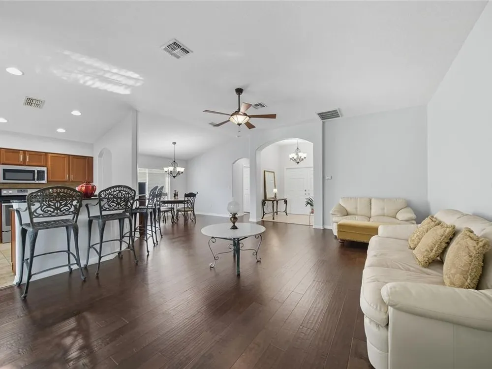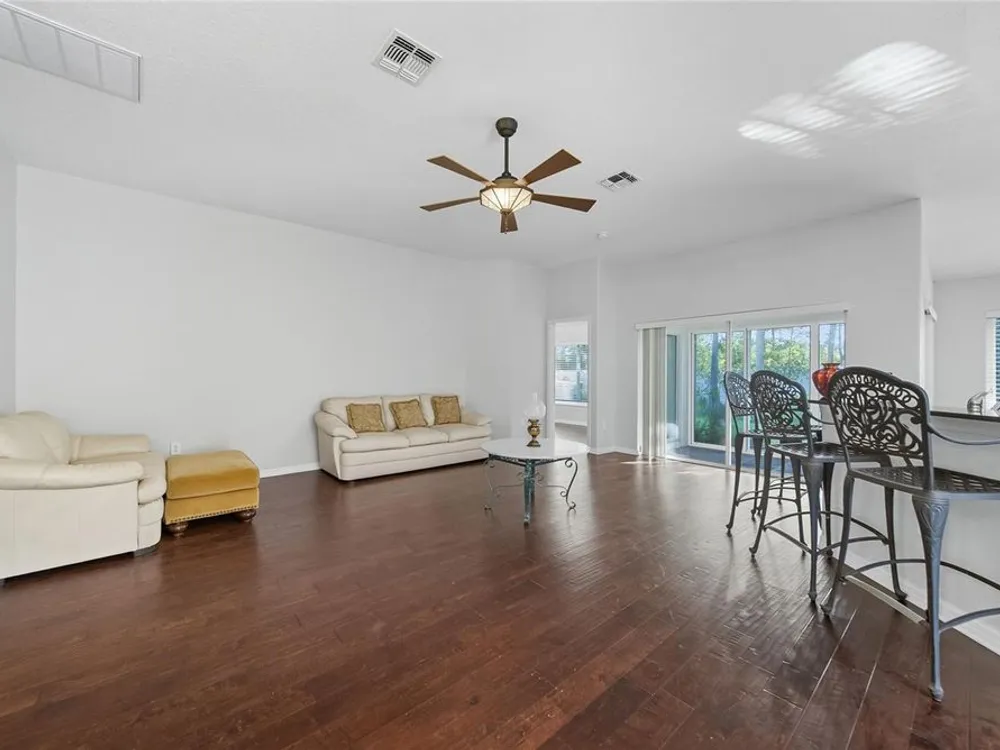 Well-maintained 2 bedroom 2 full bathrooms home nestled in premier golfing community. Owner's suite contains to walk-in closets. New roof (2025), exterior paint (2021), interior paint (2025). There's a screened and enclosed lanai, large eat-in breakfast nook/cafe, and a breakfast bar with stone countertops in the kitchen overlooking the family area. All floors laminated or ceramic tile, no carpet. Lots of natural light flowing from the glass sliding doors. Tampa Bay Golf and Country Club is Tampa Bay's premier active and active 55+ community with fabulous amenities featuring two swimming pools (one is a resort-style pool and heated), pickleball, tennis, cards and shuffleboard. New activities center features a fitness center equipped with state-of-the-art equipment, and billiards and card rooms. Lots of fun in the sun. TBGCC has NO CDD; HOA includes cable, and internet, and exterior maintenance. Gated community, with close proximity and easy access to I-75 and SR 52. There is a ONE-TIME charge of $3,500.00 for the Tampa Bay Community Association Social Membership due at closing. All room sizes are approximate and should be confirmed by the buyer and buyer's agent