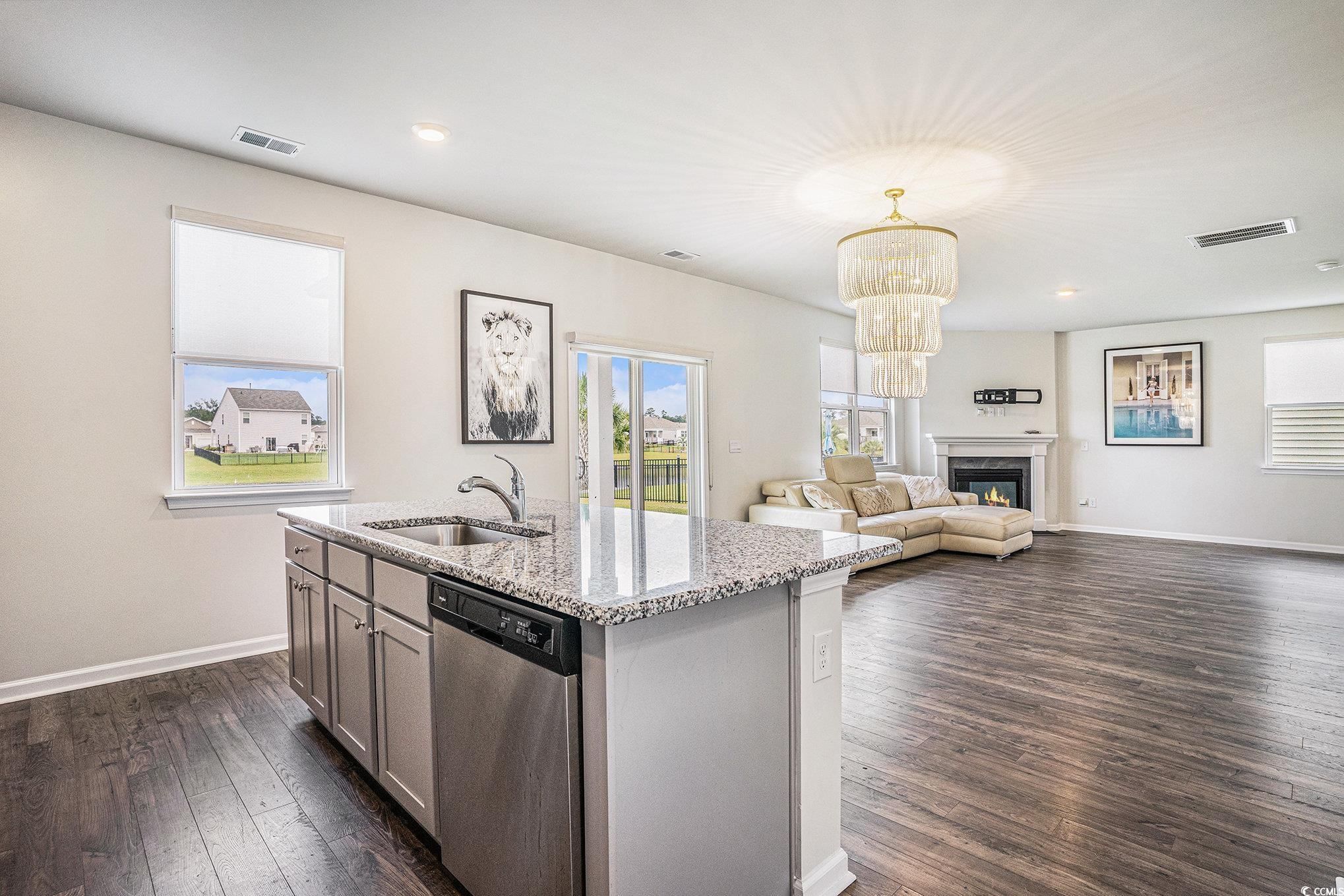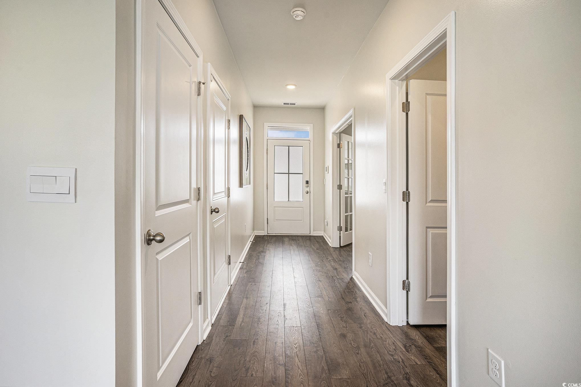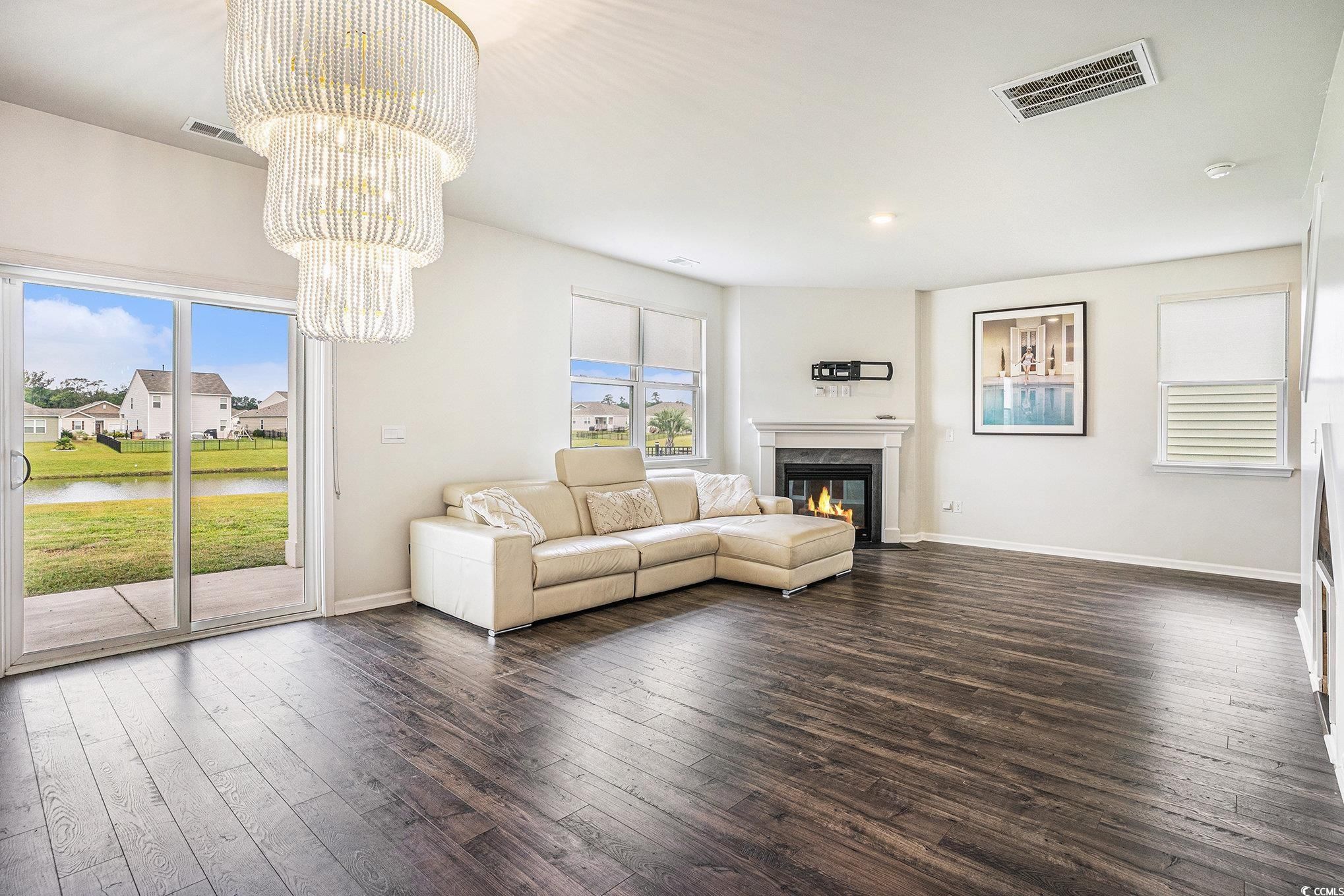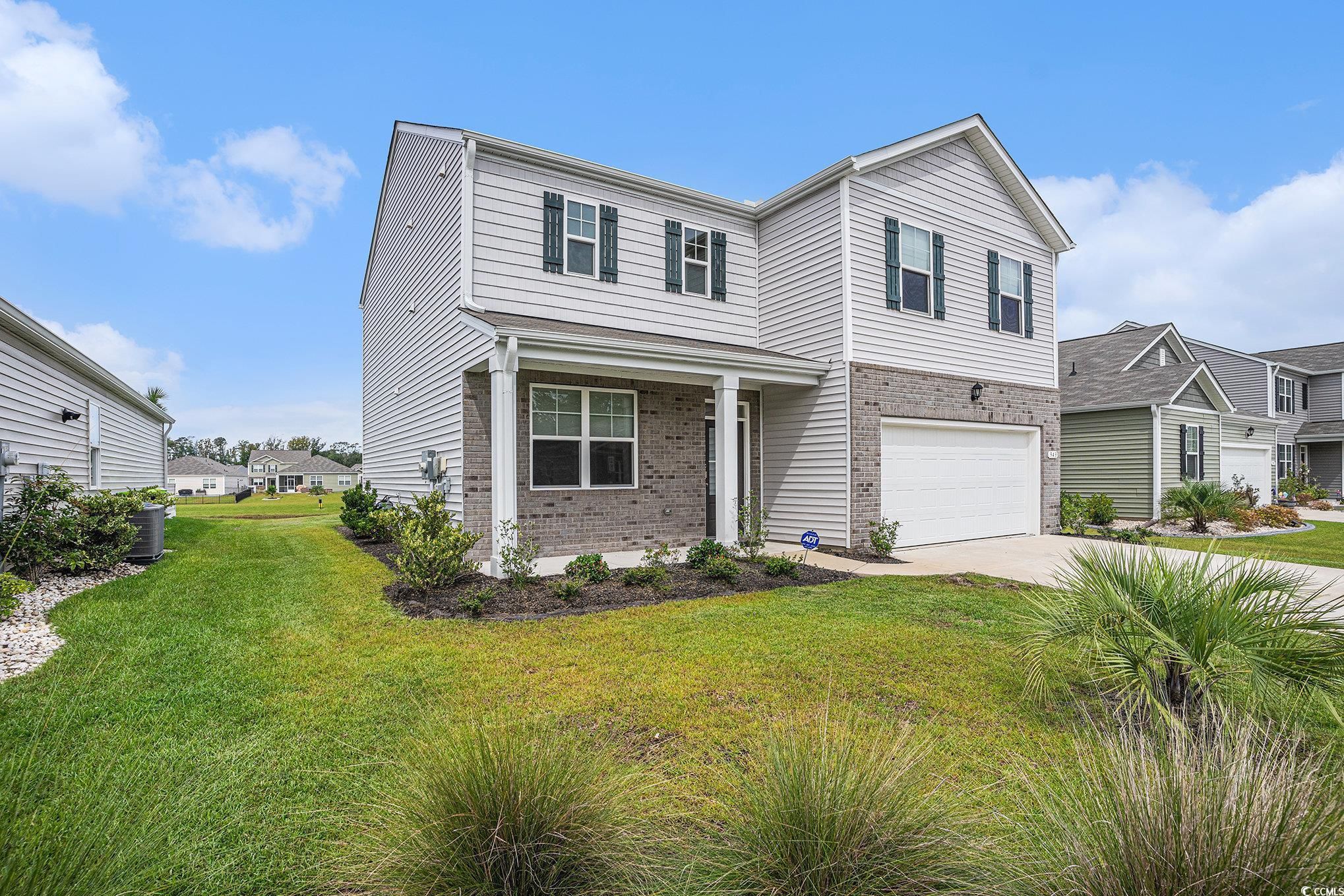 Welcome to this beautifully maintained two-story home offering an open and inviting floor plan designed for both comfort and function. The main level showcases a spacious great room that flows seamlessly into the kitchen, complete with granite countertops, a breakfast bar, stainless steel appliances, a gas range, and a walk-in pantry. A cozy gas fireplace anchors the living area, while a versatile flex room with French doors provides the perfect spot for a home office or formal dining space. Sliding glass doors open to a covered porch, ideal for enjoying outdoor living. Upstairs, the generous primary suite features an oversized walk-in closet and a private bath with dual sinks, a large walk-in shower, and a linen closet. Additional highlights include laminate wood flooring throughout much of the main level and modern smart-home features such as a video doorbell, smart thermostat, and front door lock control for added convenience. Built in late 2022, this home combines modern style with everyday functionality. Located less than 10 minutes from the beach, it offers plenty of space, comfort, and access to a thriving area.