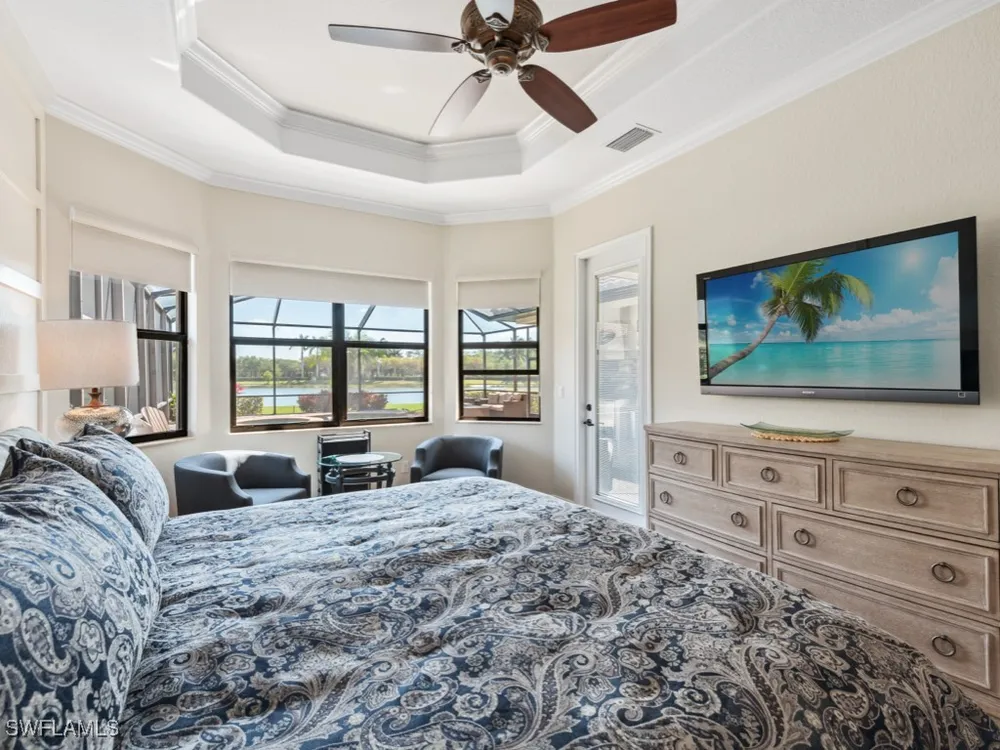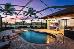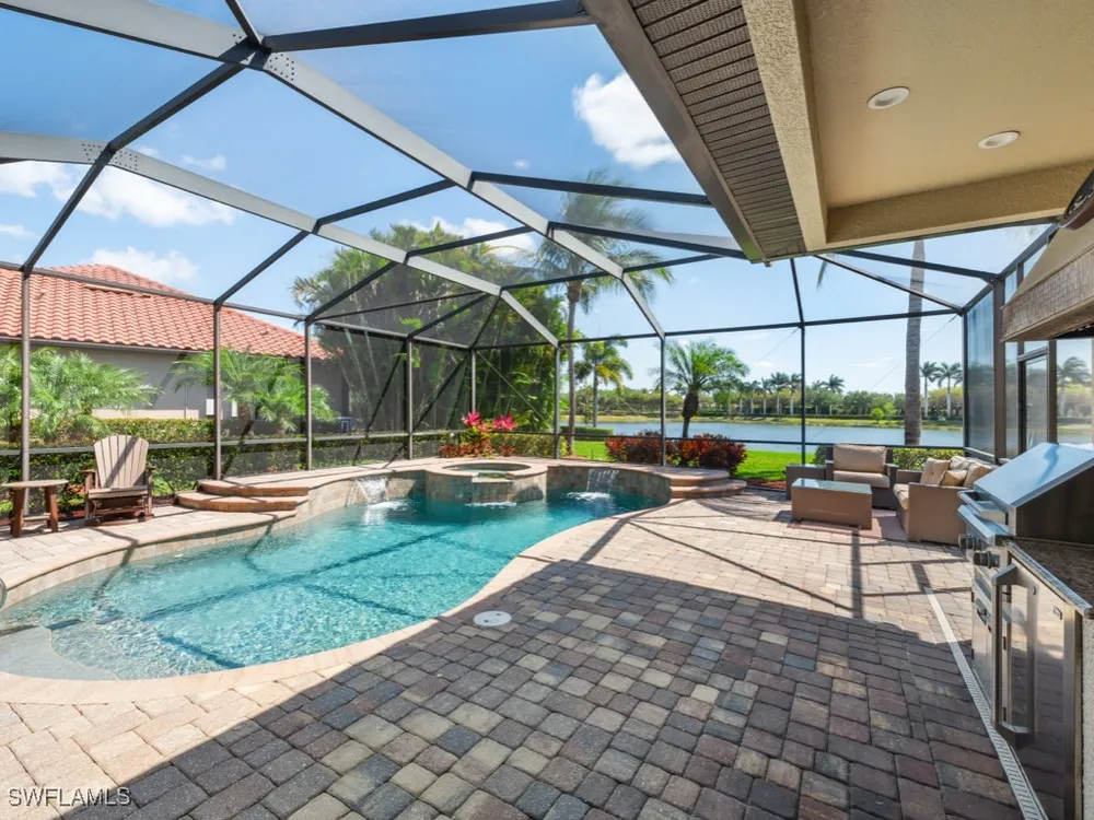 Escape the ordinary with this extraordinary dream home ~Prime LOCATION, WATER VIEWS with FULL TPC Treviso Bay golf membership! Amazing Toscana floor plan with wide water views on Italia Way in Treviso Bay in Naples, FL! The location of this home is close to the front gate and easy walking distance to the 5 star resort amenities Treviso Bay has to offer! This home is offered turnkey with 4 bedrooms/ 3 full baths /3 car garage. This Toscana floor plan features 2603 square feet of tranquil living space including great room, living room, dining room, spacious white kitchen with upgraded stainless steel appliances, white quartz countertops and island, screened no see-um lanai with salt water converted pool/spa and outdoor kitchenette featuring built-in gas grill, fire pit and mini fridge. Rear eastern exposure for sun over the pool area and gorgeous sunset views with added exterior lighting. Three-car garage offers plenty of space for parking and storage. Enter into the home with a light and bright foyer that leads into the dining with a view of the pool and lake beyond! The kitchen pantry wall has been removed and a second island has been replaced which doubles as a serving area for the dining room. This lovely remodel opens the floor plan brings more natural light into the upgraded kitchen. The Toscana offers a much appreciated privacy as this home is a split floor plan with the master suite on one side and all 3 guest rooms on the other. There are many upgrades to this gorgeous home you must take a look! This executive home comes with a TRANSFERABLE TPC GOLF MEMBERSHIP to enjoy! This entitles you to play the many TPC designated golf courses around the United States! Treviso Bay's Five Star amenities are second to none boasting the Villa Rilassare amenity center La Brezza resort style pool and full bar, professionally staffed fitness center, tennis courts, bocce, pickle ball, basketball and full spa services. The spectacular Treviso Bay TPC Golf clubhouse has two dining rooms, library, TPC pro shop, luxurious locker rooms and a breathtaking terrace over looking hole 9 and 18 to enjoy cocktails or fine dining. Just 5 miles away from Naples beautiful sandy beaches and fabulous 5th Ave shopping and restaurants.