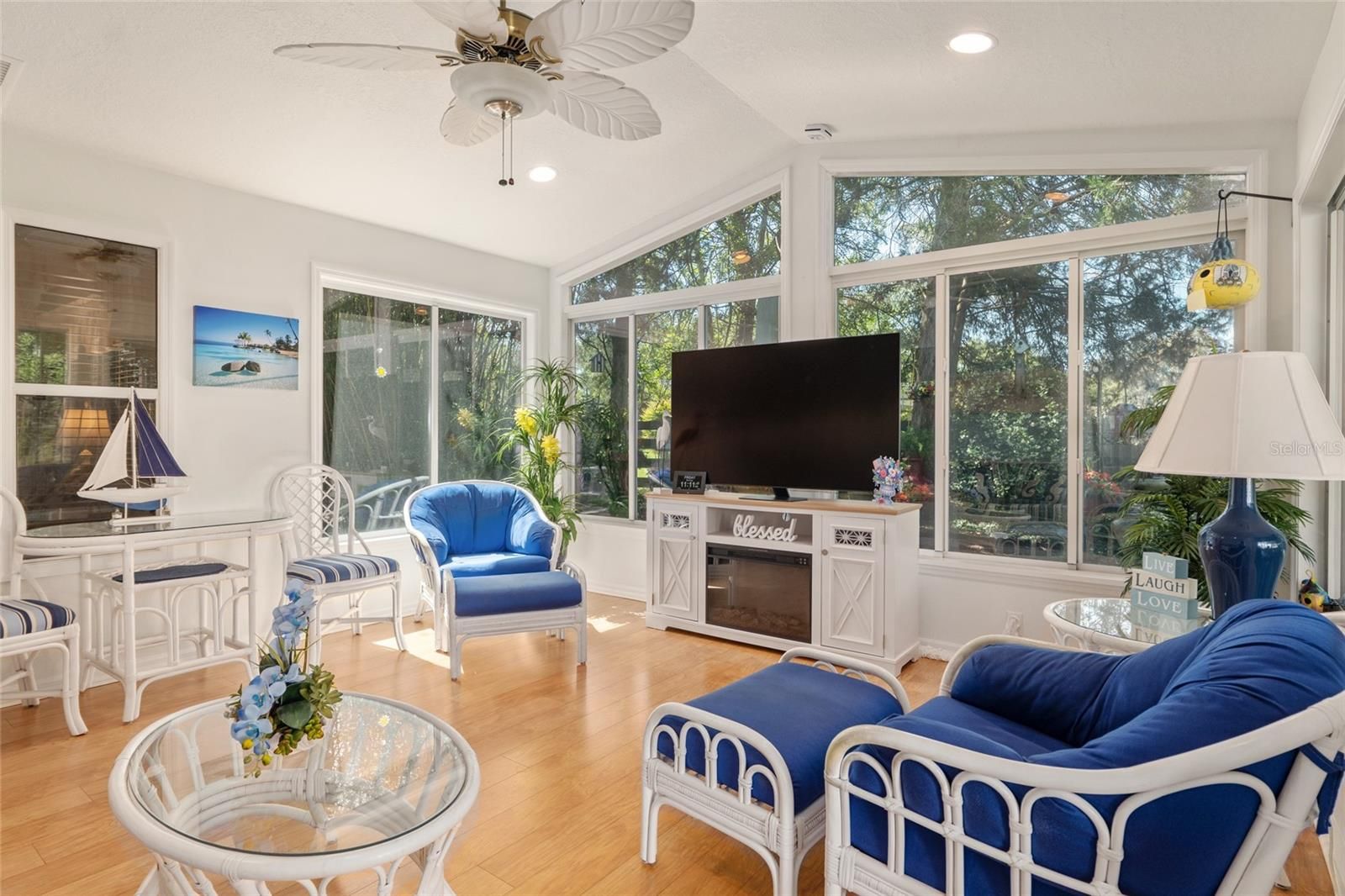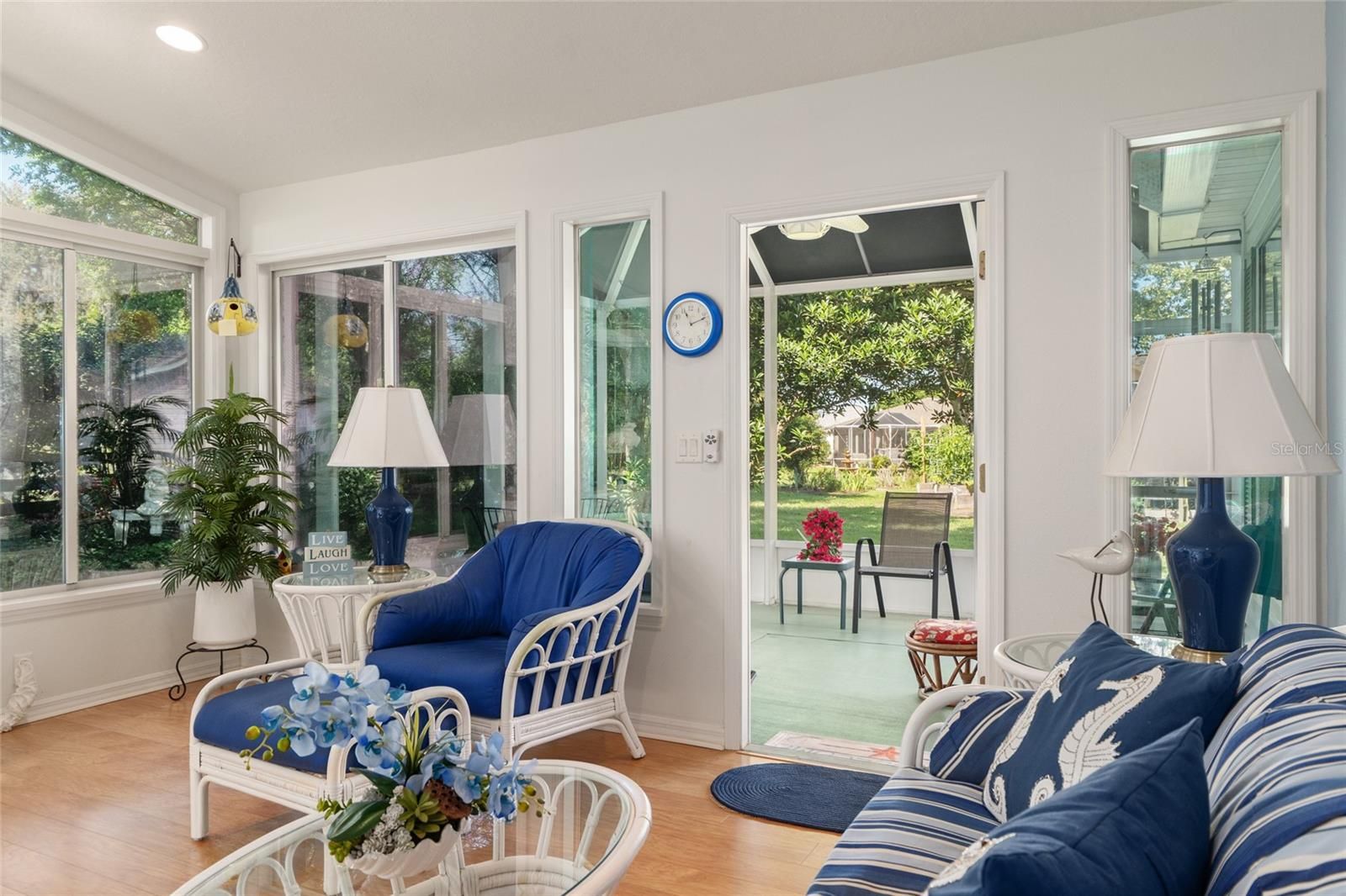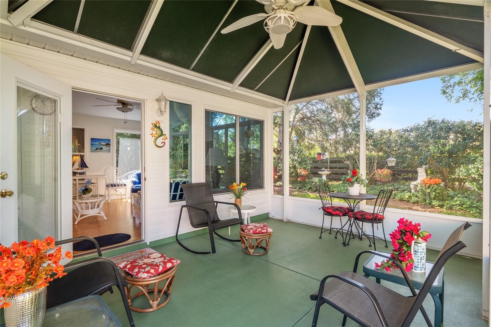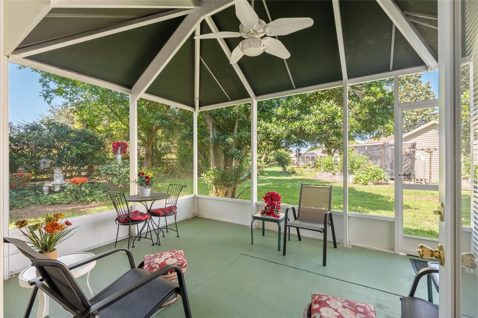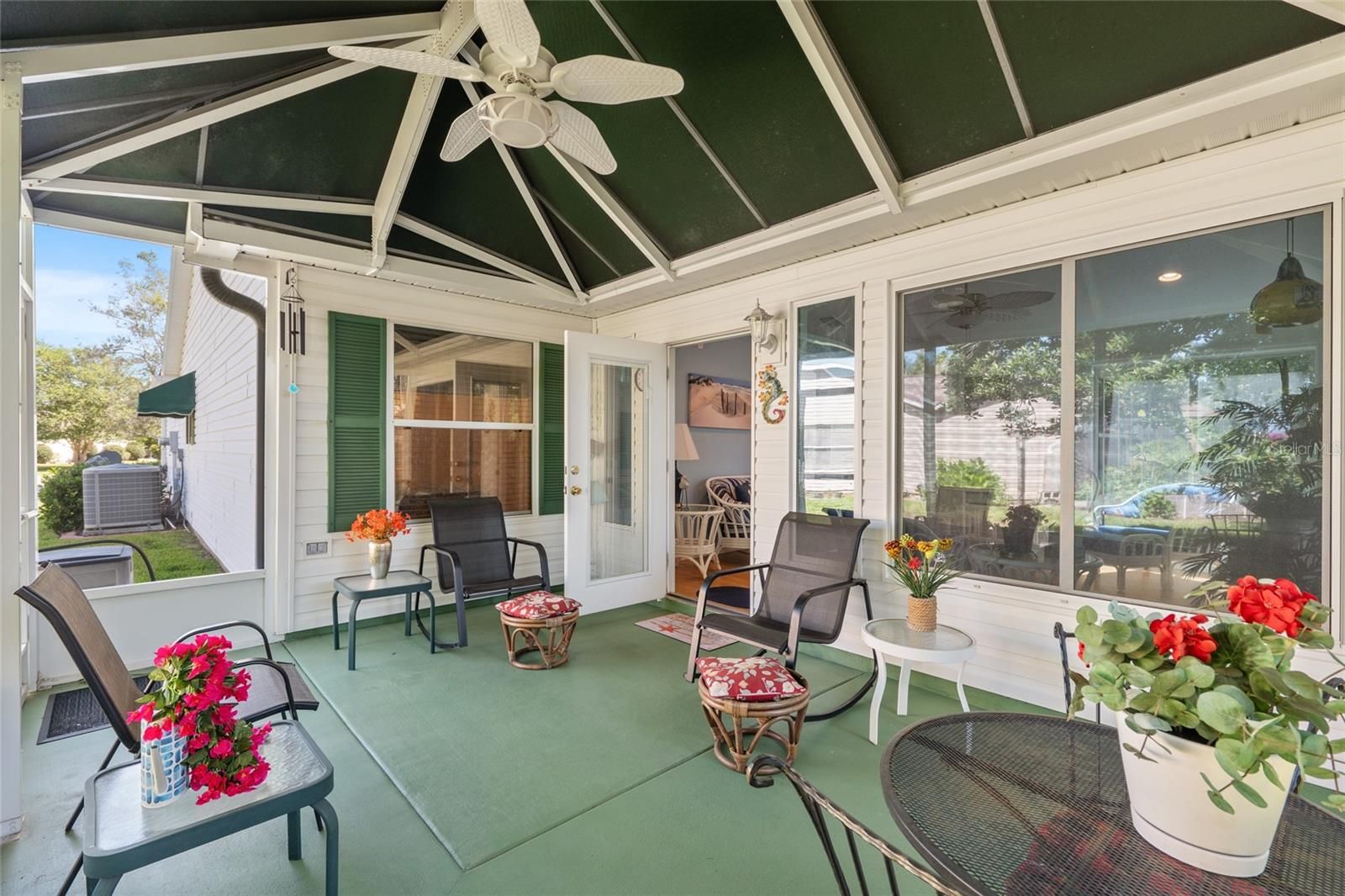 BOND PAID! Meticulously maintained Fully Furnished 3-bedroom, 2-bath, Amarillo model featuring a beautiful sunroom and an additional screened lanai with canvas top. This open-concept floor plan seamlessly connects the kitchen, living room, and dining areas, creating a bright and airy living space filled with natural light. The spacious primary en-suite offers two walk-in closets, a walk-in shower, dual sinks, and a private water closet. Guest bedrooms and the second bath are thoughtfully situated on the opposite side of the home, providing maximum privacy for family or visitors. Enjoy year-round comfort in the stunning sunroom with abundant windows, or unwind on the screened lanai overlooking a serene, park-like backyard setting. Ideally located in the desirable Springdale community, just a couple of blocks from the community pool, Turtle Mound Recreation Area, farms, and golf courses. Recent updates include: Roof (2018) HVAC (2015) Hot Water Heater (2020) Home also comes with a 1-year home warranty!