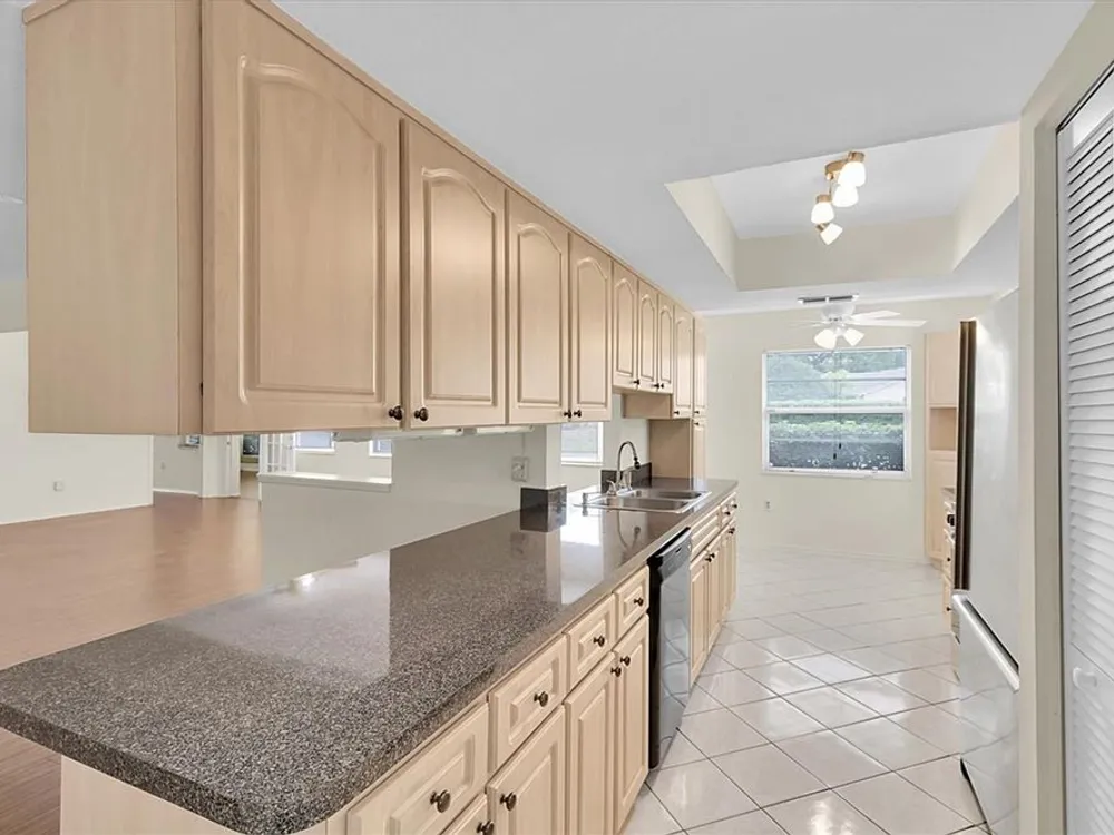 Under contract-accepting backup offers. FABULOUS 2/2/2 IN ONE OF THE TRINITY AREAS MOST POPULAR & AFFORDABLE OVER 55 COMMUNITIES. LARGE SPACIOUS VERSATILE FLOOR PLAN FEATURING OVER 1800 SQ FEET OF MODERN LIVING AREA, LIVING ROOM, DINING ROOM, FAMILY ROOM, AND THE BONUS ROOM WOULD MAKE AN EXCELLENT OFFICE OR HOBBY ROOM. THE EAT IN KITCHEN IS LINED WITH TONS OF UPDATED CABINETS & LOTS OF COUNTER TOP PREP SPACE AND TWO LARGE PANTRIES COMPLETE WITH ALL APPLIANCES! THE LONG KITCHEN COUNTER BAR OPENS TO THE DINING ROOM ON ONE END AND THE FAMILY ROOM ON THE OTHER, PERFECT FOR ENTERTAINING! BOTH BEDROOMS ARE A GENEROUS SIZE AND BOTH HAVE SIZABLE WALK IN CLOSETS; THE PRIMARY BEDROOM HAS A PRIVATE UPDATED BATH & THE GUEST BATH HAS ALSO BEEN UPDATED! THE ROOF WAS REPLACED IN 2023, THE HVAC HAS JUST BEEN INSPECTED AND IN TOP SHAPE. IF YOU NEED MORE SPACE... OPEN THE EXTRA A/C DUCTS AND THE ENTIRE GARAGE CAN BE ON THE HVAC! YOU CAN WALK TO THE CLUBHOUSE AND ENJOY MORE ACTIVITIES THAN YOU WILL BE ABLE TO KEEP UP WITH! HEATED POOL & SPA, TENNIS, POOL & BILLARD ROOM, LIBRARY, CRAFTS, DANCES, BBQ'S, FOOD TRUCK PARTIES, THE LIST IS ENDLESS!! ADD IN ALL THE AMENITIES THE TRINITY AREA OFFERS AND THIS IS A VERY SPECIAL FIND, HURRY TO THIS ONE! HESIATE AND YOU'LL BE TOO LATE!