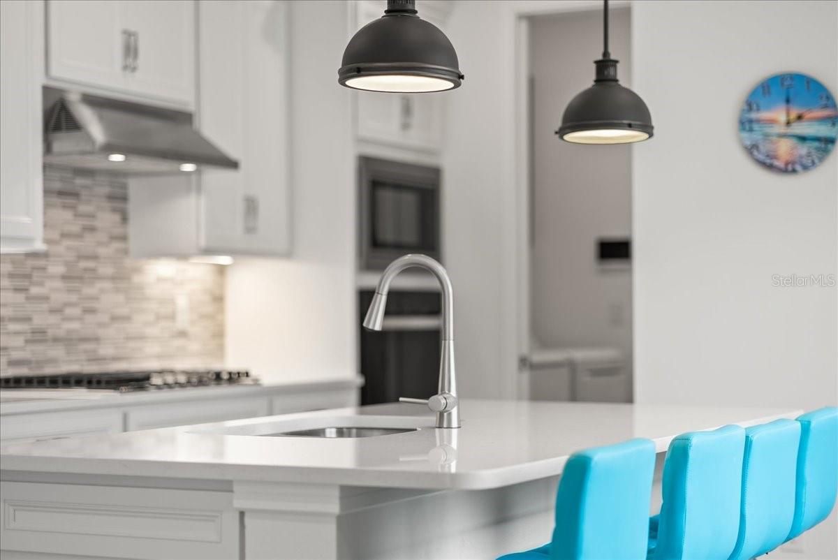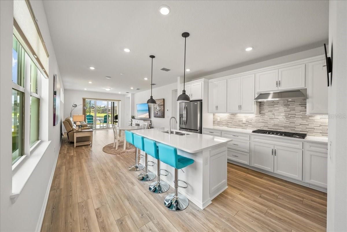 Welcome to lakefront living at its finest in the sought after 55+ resort community of Del Webb at Bayview! Nestled on a serene lakeside lot, this immaculate home offers an inspired blend of modern comfort, low-maintenance elegance and indoor-outdoor Florida lifestyle. Step into an open floor plan where a sleek, bright white chef’s kitchen anchors the space. The kitchen features crown-molded cabinetry, a stylish tile backsplash, a gas cooktop with stainless range hood, built-in wall oven and microwave and an oversized quartz island with pendant lighting and seating for four. Natural light pours in through large windows and the triple pocket sliding glass doors that lead to the expansive screened lanai, creating the ultimate entertaining flow from inside to outdoors. Imagine morning coffee overlooking the shimmering lake, al-fresco dining, and tranquil evenings as nature winds down around you. Through French doors into a dedicated home office, perfect for remote work or creative pursuits. Your master suite is a true retreat, complete with a spa like bath featuring a generous walk-in shower and a spacious walk-in closet. Elegant wood-look tile flooring flows throughout the main living spaces for ease of maintenance. Additional high end touches include an epoxy-coated garage floor, newly seal coated driveway, WiFi enabled thermostat and garage door, energy efficient lighting and windows, and the triple-pocket slider to the lanai for effortless indoor-outdoor living. Life at Del Webb at Bayview is nothing short of resort style: the on-site full service restaurant and bar, Sailfish Grille, offers a lively setting with interior and exterior bar, poolside seating, big screen TVs, live music and daily happy hour. Stay active with six pickleball courts, four bocce courts, two full size tennis courts, shuffleboard and cornhole. The new bandshell and event lawn host community events, and yes, there is convenient golf cart parking. The HOA covers landscape maintenance, high-speed internet and 75+ streaming TV channels, leaving you more time to enjoy your upgraded lifestyle. For dining out, local favorites abound just a short 6.3 mile drive away is the beloved C&K Smoke House BBQ. Location also delivers exceptional convenience: the community is approximately two miles from I-75, putting you just 13–19 miles (roughly 20–30 minutes) from vibrant hubs like downtown Bradenton, Lakewood Ranch and the Gulf beaches of Anna Maria Island. Whether you’re seeking your full time Florida home or a seasonal retreat, this residence presents a perfect blend of modern comfort, scenic serenity and an active adult lifestyle. Don’t miss your chance to call this move in ready, lake view gem your own. Schedule your private showing today and begin the lifestyle upgrade you’ve been waiting for!