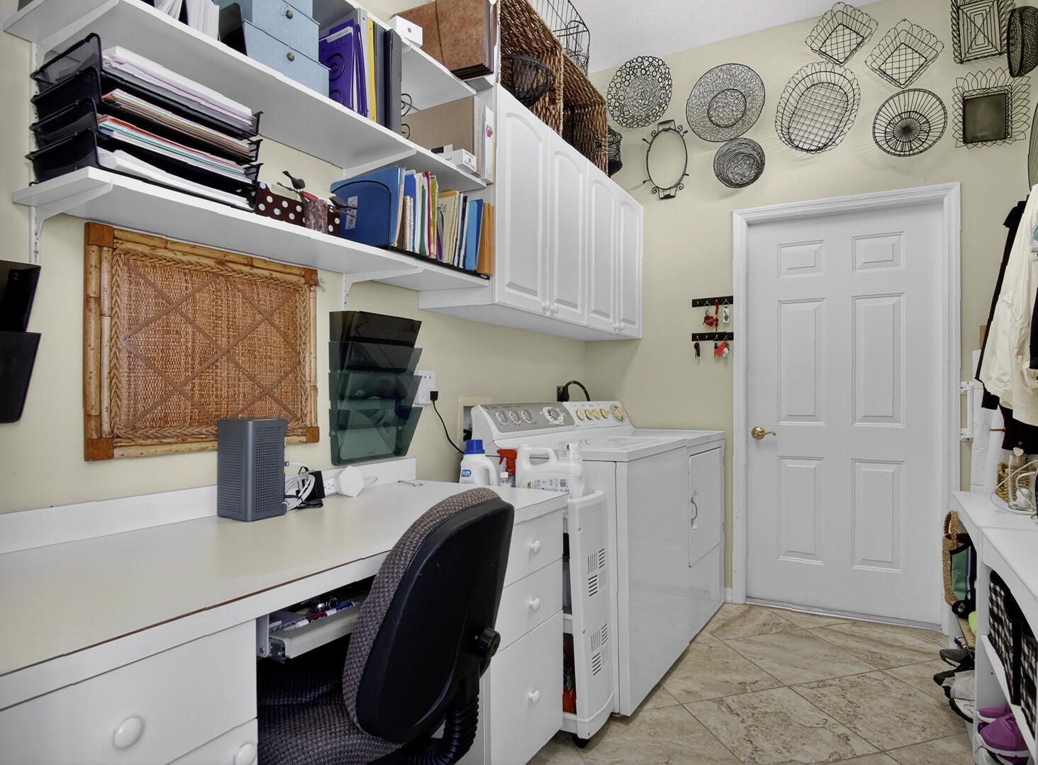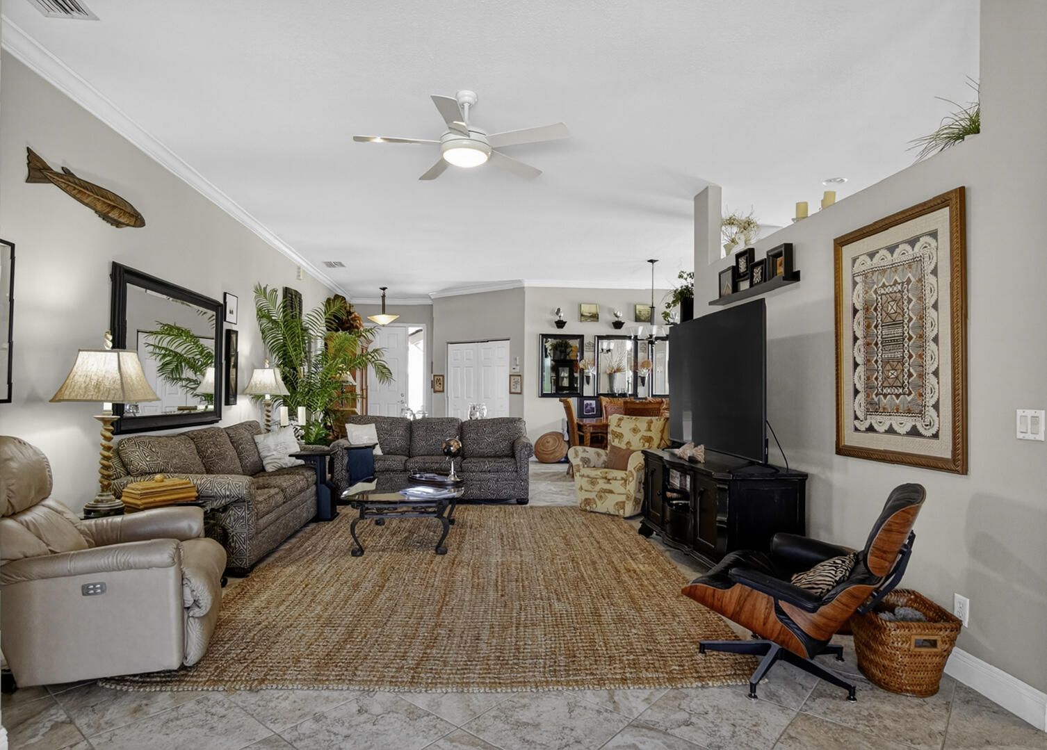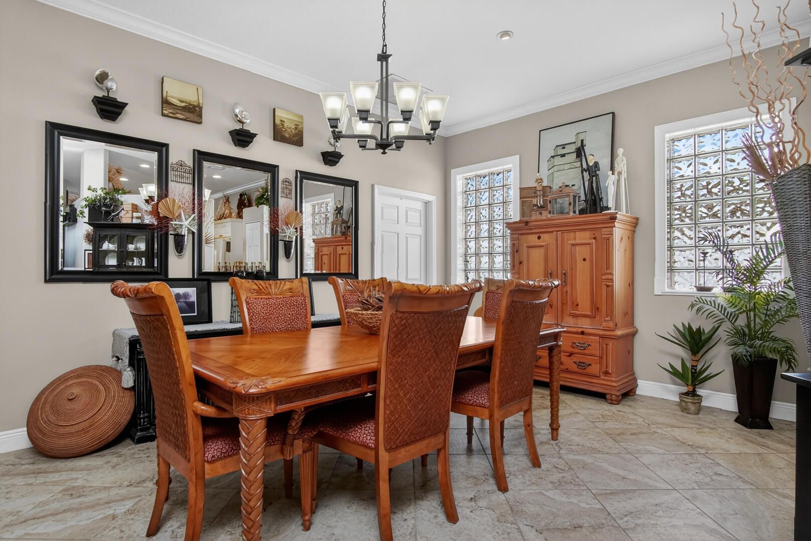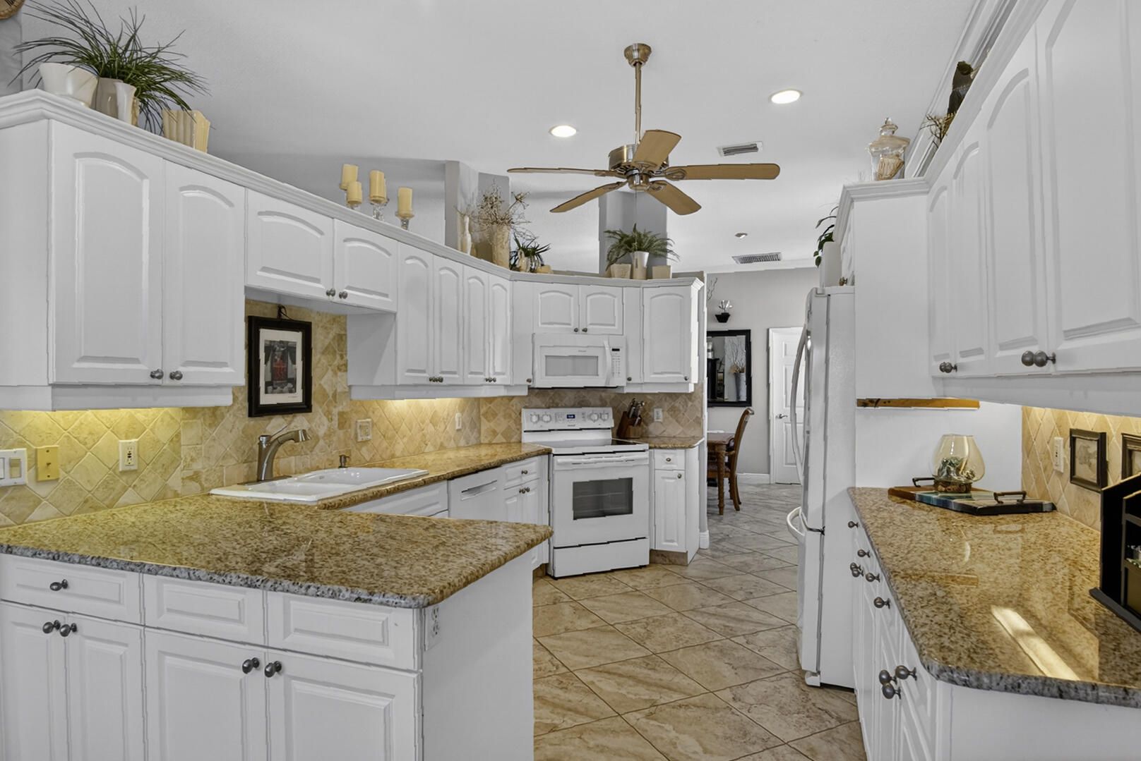 Beautiful 3/2/2/ pool home situation on the golf course with stunning views. Expansive great room opens to a covered patio and screened in pool and spa, blending indoor and outdoor living. The kitchen offers granite counter tops, pantry, custom cabinets with under counter top lighting and also an eat-in dining area. Master bedroom has additional sitting area overlooking the pool and golf course. One guest bedroom has been converted into a craft/art room. The other guest bedroom can be converted into an ensuite with the pocket door.Upgrades include crown molding and diagonal tile in the main living areas, and extended front parking pad. Laundry room has custom cabinets and shelves with a desk. Garage has a laundry tub, plenty of storage. Located in Meadowood C.C. this home is a must see.
