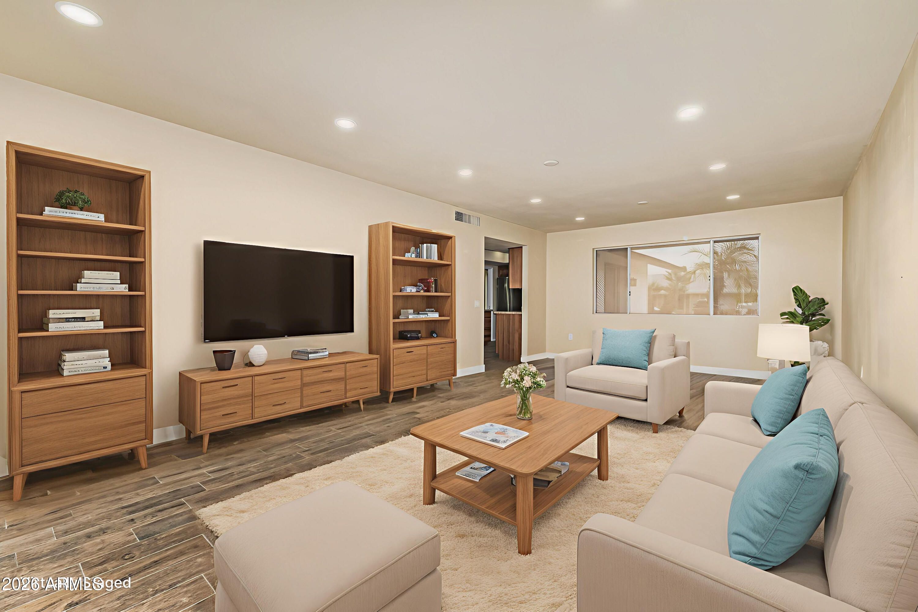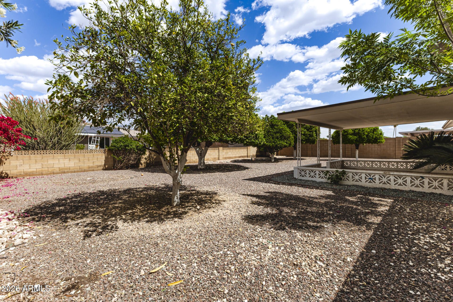Welcome to this beautifully updated home in the highly sought-after Sun City, AZ active adult community. This move-in ready property features durable wood-look tile flooring, upgraded recessed lighting, granite countertops, and high-quality wood cabinetry throughout. A standout bonus living space offers vaulted ceilings and large windows, creating a bright, open sitting room filled with natural Arizona sunlight. Enjoy resort-style 55+ living with close proximity to Sun City recreation centers, golf courses, shopping, dining, and easy freeway access. The oversized lot includes mature fruit trees and a covered patio--perfect for outdoor entertaining or relaxing year-round. Ideal for full-time residents or seasonal living, this home offers the perfect blend of updated finishes, functional layout, and prime Sun City location.