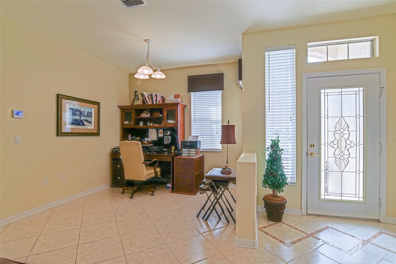 This beautiful Madeira model offers 2 bedrooms, 2 baths plus a den or can be utilized as a formal dining room, giving you flexible living space to fit your needs. A welcoming entry foyer with glass front door that leads into a thoughtfully designed floor plan featuring tile or luxury vinyl laminate flooring throughout the entire home--no carpet. The spacious kitchen includes a dinette area, perfect for everyday meals or entertaining. An inside laundry room adds convenience and functionality. Enjoy the extended garage with a golf cart garage and electric screen, along with an attractive brick paver driveway and sidewalk that enhances the homes curb appeal. Relax in the extended and enclosed climate-controlled Florida room overlooking a deep semiprivate backyard providing a peaceful space to unwind or entertain. The roof was re-shingled in 2023 and HVAC new in 2023. This well-maintained home is ready for its new owners. Some furnishings may be available.