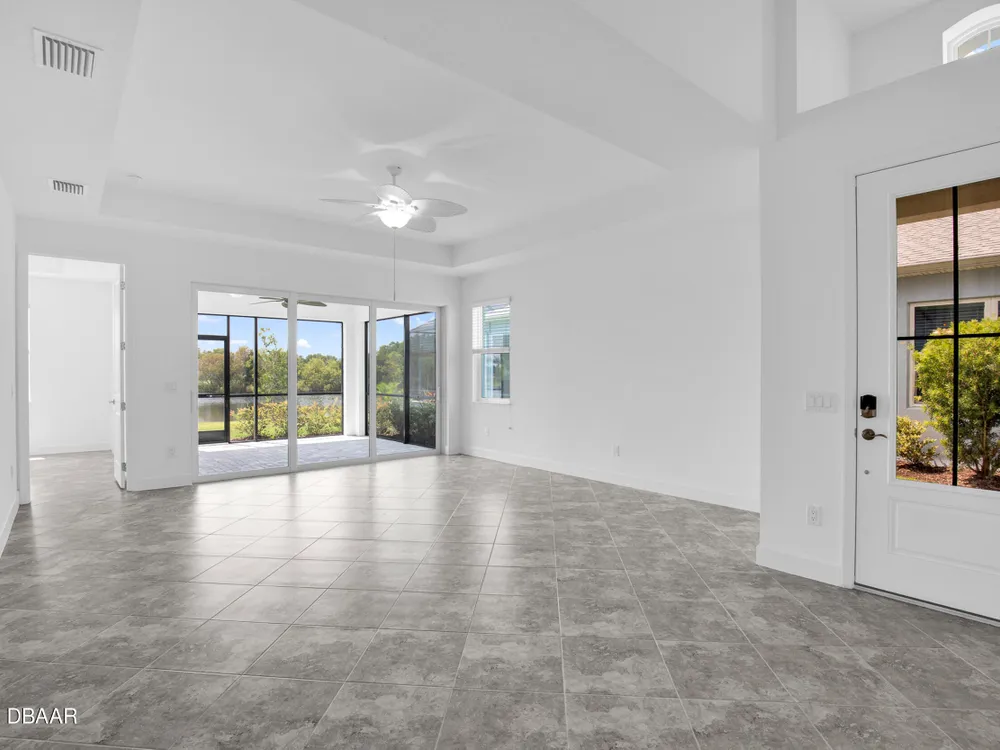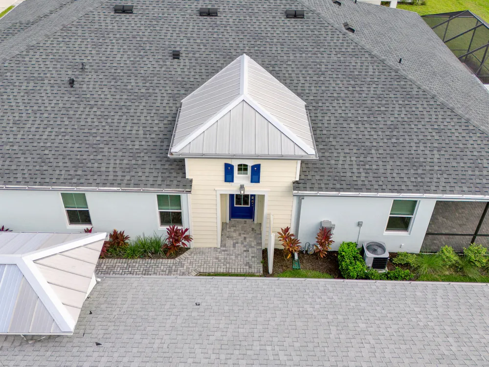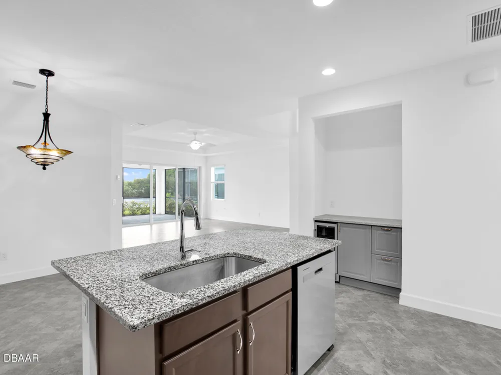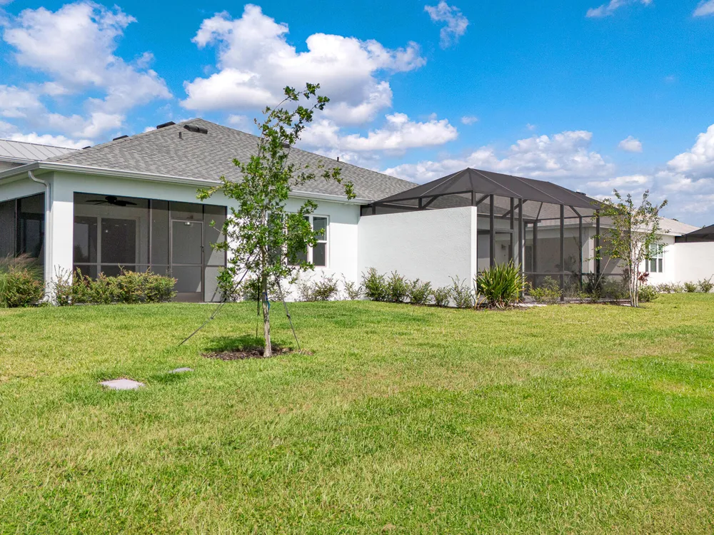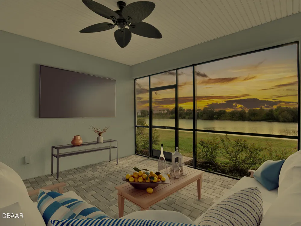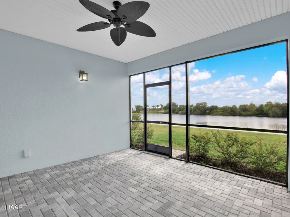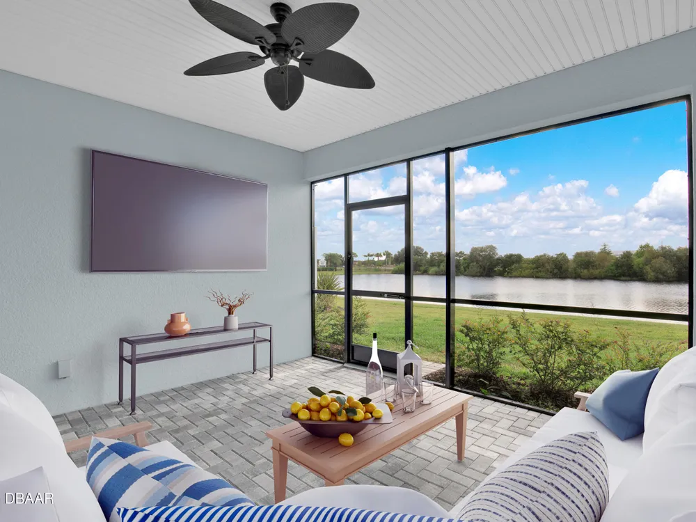 Wanna move to Margaritaville? This nearly new Antigua Villa is conveniently located by the Resident Only gate with water views, screened covered lanai, and custom beverage station with drink fridge! Eight ft. doors, Ceramic diagonal tile flooring, Glass front door, disposal button, full quartz backsplash, single sink, Zero-entry primary shower, single handle faucets, granite countertops throughout and iSpring whole house water filtration system! Enjoy the award-winning amenities of this resort-style 55+ community with Private Beach Club with pool, live poolside entertainment daily and concerts every Friday and Saturday at the bandshell in Town Center! Three pools in Town Center, take a class then sauna and spa in Fins Up Fitness Center, play Finball, Bocce ball, Pickleball, oh my! Play Trivia, Canasta, Mahjong, Mexican Train or see a show! Learn Ukulele, Pottery, Woodworking! Join Cycling, Water Volleyball, or a resident special interest club: whiskey, cigars, cruisers, food, decor