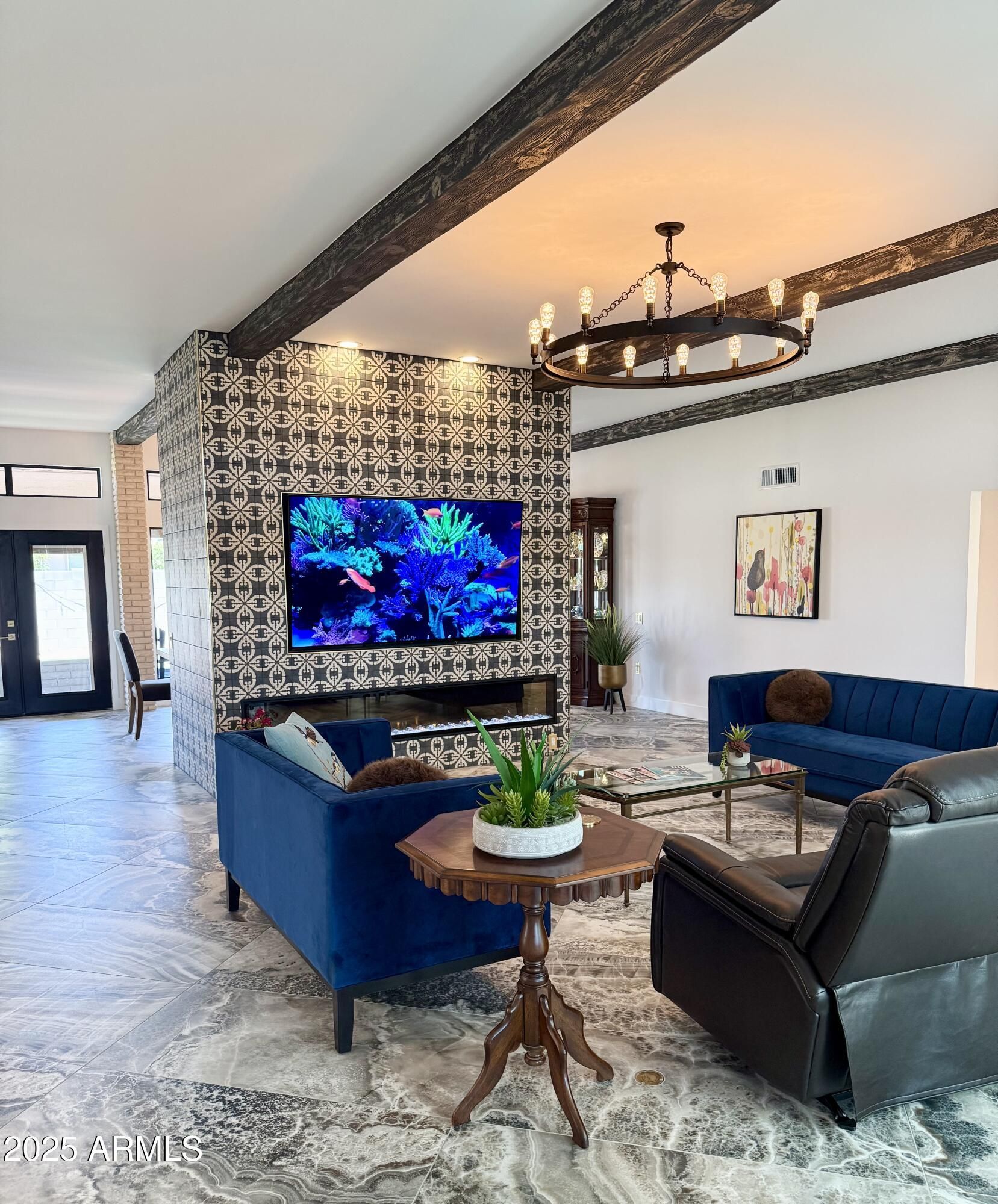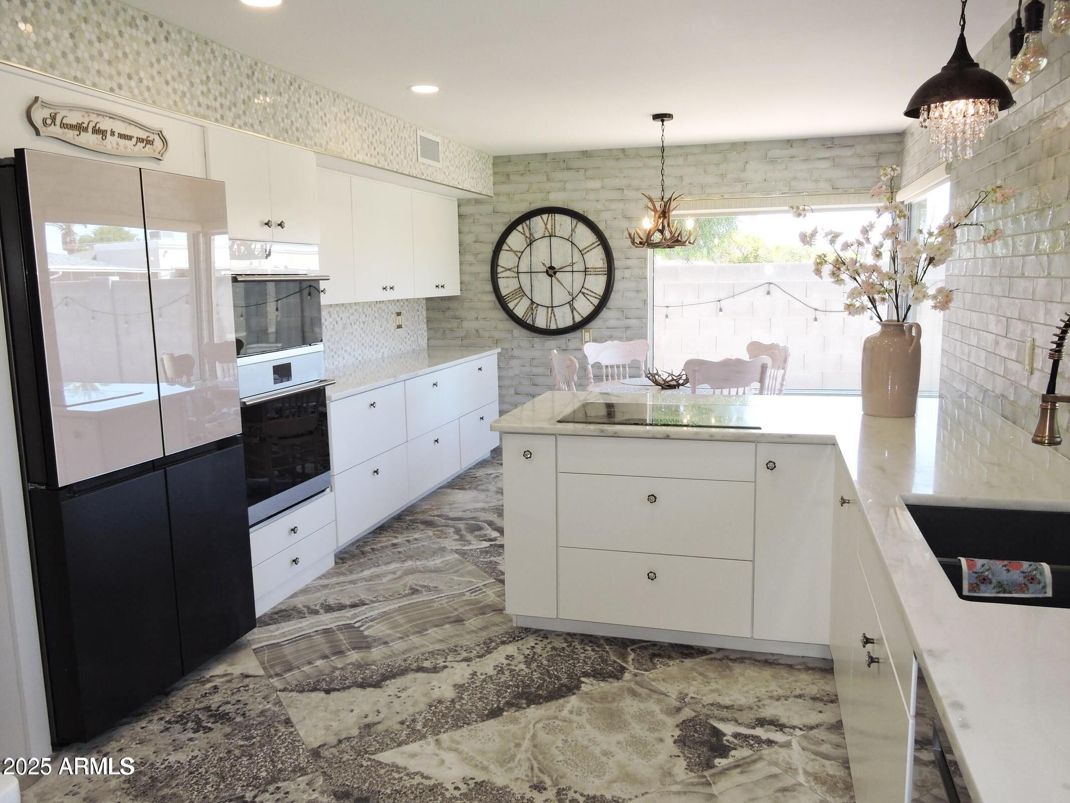 COMPLETE REMODEL of designer owned Starlighter model. Fabulous open floor plan with dual master suites, plus office/craft/hobby room with additional closet for storage of supplies. Enter the home into the Exquisite AZ Room where you will enjoy coffee, tea, entertaining or quiet reading. This home showcases high-end 24'' x 48'' tile throughout. Kitchen is a dream- come-true and boasts sleek new cabinets, marble countertops, new appliances, beverage refrigerator and pantry. Upgrades include new eye catching tile walk-in shower, tub, sinks, toilets and stylish fixtures throughout! Closets boast Elf System. Three LED Fireplaces create relaxing ambiance. Add New interior paint, New AC units (11/21), New Foam Roof Coating (6/21), New recessed lighting throughout. New garage door and garage cabinets, RV gate and 6' block fence. Great location in Sun City with fantastic amenities and easy access to shopping and entertainment. Furnishings available under separate bill of sale. Ask Agent for inventory list.