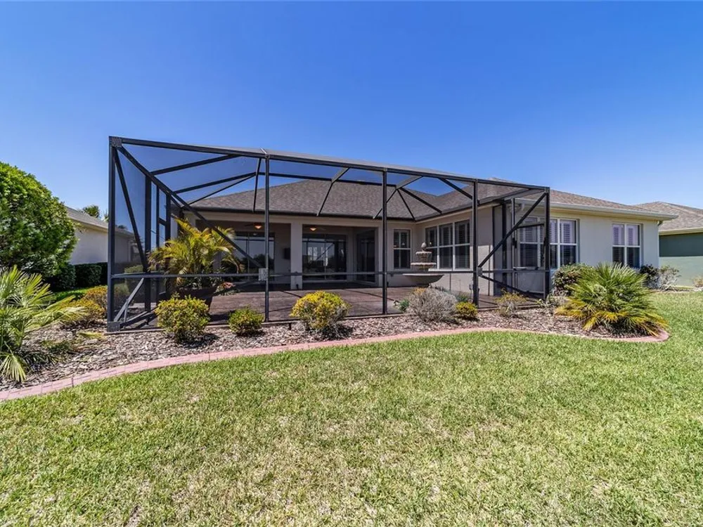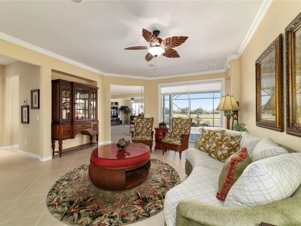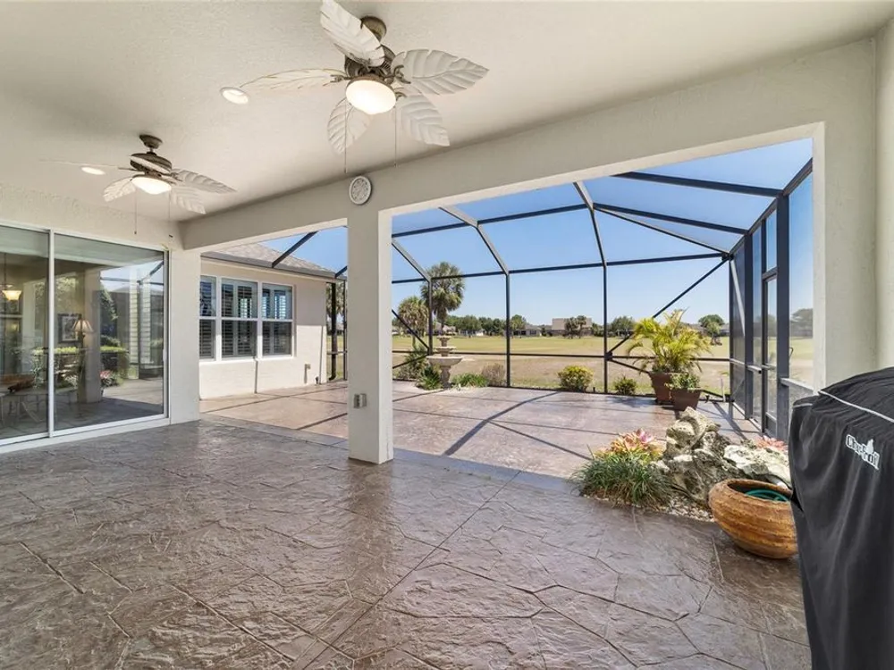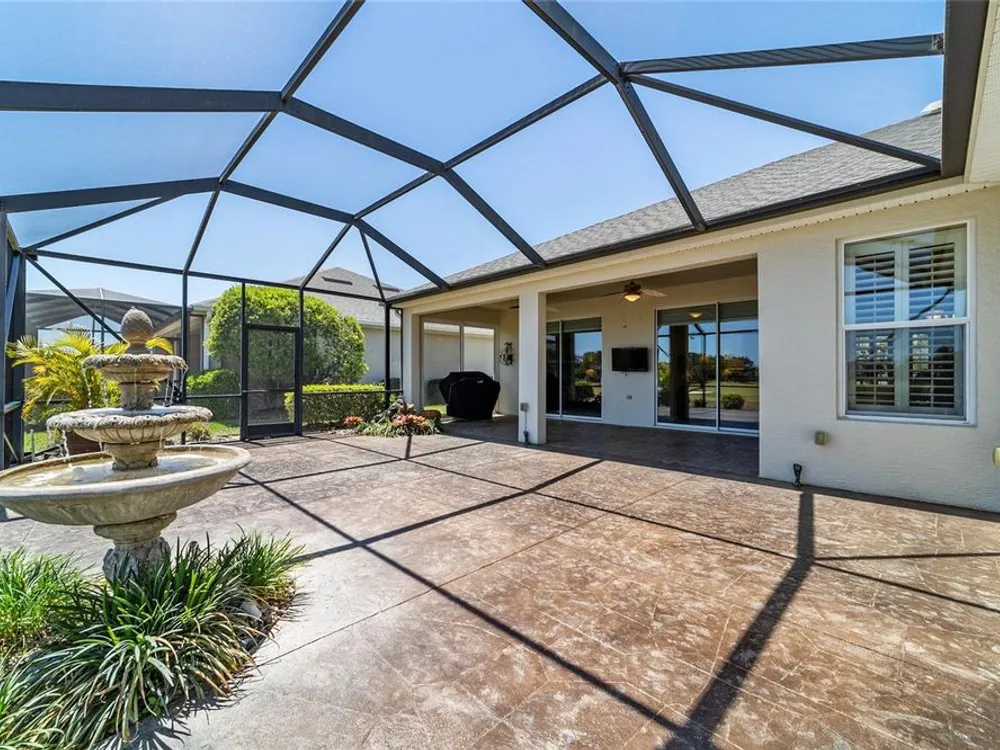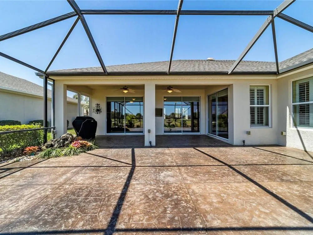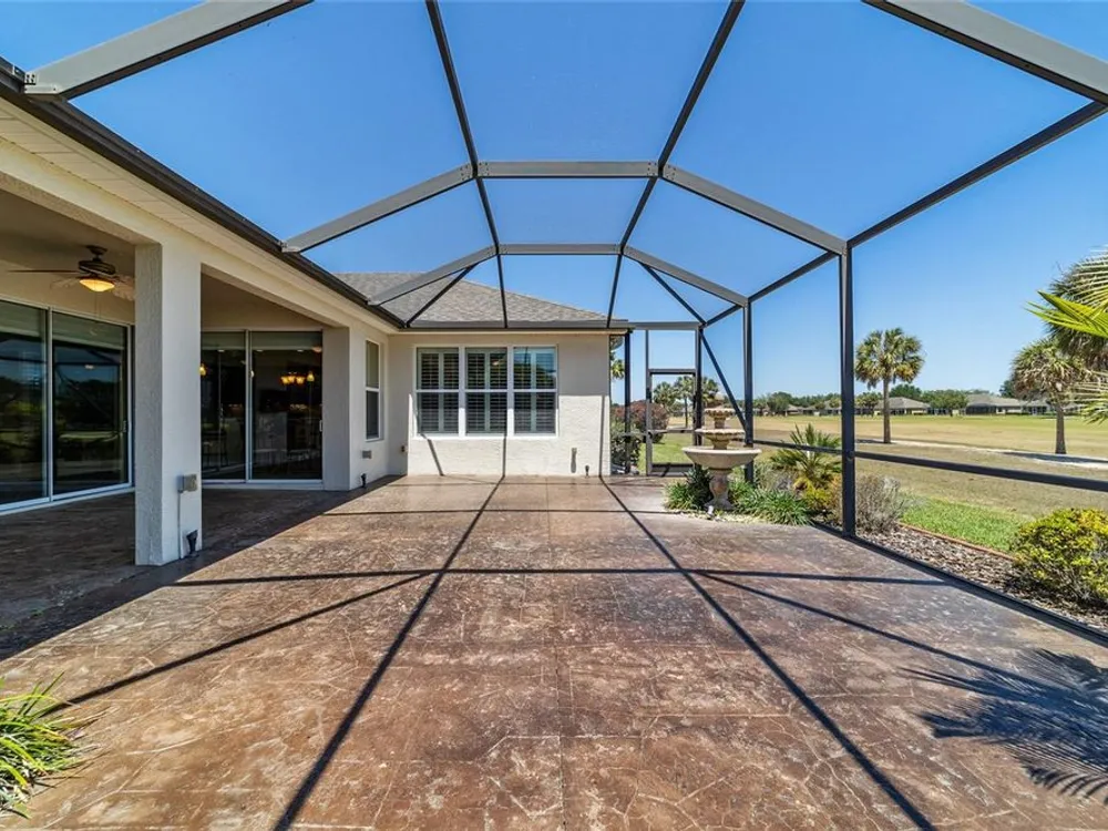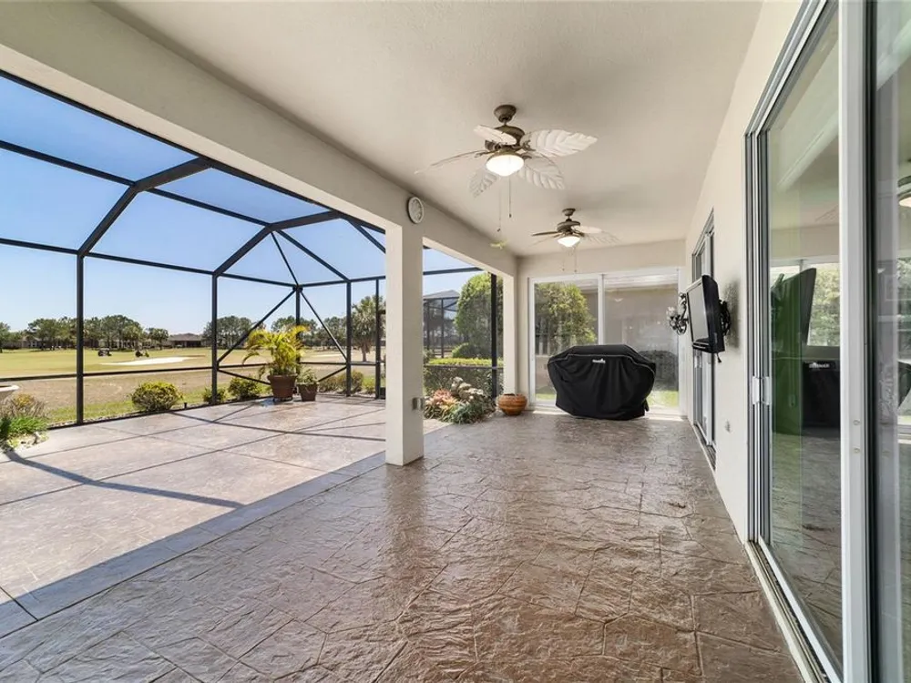 OPPORTUNITY AWAITS – PANORAMIC GOLF VIEW UNDER $484,000! If you’ve been dreaming of a home with breathtaking panoramic golf course views and generous living space, this is your chance! Welcome to a luxurious retreat in the highly sought-after 55+ community of Stone Creek by Del Webb. This beautifully maintained home offers 2,413 square feet of elegance and comfort, perfectly blending indoor sophistication with outdoor serenity. Situated on a premium golf course lot, this residence features three bedrooms and two baths, designed with an open, airy layout that highlights the incredible views. The main living areas are adorned with crown molding and ceiling fans throughout, creating an inviting and refined atmosphere. The chef’s kitchen is a true highlight, featuring wood cabinetry, stainless steel appliances, solid surface countertops, and an elegant tile backsplash—ideal for cooking, entertaining, and gathering with friends and family. Enjoy seamless indoor-outdoor living with sliding glass doors from the living room, breakfast nook, and primary suite that open to the expansive screened-in lanai, perfect for morning coffee or evening relaxation while overlooking the lush greens. The primary suite is a private sanctuary, offering lanai access, a walk-in tiled shower, and a custom walk-in closet. Step outside to the extended lanai with birdcage screening, where you can unwind year-round and enjoy the tranquil Florida lifestyle. Additional features include a three-car garage, offering ample space for vehicles, golf carts, or storage, and upgraded landscaping that enhances the home’s beautiful curb appeal. Living in Stone Creek by Del Webb means more than just owning a home—it’s embracing a lifestyle. The community offers an 18-hole championship golf course, club and grille, resort-style pool and spa, fitness center, and numerous recreational activities such as pickleball, tennis, bocce, shuffleboard, softball, and billiards. Whether you’re seeking relaxation, recreation, or social connection, Stone Creek has it all. Conveniently located near dining, shopping, and local attractions, this home offers the perfect combination of luxury, community, and convenience. Don’t miss your opportunity to own one of the best golf-view homes in Stone Creek—schedule your private tour today and experience firsthand the elegance, comfort, and unmatched setting of this remarkable property.