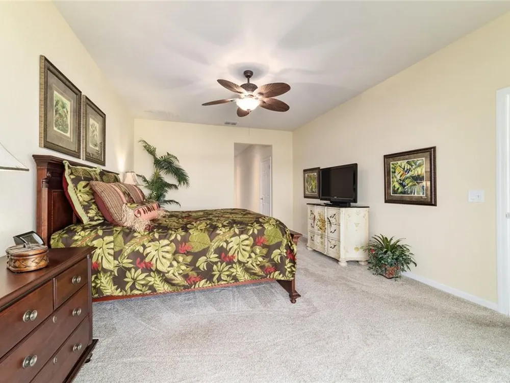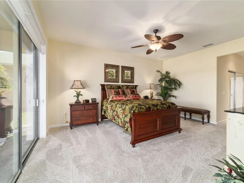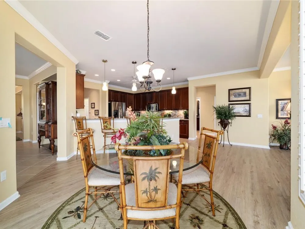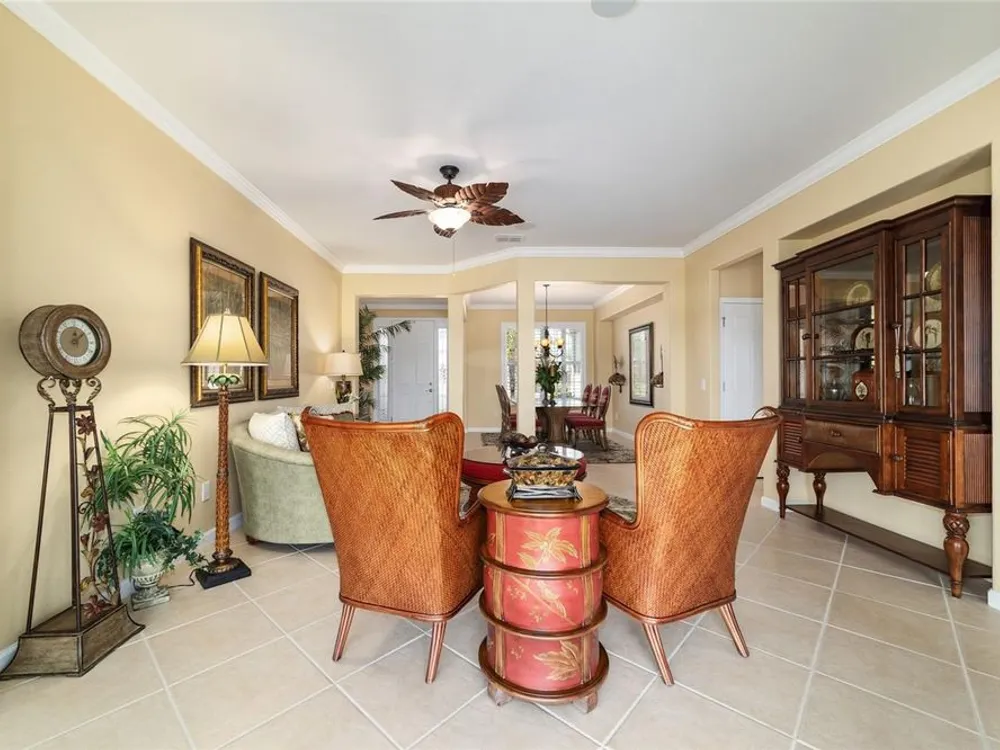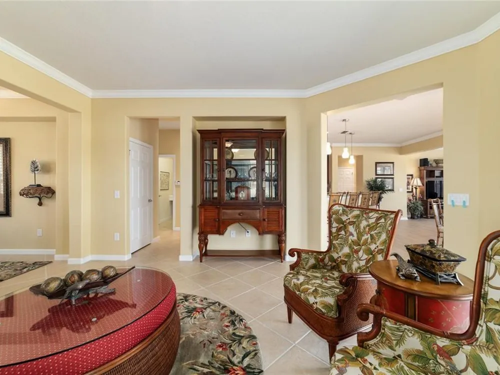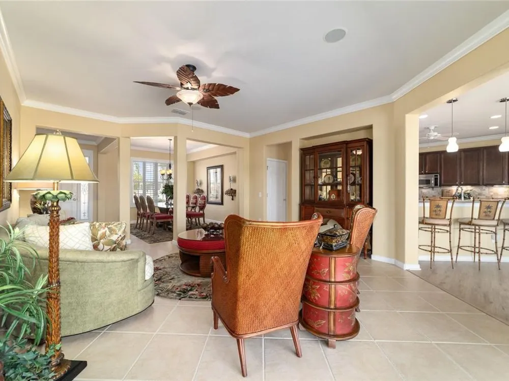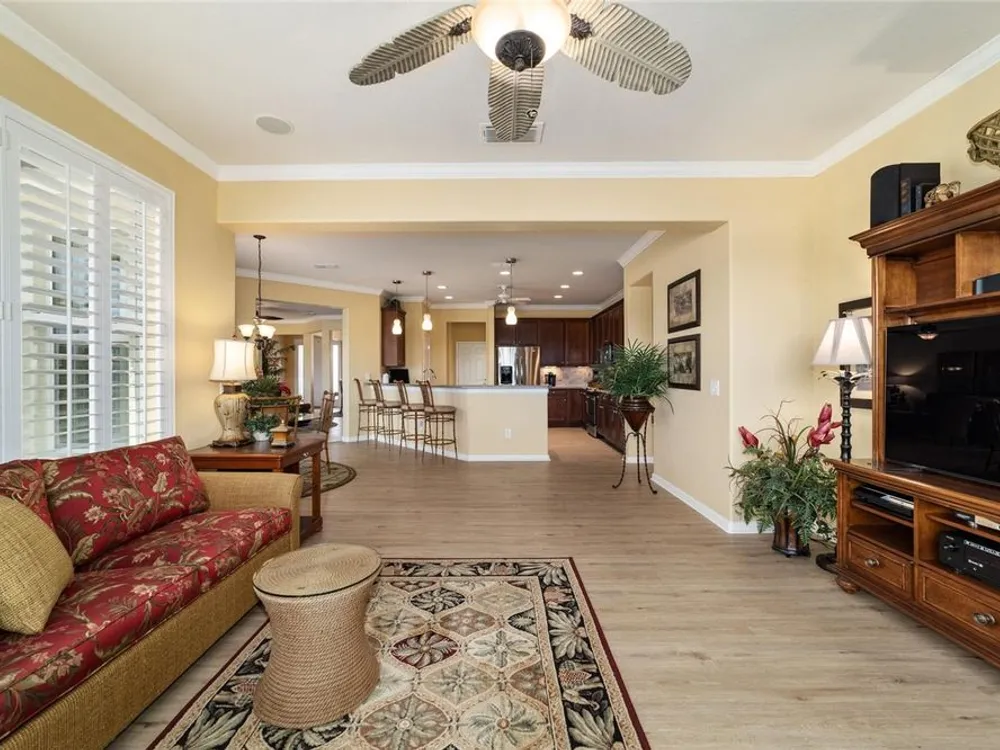 OPPORTUNITY AWAITS – PANORAMIC GOLF VIEW UNDER $484,000! If you’ve been dreaming of a home with breathtaking panoramic golf course views and generous living space, this is your chance! Welcome to a luxurious retreat in the highly sought-after 55+ community of Stone Creek by Del Webb. This beautifully maintained home offers 2,413 square feet of elegance and comfort, perfectly blending indoor sophistication with outdoor serenity. Situated on a premium golf course lot, this residence features three bedrooms and two baths, designed with an open, airy layout that highlights the incredible views. The main living areas are adorned with crown molding and ceiling fans throughout, creating an inviting and refined atmosphere. The chef’s kitchen is a true highlight, featuring wood cabinetry, stainless steel appliances, solid surface countertops, and an elegant tile backsplash—ideal for cooking, entertaining, and gathering with friends and family. Enjoy seamless indoor-outdoor living with sliding glass doors from the living room, breakfast nook, and primary suite that open to the expansive screened-in lanai, perfect for morning coffee or evening relaxation while overlooking the lush greens. The primary suite is a private sanctuary, offering lanai access, a walk-in tiled shower, and a custom walk-in closet. Step outside to the extended lanai with birdcage screening, where you can unwind year-round and enjoy the tranquil Florida lifestyle. Additional features include a three-car garage, offering ample space for vehicles, golf carts, or storage, and upgraded landscaping that enhances the home’s beautiful curb appeal. Living in Stone Creek by Del Webb means more than just owning a home—it’s embracing a lifestyle. The community offers an 18-hole championship golf course, club and grille, resort-style pool and spa, fitness center, and numerous recreational activities such as pickleball, tennis, bocce, shuffleboard, softball, and billiards. Whether you’re seeking relaxation, recreation, or social connection, Stone Creek has it all. Conveniently located near dining, shopping, and local attractions, this home offers the perfect combination of luxury, community, and convenience. Don’t miss your opportunity to own one of the best golf-view homes in Stone Creek—schedule your private tour today and experience firsthand the elegance, comfort, and unmatched setting of this remarkable property.