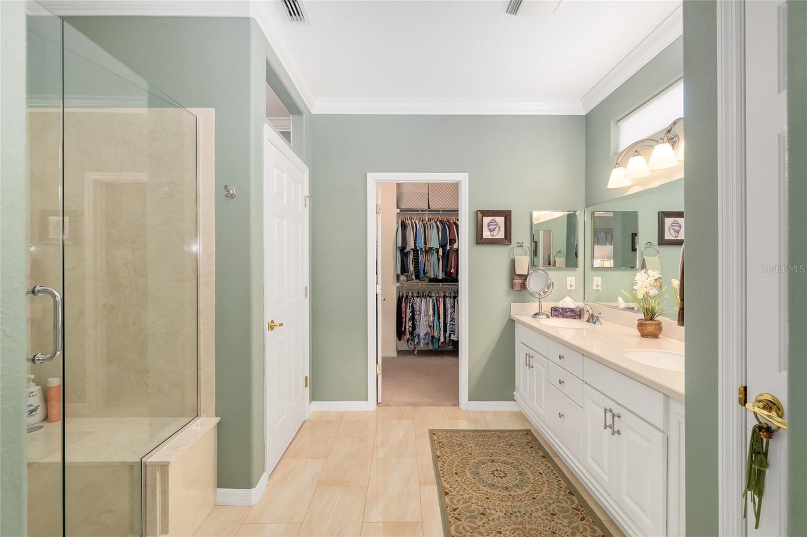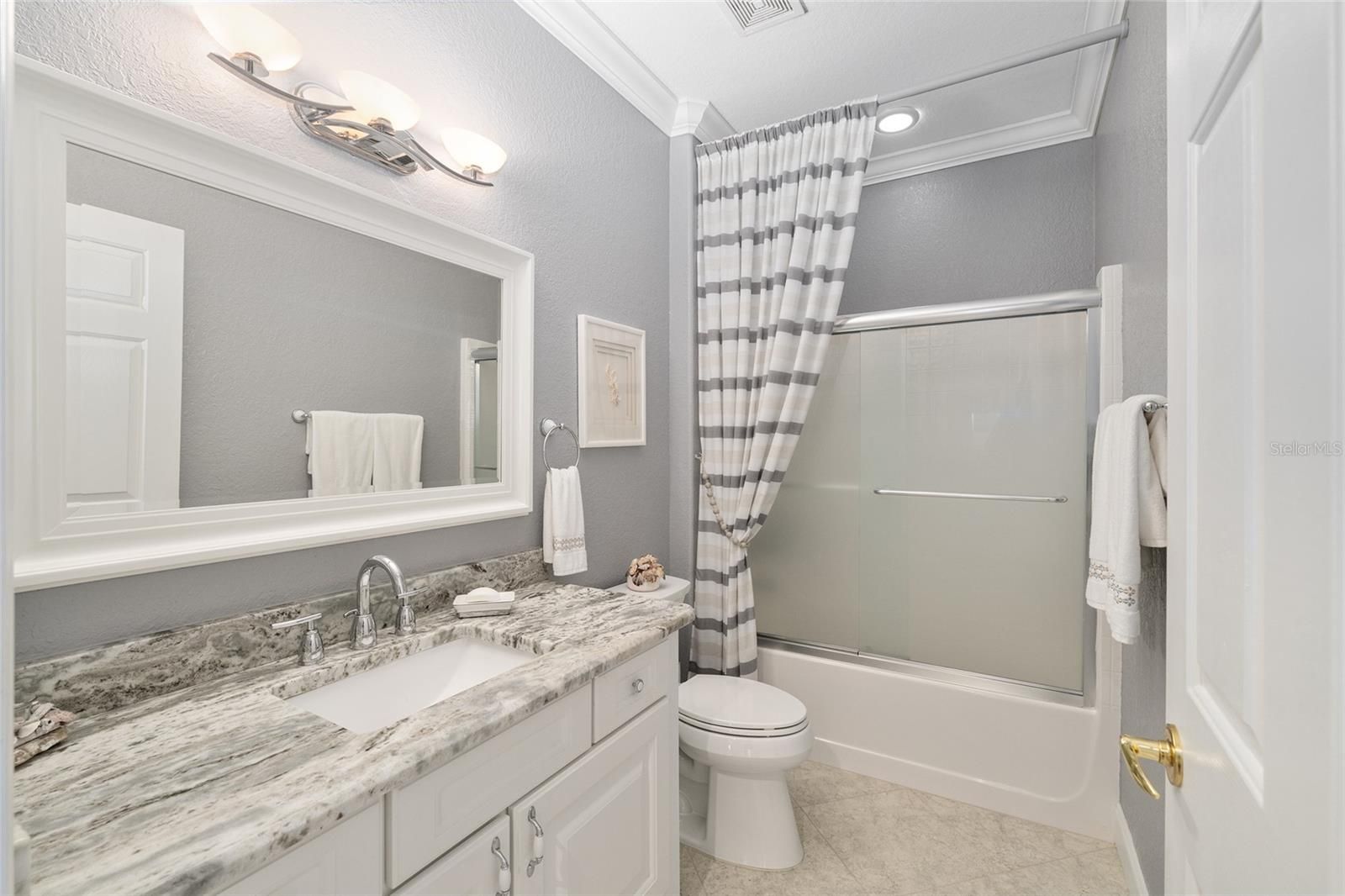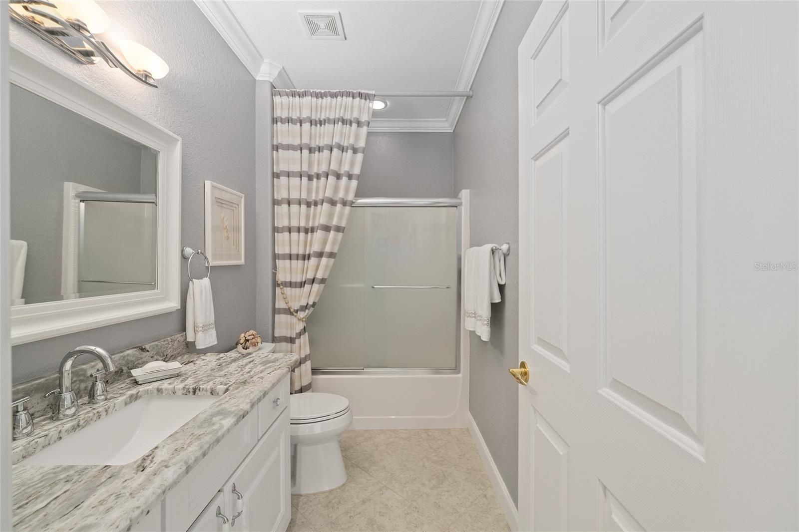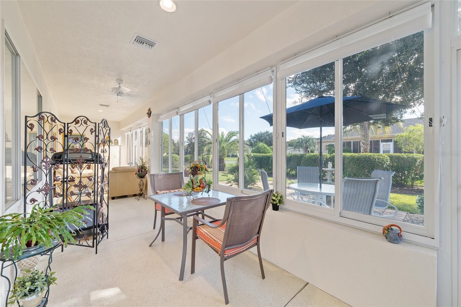 IMMACULATE ST. GEORGE MODEL – SHOWS LIKE A DESIGNER HOME! This immaculate 2-bedroom, 2-bath St. George model sits proudly on a beautifully landscaped corner lot and shows like a model home. Step through the leaded glass front door and you’ll immediately notice the care and upgrades throughout — with ceramic tile and laminate flooring only (NO carpet anywhere!).The kitchen is a standout with its granite countertops, tiled backsplash, white cabinetry, newer stainless steel appliances including a gas range, upgraded sink, skylights, recipe windows, and a convenient breakfast bar. Crown molding graces every room, adding a touch of elegance throughout. Perfect for entertaining, the kitchen overlooks the family room so you’re always part of the conversation. The living and dining rooms feature recessed lighting, laminate floors, and vertical blinds, creating a bright and welcoming space. The spacious primary suite includes laminate flooring, crown molding, and mini-shade window treatments. The ensuite bath features a raised double vanity with granite countertops, plus both a water closet and linen closet. The guest bath has also been tastefully updated with a raised vanity and granite counter. The laundry room, located just off the kitchen, offers extra cabinetry for storage and doubles as a butler’s pantry. The extended garage includes pull-down attic stairs, a privacy screen, windows in the garage door, and an epoxy-coated floor. Relax year-round in the enclosed lanai — cooled and heated for comfort — with a painted floor and roller shades. Just outside, enjoy your private 10x12 patio, perfect for grilling or morning coffee. Recent updates include a new roof (2022) and HVAC system (2019). This home truly has it all — pristine condition, smart updates, and exceptional attention to detail. Don’t miss seeing it today!
