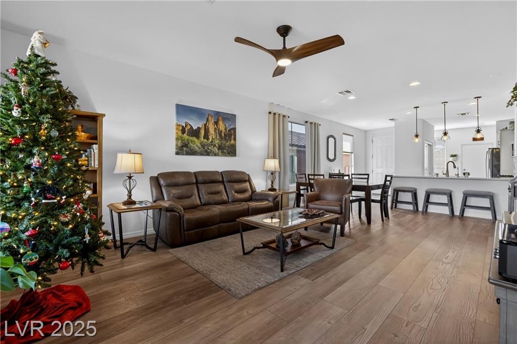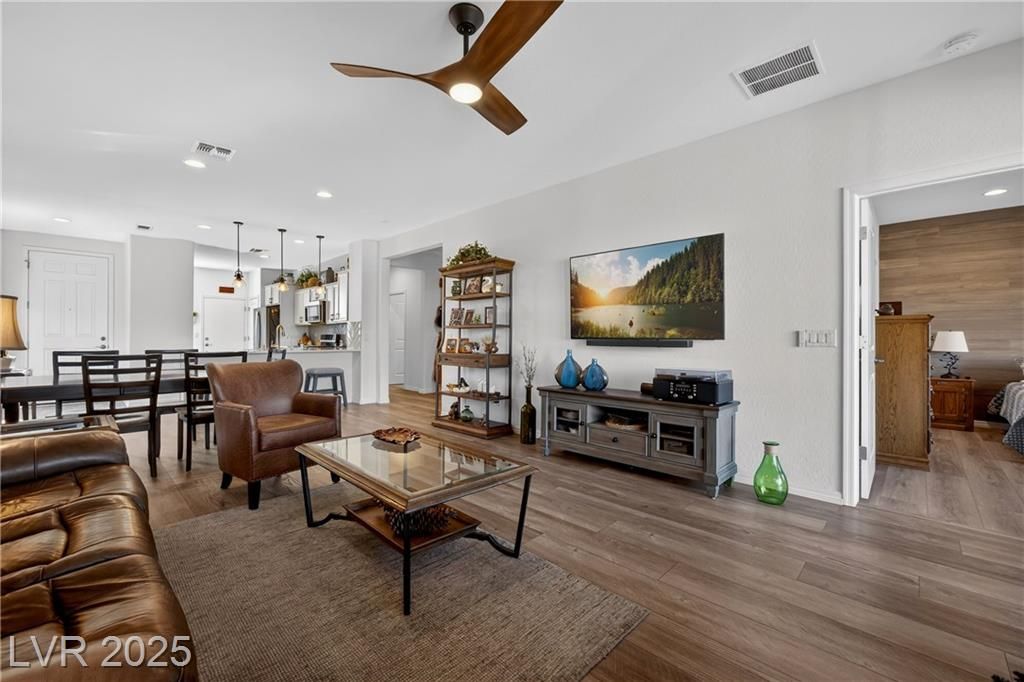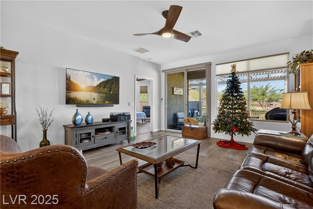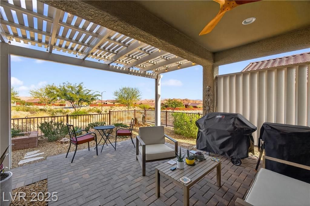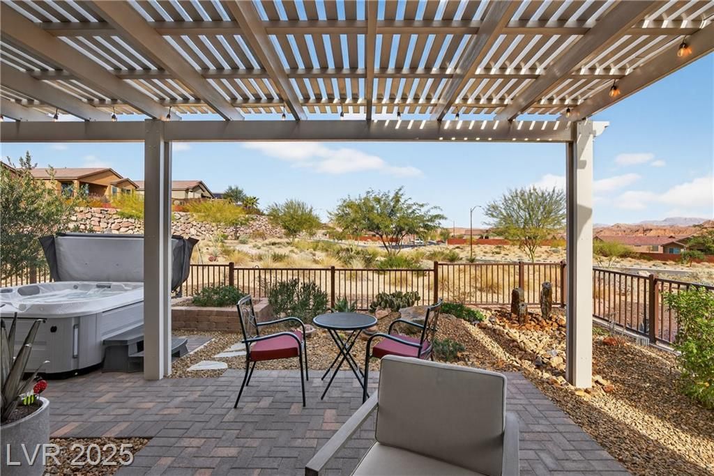 Beautifully upgraded home offering 2 beds, 2 baths, & a versatile den. Designed with LVP flooring throughout, this home is entirely carpet-free for a clean, modern feel.The spacious primary suite offers a feature wall & elegant bay windows that fill the room with natural light, along with a tiled walk-in shower & granite countertops for a refined touch. Enjoy excellent curb appeal with a paver driveway & walkway, & continue the outdoor living experience in the fully landscaped & fully fenced backyard. The extended pergola-covered patio offers abundant shade and comfort, complete with a cozy 3-person hot tub-your own private retreat.Set against a peaceful green space park, this property provides serene northern and eastern mountain views, creating a stunning backdrop from sunrise onward. The paver back patio enhances the outdoor ambiance and makes this home ideal for relaxation or entertaining. This home is the perfect blend of comfort and style.