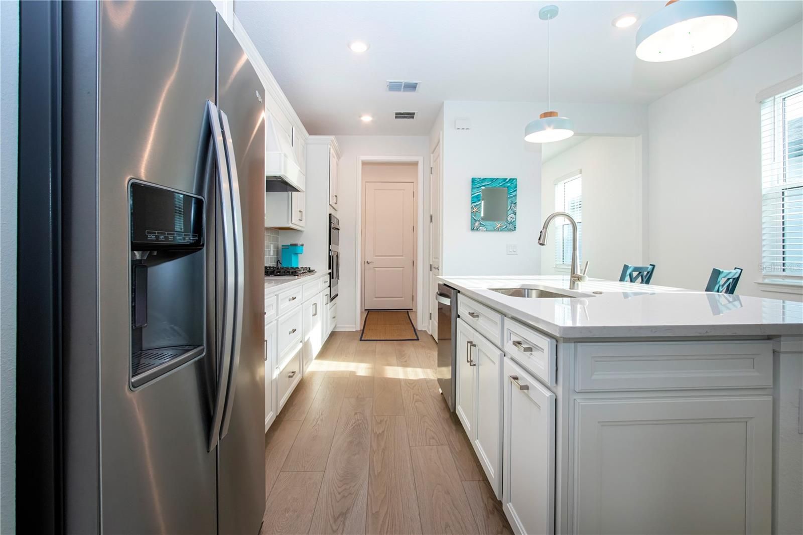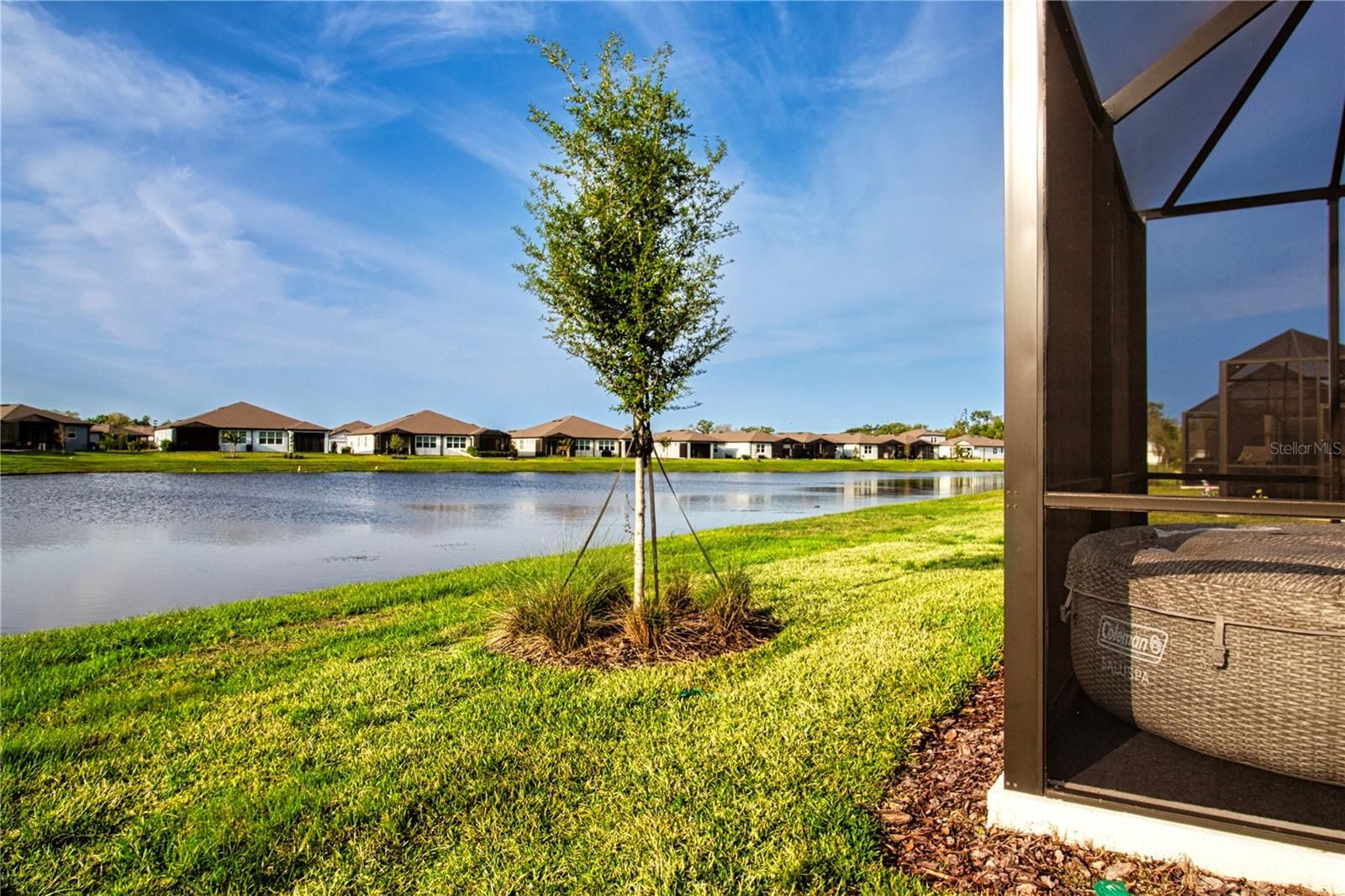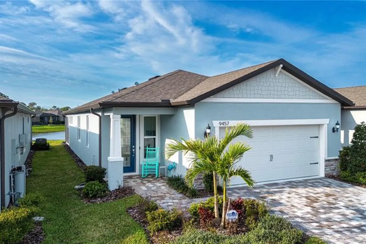 Welcome to 9457 Shorebird Court, an exceptional residence in the highly sought-after Del Webb BayView, one of Parrish’s premier 55+ resort-style communities. Perfectly positioned on a tranquil homesite with beautiful water views and highly desirable southern rear exposure, this home offers the perfect blend of refined design, modern upgrades, and vibrant community living. From the moment you arrive, the home’s coastal elevation with elegant stone accents creates striking curb appeal and sets the tone for the sophisticated interior. Step inside to discover a bright, welcoming atmosphere enhanced by impact-resistant windows and a glass-insert front door, allowing abundant natural light to fill the home. Eight-foot interior doors throughout further enhance the sense of openness and architectural detail, while luxury plank vinyl flooring throughout the main living areas provides both beauty and durability. At the heart of the home is a beautifully designed gourmet kitchen, featuring quartz countertops, soft-close cabinetry and drawers, designer lighting, and a large pantry, offering both style and exceptional functionality. The kitchen flows seamlessly into the main living and dining areas, creating an inviting open-concept space ideal for entertaining or relaxed everyday living. Just off the kitchen, the laundry room is thoughtfully designed with a utility sink and a pocket door, providing convenience while keeping the space discreetly tucked away. Step outside to the extended lanai, where peaceful water views and southern exposure create a bright and inviting outdoor setting—perfect for enjoying morning coffee, relaxing afternoons, or evening gatherings while taking in Florida’s beautiful weather. Additional upgrades include designer lighting and ceiling fans throughout, epoxy-coated garage floor, and finishes that reflect careful attention to detail. The home has been extremely gently lived in, offering a move-in ready opportunity while still allowing the next owners to add their own personal touches. Furnishings are negotiable, making this an even more appealing and convenient opportunity. Living in Del Webb BayView means embracing a lifestyle, not just owning a home. This vibrant active-adult community features a stunning waterfront amenity campus with resort-style pools, a state-of-the-art fitness center, pickleball and tennis courts, scenic walking and biking trails, and a full calendar of clubs, events, and social activities. Residents also enjoy the convenience of the Sailfish Bar & Grille, the community’s private onsite restaurant and full-service bar, offering a welcoming gathering place just moments from home. Ideally located in the rapidly growing Parrish area, residents enjoy convenient access to Lakewood Ranch, Sarasota, St. Petersburg, Tampa, and the Gulf Coast’s renowned beaches, along with nearby shopping, dining, golf, and everyday conveniences. If you’ve been searching for a beautifully upgraded home with water views, southern exposure, and an exceptional resort-style lifestyle, 9457 Shorebird Court presents an outstanding opportunity to experience the very best of Del Webb BayView living.