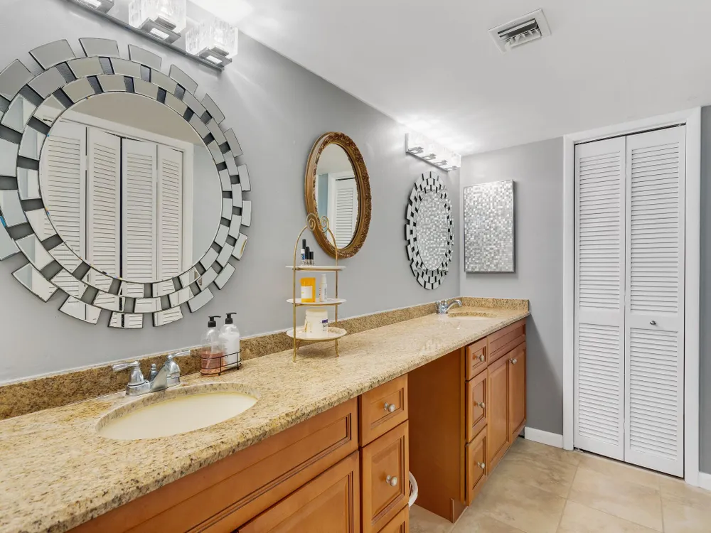 - Entry Level Living Area, Entrance Foyer, Split Bedrooms, Walk-In Closet(s), Wet Bar, Living/Dining Room, Single Hung Metal Window(s), Dual Sinks, Primary Downstairs