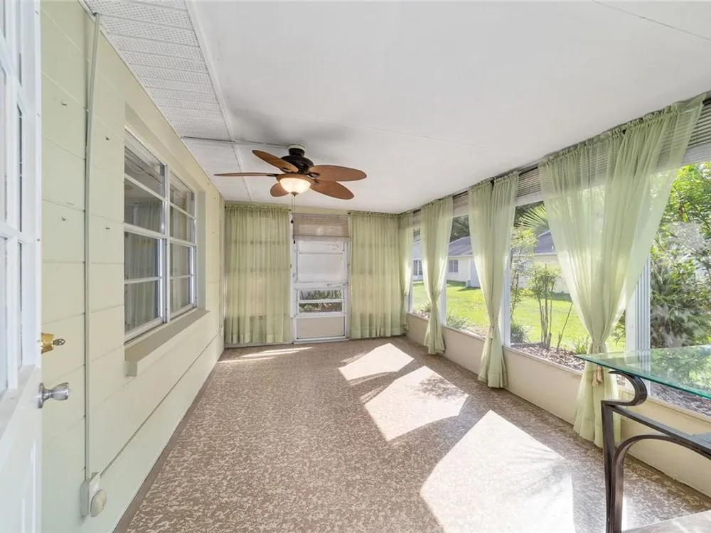 One or more photo(s) has been virtually staged. UPDATED: Popular Sienna 2 has 2 bedrooms, 2 bathrooms, and 1.5 car garage that can easily park a car and golf cart, side by side. This home has almost 1500 sq ft of living space with vaulted ceilings which makes it feel spacious. The kitchen is light and bright and overlooks the front porch. Newer stainless steel appliances, backsplash, and stylish counters give the kitchen a modern feel. The main bedroom has LVP floors, a large walk in closet with an ensuite bathroom that has a large countertop and walk in shower. The secondary bedroom has it's own private wing with bathroom making it private for guests. Beyond the great room is an expanded second living space that would be perfect as a home office, craft room, or secondary living space. This home has LVP floors, new paint inside and out, NEW roof (2024), and newer 15 seer HVAC (2019). Enjoy the outdoors from the screened lanai with a desirable northern exposure. On Top of the World is Ocala's premier 55+ luxury golf course community featuring lots of amenities as well as golf cart access to shopping, dining, entertainment, health, and beauty.