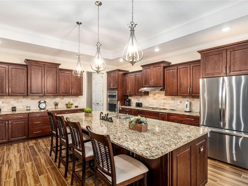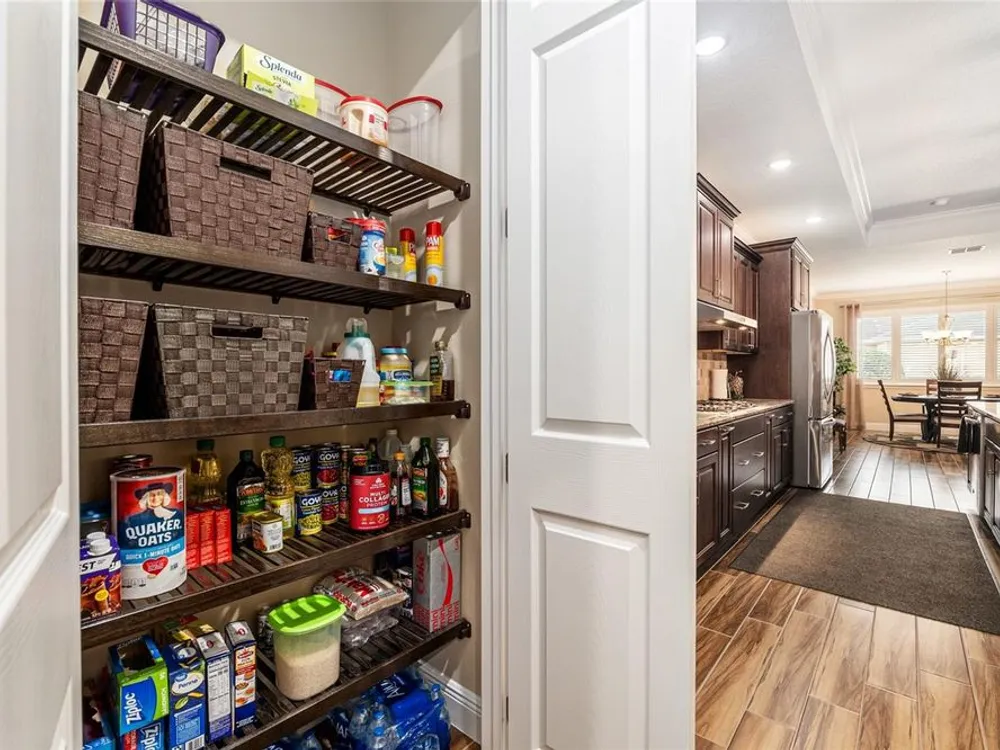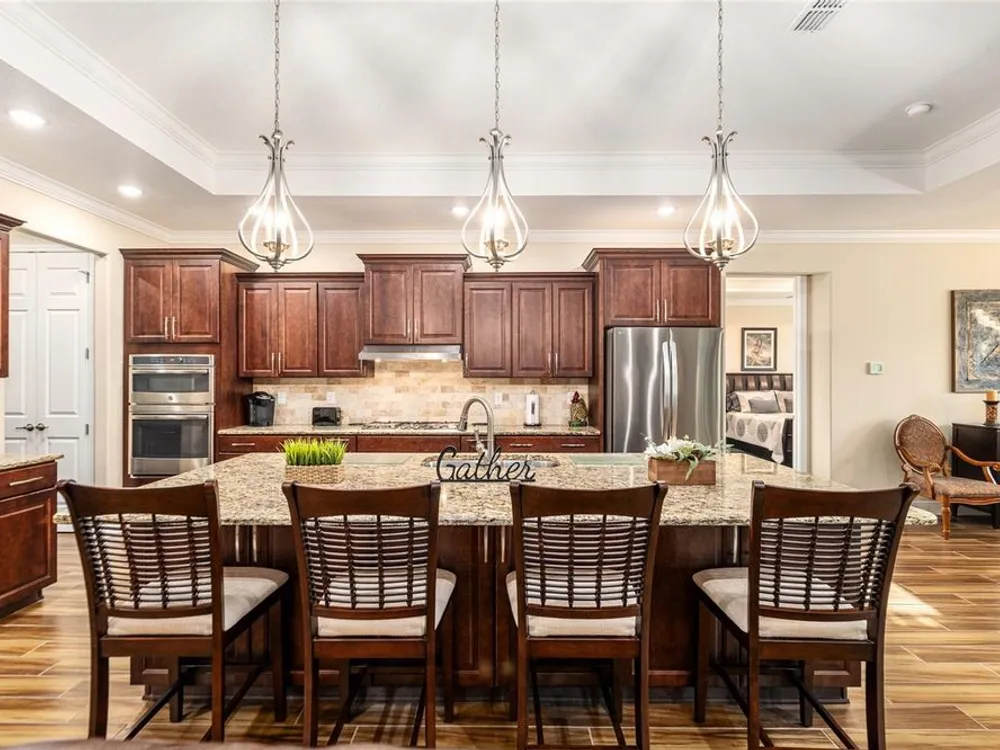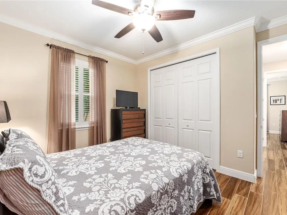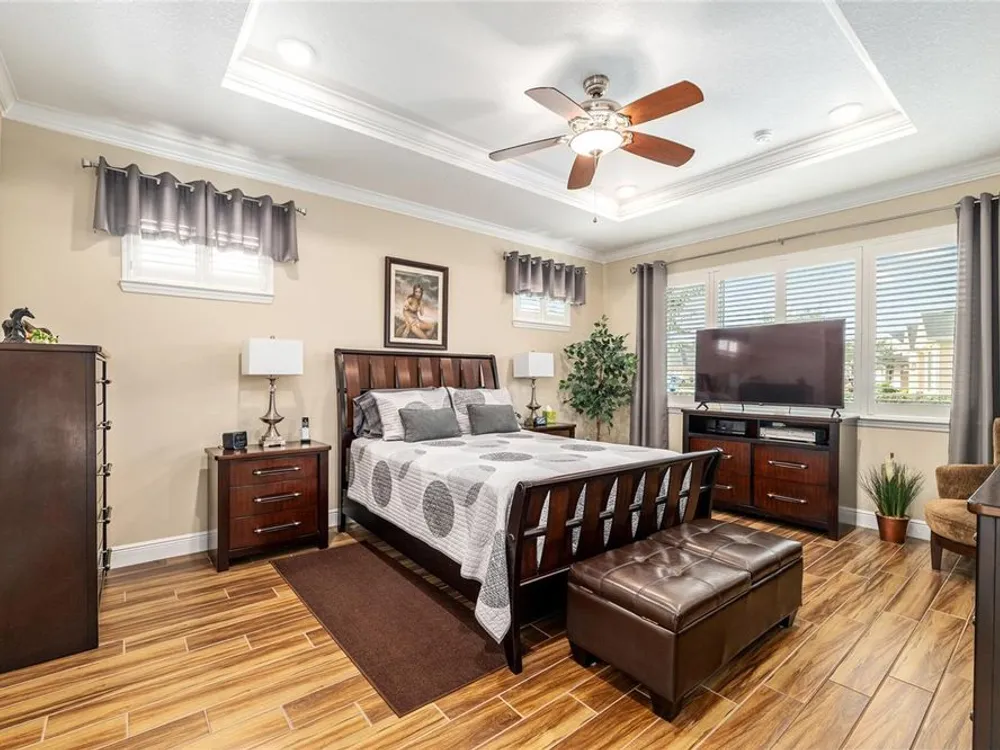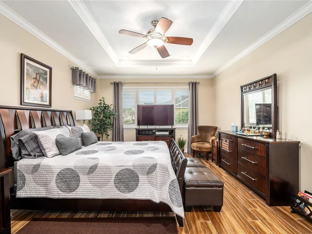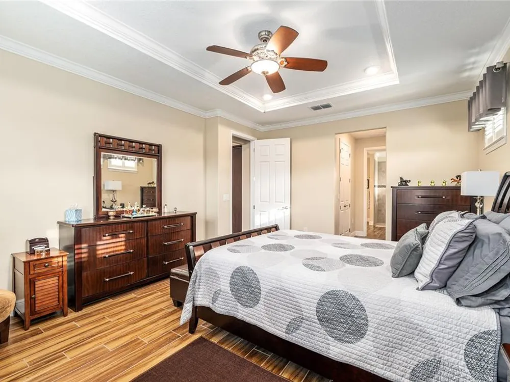- Ceiling Fan(s), Crown Molding, Kitchen/Family Room Combo, Split Bedrooms, Thermostat, Tray Ceiling(s), Walk-In Closet(s)