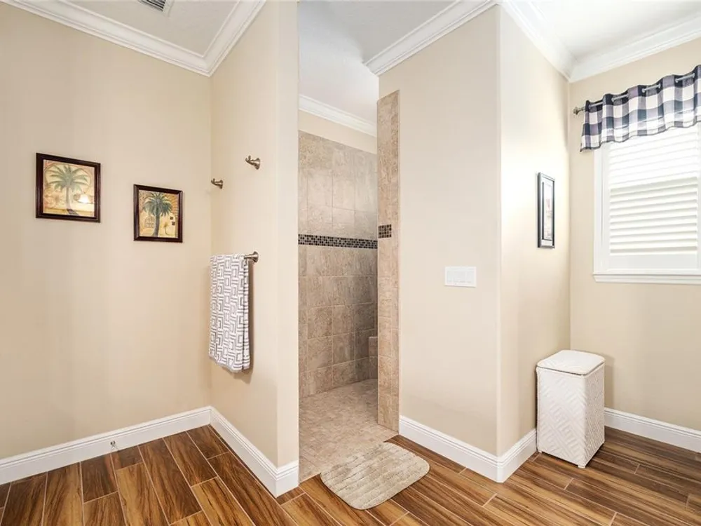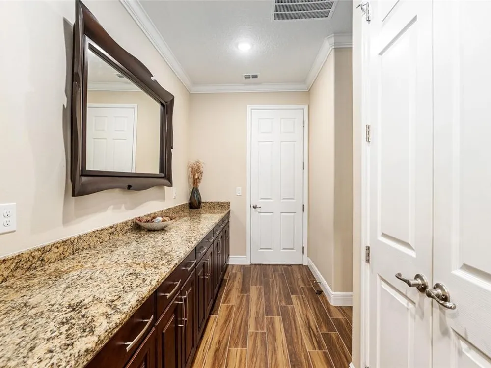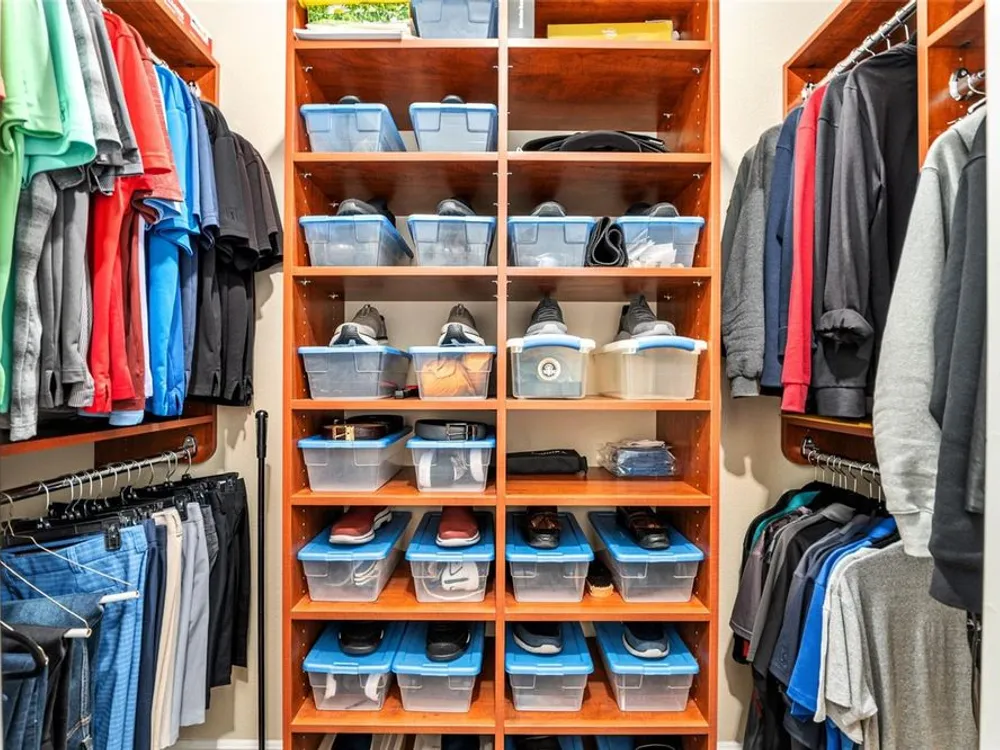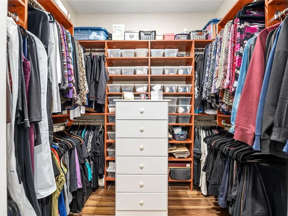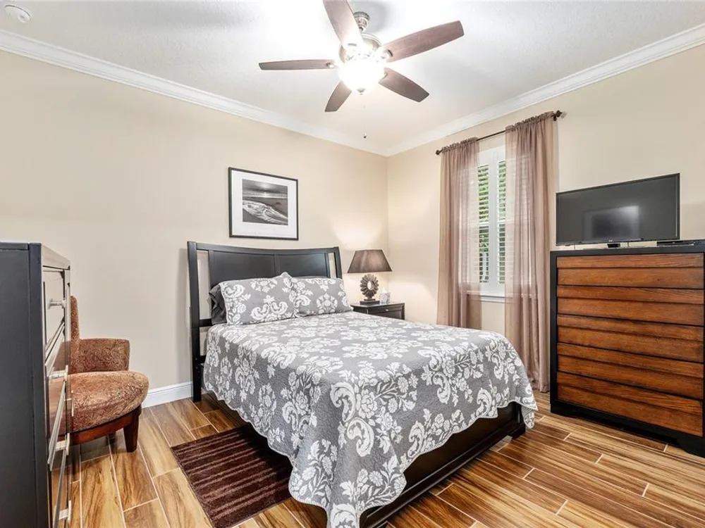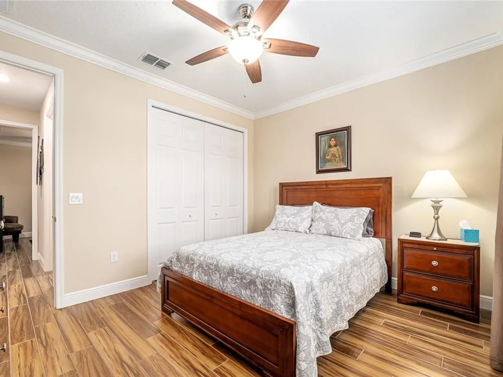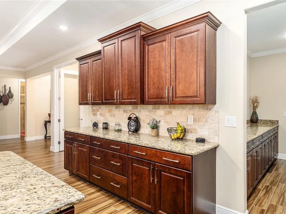 - Ceiling Fan(s), Crown Molding, Kitchen/Family Room Combo, Split Bedrooms, Thermostat, Tray Ceiling(s), Walk-In Closet(s)