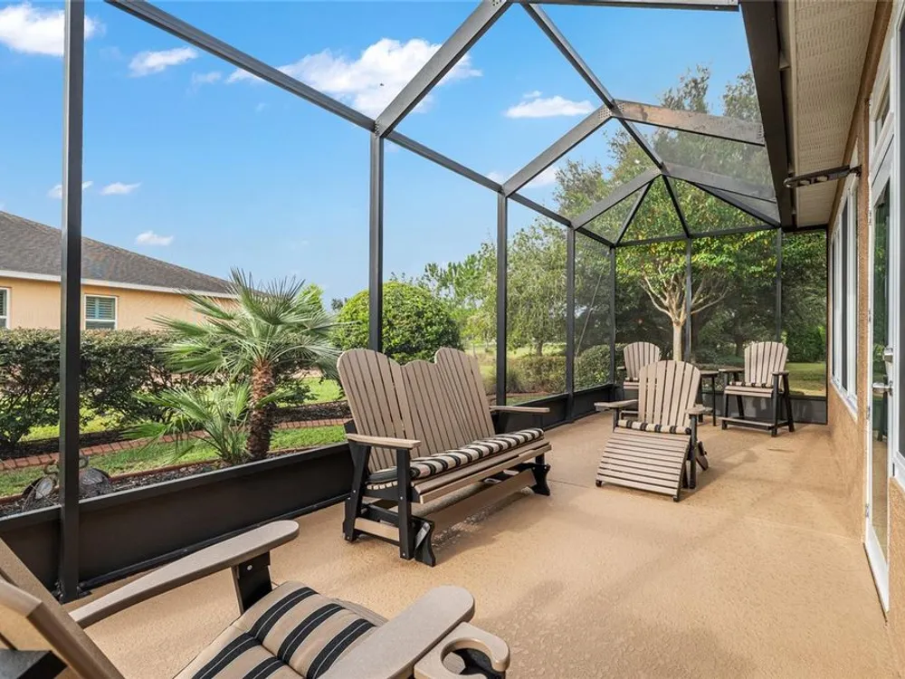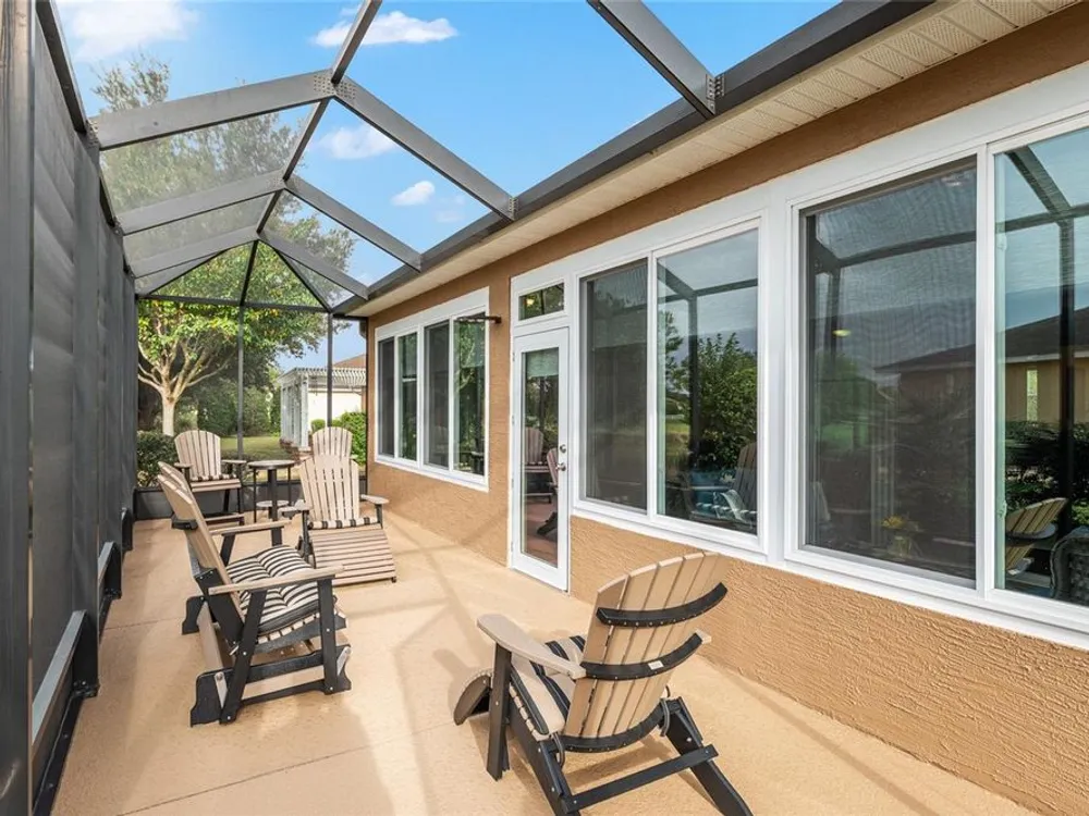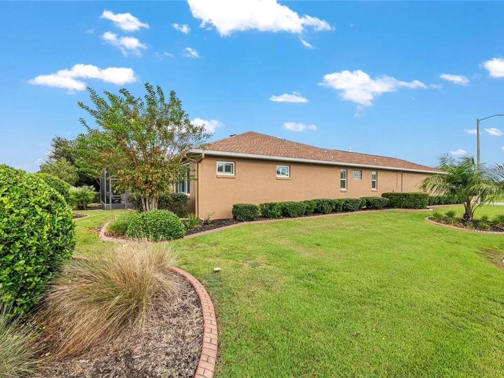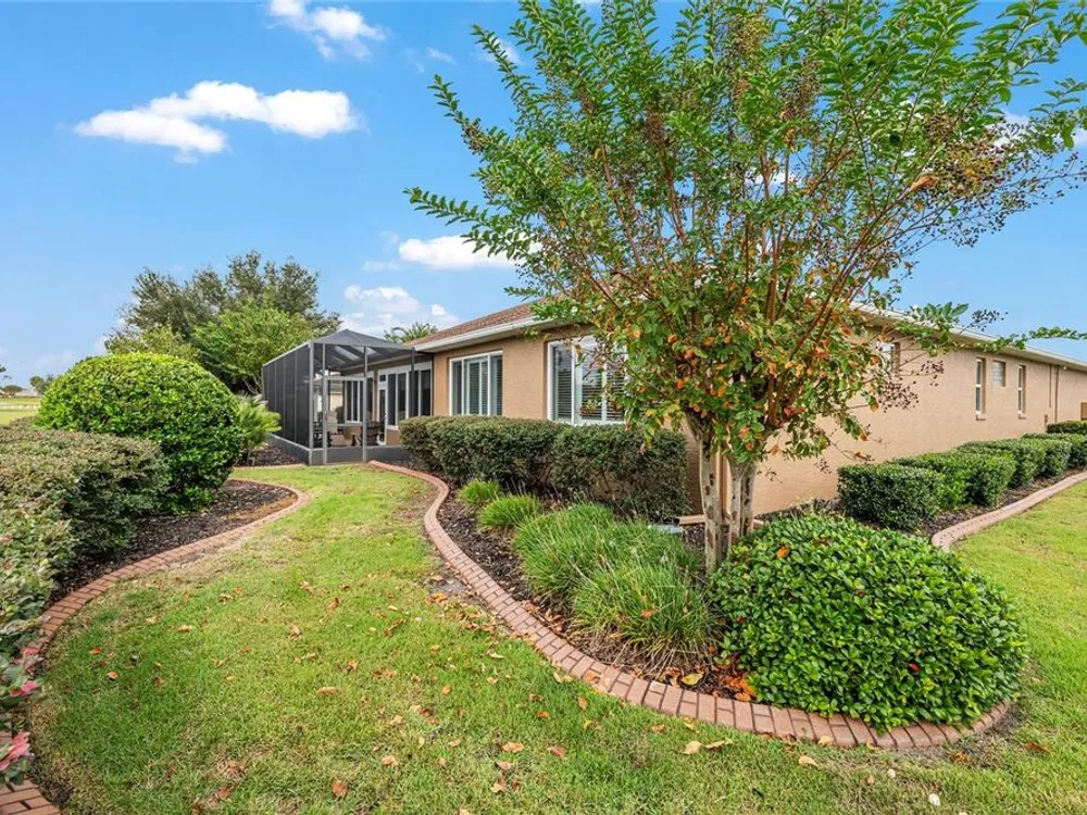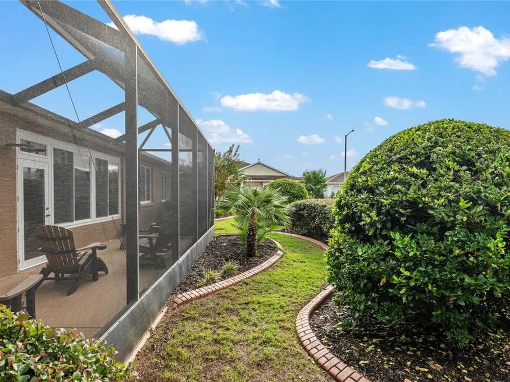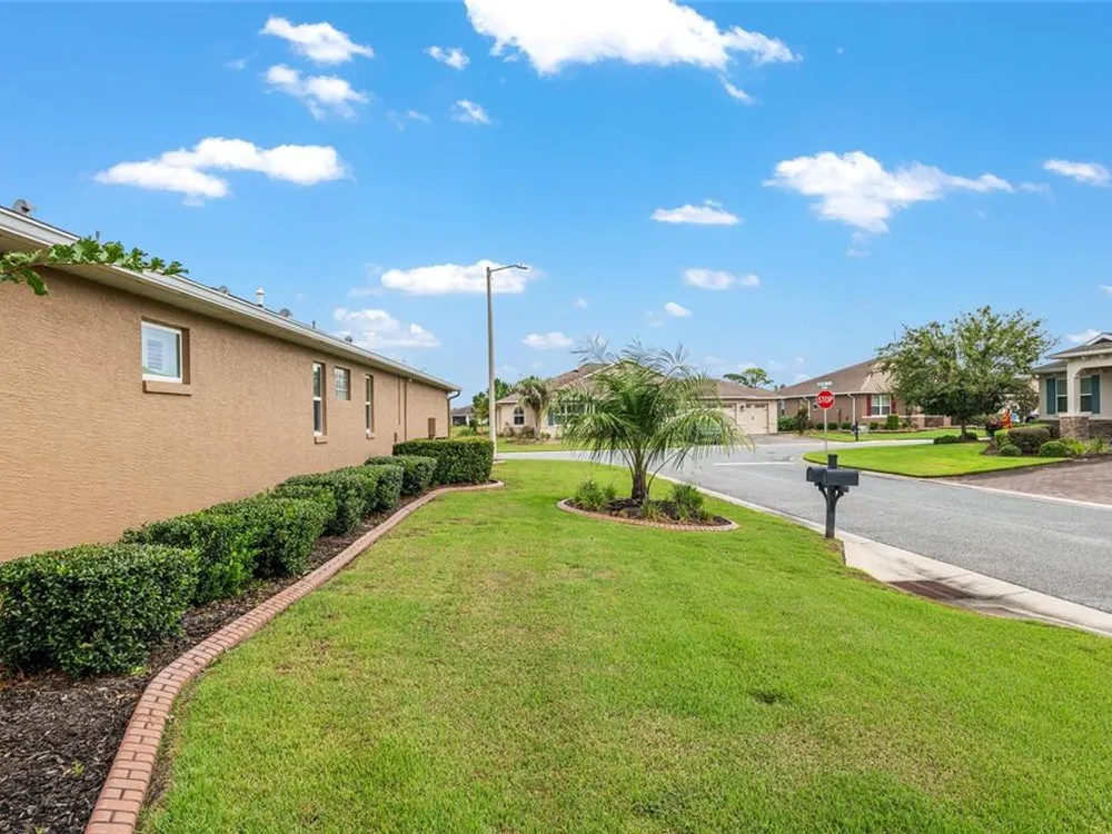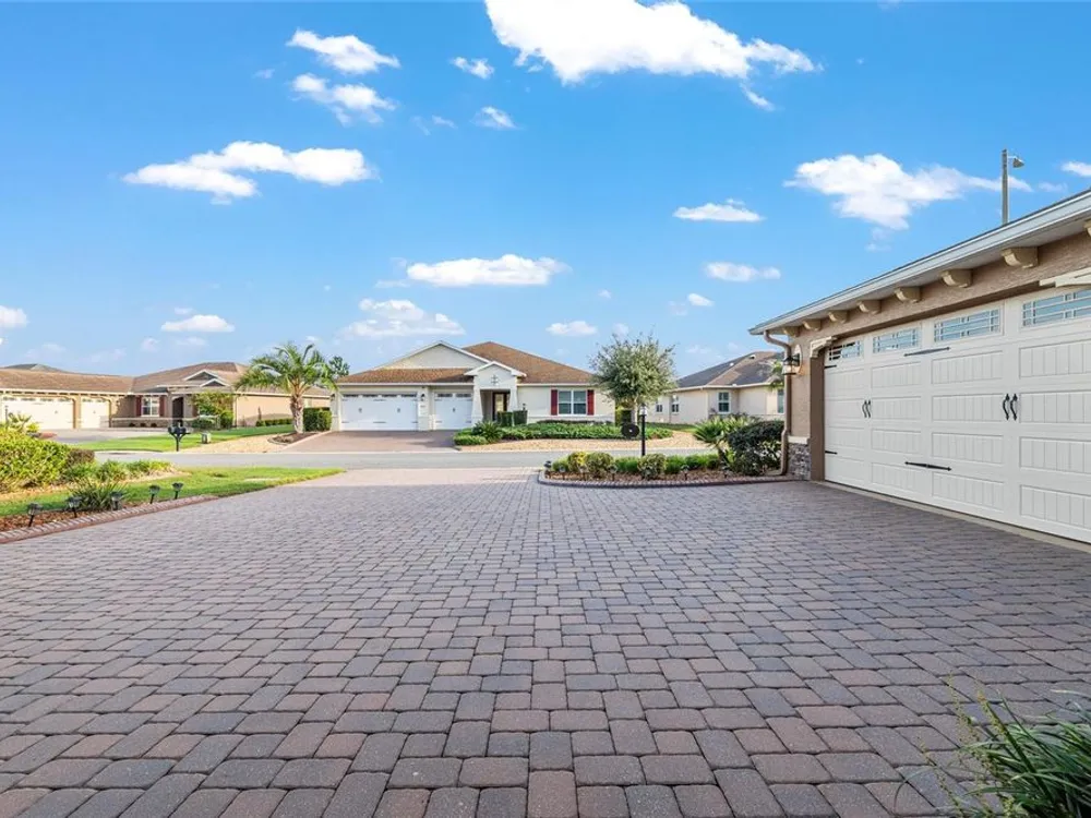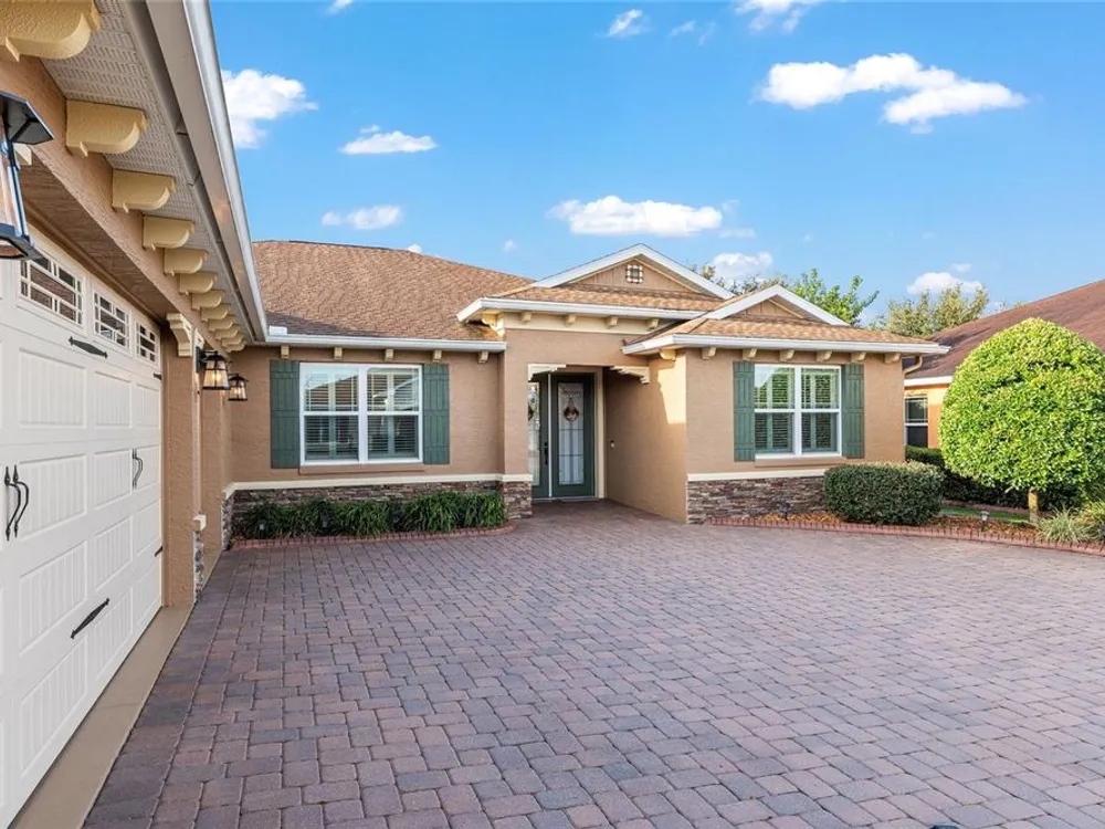 Impeccable and immaculate Northampton home in the Stonebridge community of Candler hills, On Top of the World. This beautiful, spotless, open concept, home with 3 bedrooms, 2 bathrooms, plus flex/den, and library, three season room and spacious 3-car garage sits on a corner oversized lot and is loaded with over $200,000 in upgrades. Every feature has been carefully thought of, crown molding throughout a monumental tray ceiling extending from the living room to the beautiful gourmet kitchen; the kitchen is a chef’s dream, featuring a built-in oven and microwave, a 5-burner cooktop with a sleek hood, staggered cupboards with crown molding soft close cabinets with pull out drawers, spice racks, an oversize island, perfect for meal prepping, entertaining or enjoying your meals. The floors are wood-look like staggered tile throughout. Other features include laundry room cabinets and utility sink, cornice and panel shades in great room, custom pull down shades for the three season room, plantation shutters on all windows, pendant lights in the kitchen, new solar attic fan, garage custom storage cabinets, LVP in the three season room, gutters, beautiful landscaping, curbing, enclosed lanai, Generac generator. The exterior of the home was recently painted and the home is complimented with a long, pavered driveway. This home is perfect for the most discerning buyers. You will not be disappointed. If you've been looking for the perfect home and can't seem to find anything that meets your high standards, don't miss this rare opportunity. No CDD, lower HOA fees, and you own the land in this area. Smoke and pet free home. On Top of the World is Ocala's premier, gated, active 55+ community, loaded with amenities and includes golf cart access to three shopping centers.