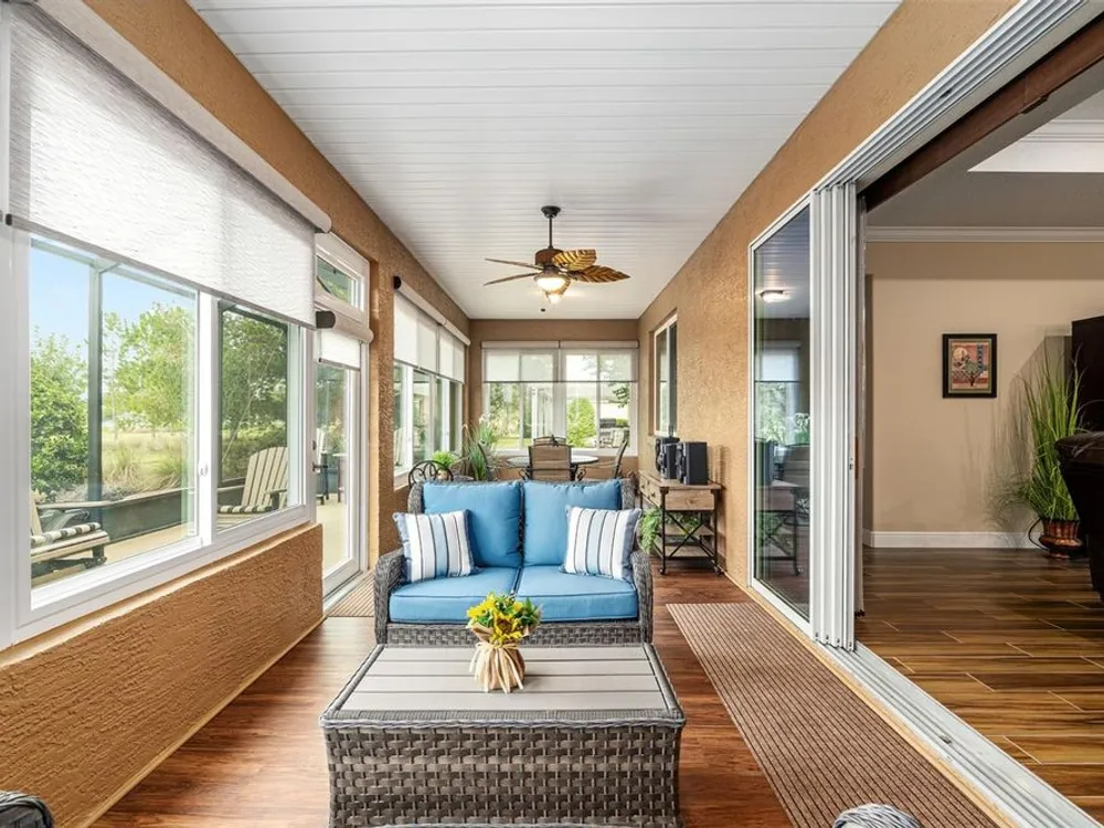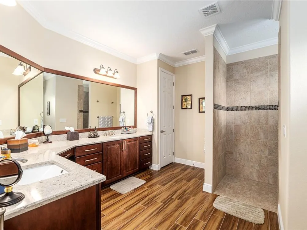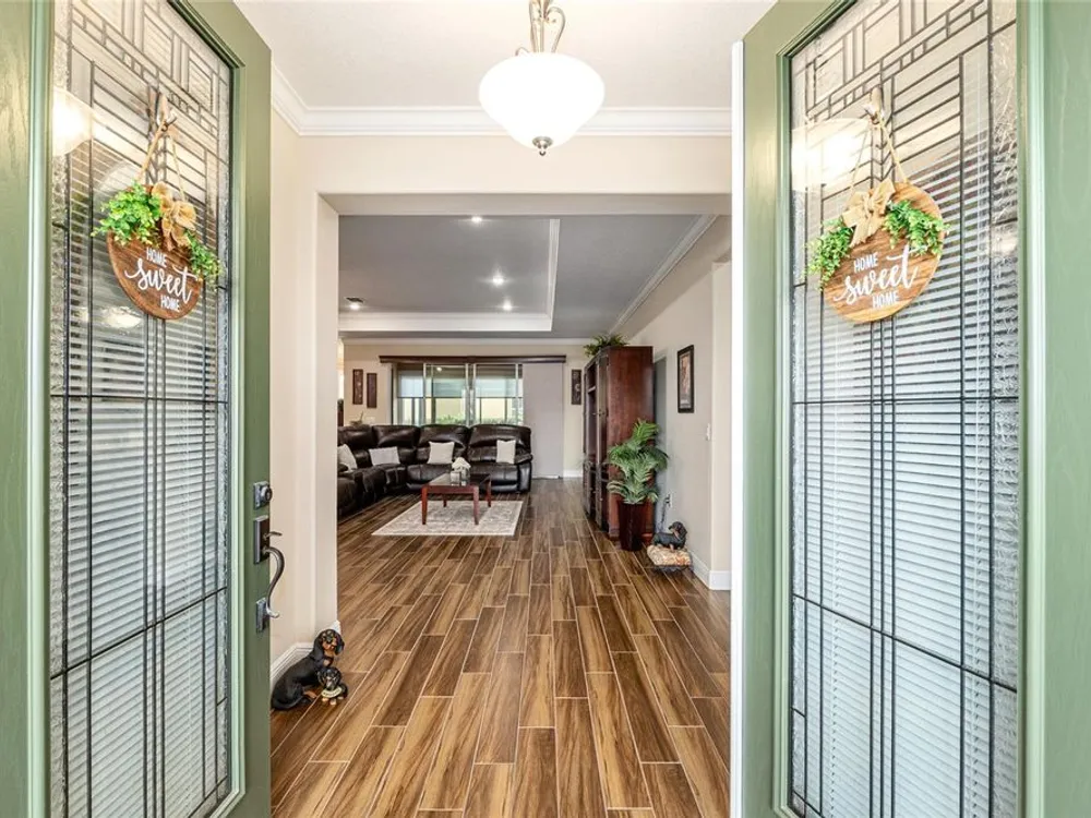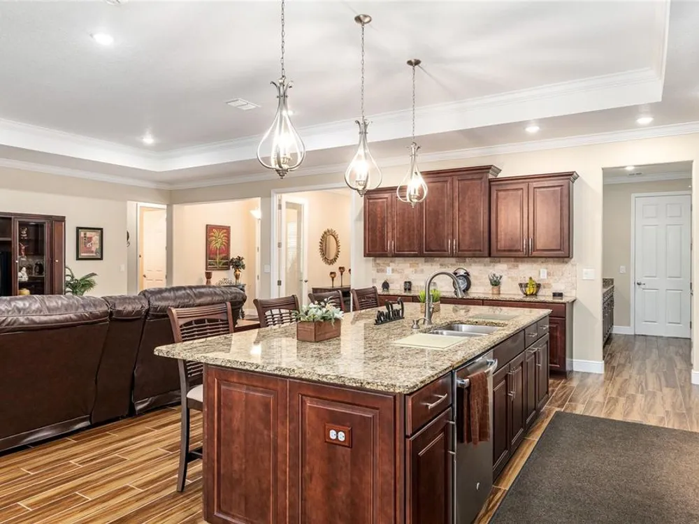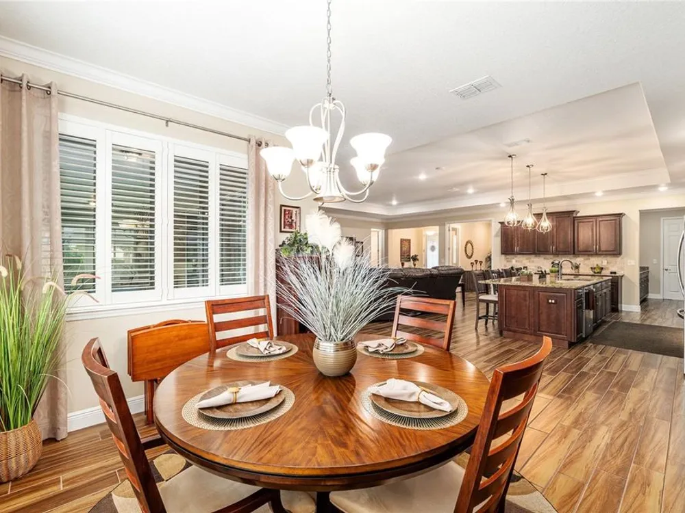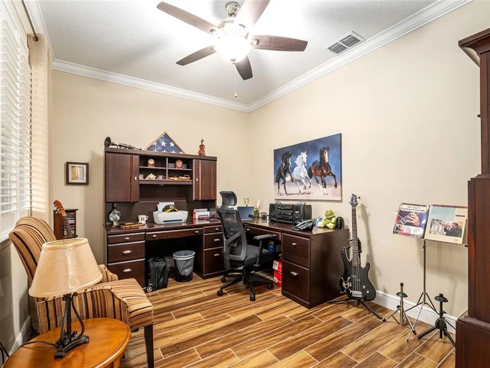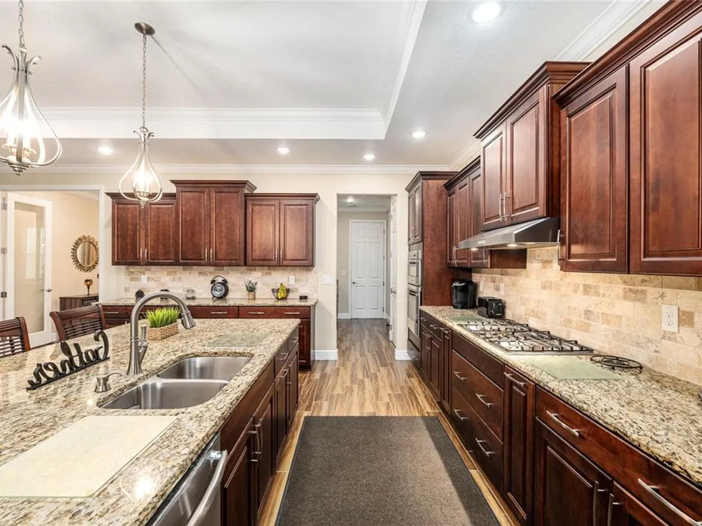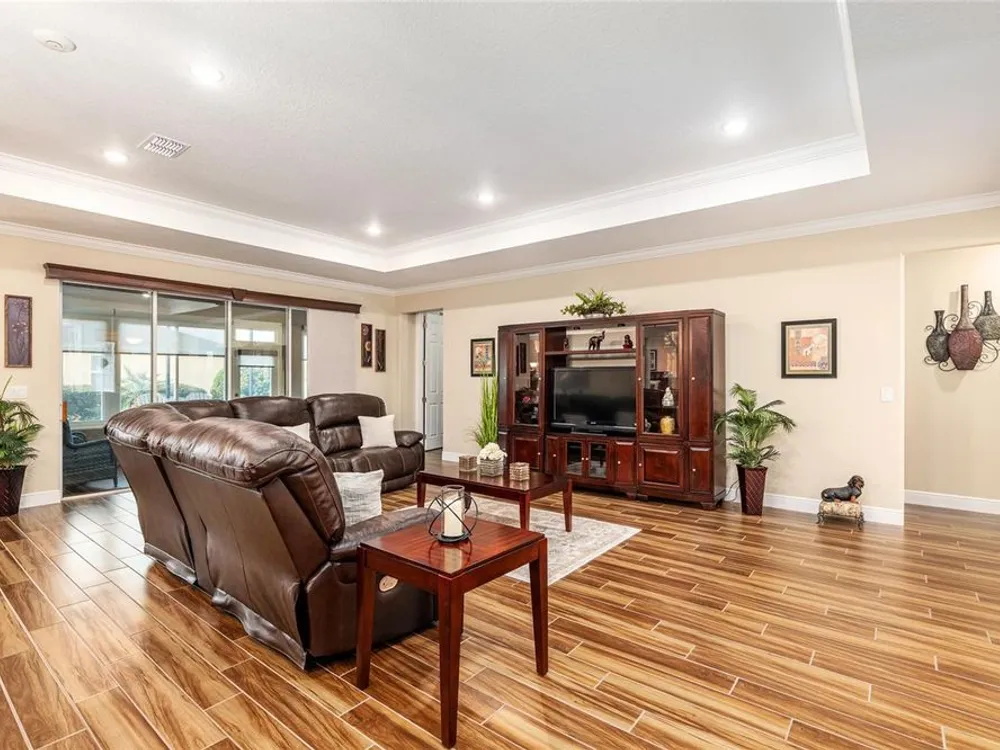 Impeccable and immaculate Northampton home in the Stonebridge community of Candler hills, On Top of the World. This beautiful, spotless, open concept, home with 3 bedrooms, 2 bathrooms, plus flex/den, and library, three season room and spacious 3-car garage sits on a corner oversized lot and is loaded with over $200,000 in upgrades. Every feature has been carefully thought of, crown molding throughout a monumental tray ceiling extending from the living room to the beautiful gourmet kitchen; the kitchen is a chef’s dream, featuring a built-in oven and microwave, a 5-burner cooktop with a sleek hood, staggered cupboards with crown molding soft close cabinets with pull out drawers, spice racks, an oversize island, perfect for meal prepping, entertaining or enjoying your meals. The floors are wood-look like staggered tile throughout. Other features include laundry room cabinets and utility sink, cornice and panel shades in great room, custom pull down shades for the three season room, plantation shutters on all windows, pendant lights in the kitchen, new solar attic fan, garage custom storage cabinets, LVP in the three season room, gutters, beautiful landscaping, curbing, enclosed lanai, Generac generator. The exterior of the home was recently painted and the home is complimented with a long, pavered driveway. This home is perfect for the most discerning buyers. You will not be disappointed. If you've been looking for the perfect home and can't seem to find anything that meets your high standards, don't miss this rare opportunity. No CDD, lower HOA fees, and you own the land in this area. Smoke and pet free home. On Top of the World is Ocala's premier, gated, active 55+ community, loaded with amenities and includes golf cart access to three shopping centers.