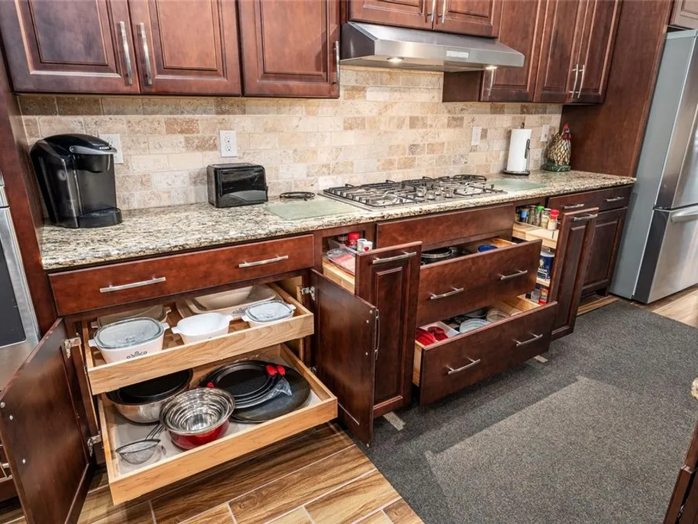 - Built-In Oven, Cooktop, Dishwasher, Dryer, Microwave, Refrigerator, Washer