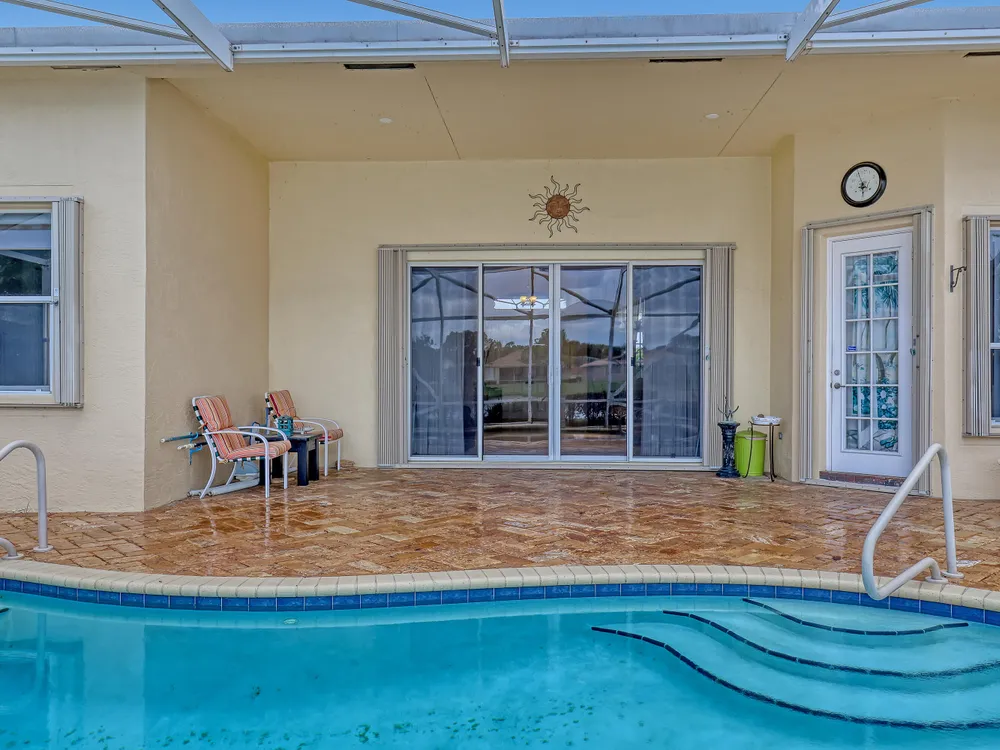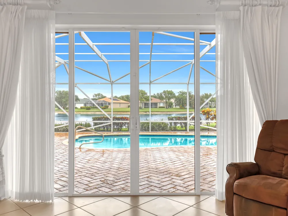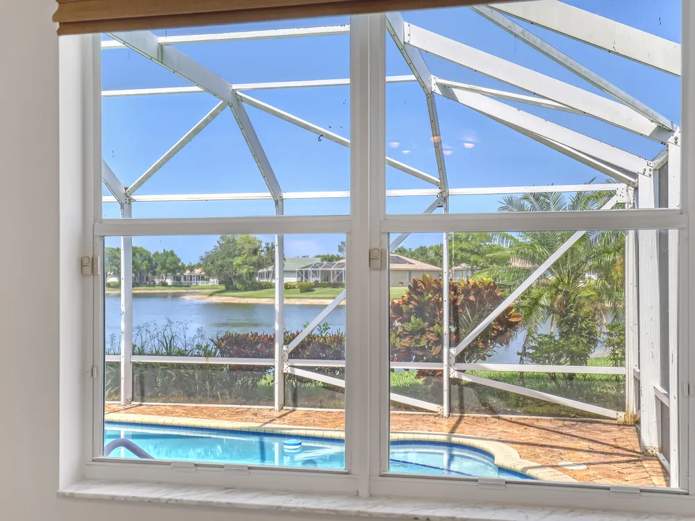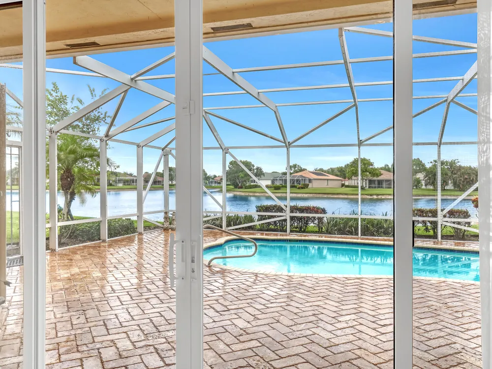 HOA PAID THRU END OF 2025! STUNNING TURNKEY LAKEFRONT POOL HOME IN THE ESTATES OF BAYWINDS features a split floor plan with a primary wing offering a 10x10 sitting area & 2 custom closets, a 2nd suite w/ cabana bath, 3rd BR, plus a 3rd bath w/ custom walk-in tub. Oversized side-entry garage, freshly washed windows & pavers. Screened patio has a covered area & cage over pool w/ peaceful lake views. Exterior highlights include screened front porch, Rolladen shutters in front & Accordions throughout. Inside, foyer opens to pool & lake, formal dining, spacious living & sliders. Open kitchen w/ abundant storage, bar, dining area & patio access. Lawn, Cable & Alarm included. Baywinds offers resort clubhouse, pools, fitness, tennis & activities!