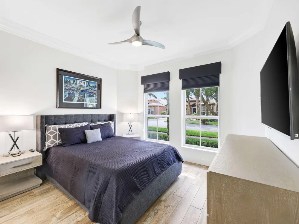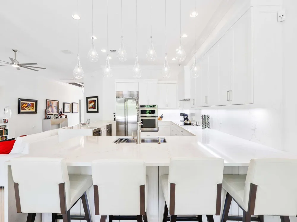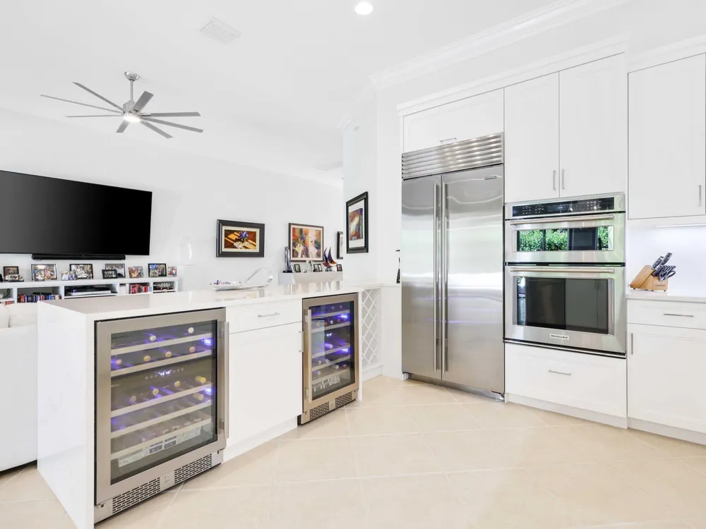 Completely reimagined home in Buena Vida! A new brick-paved drive & double doors welcome you to light-filled interiors and an open layout. The showcase kitchen offers quartz waterfall counters, Sub-Zero refrigeration, dual wine coolers & induction cooktop, flowing into spacious dining & living areas with private backyard views. The luxurious Primary Suite boasts 2 oversized walk-ins & spa bath with soaking tub & large glass shower. Extras include office/library, Control4 smart system, new AC, tankless WH, epoxy garage, whole-house filtration, electric shades, turf, fresh paint, crown molding, new lighting, fencing & multi-camera security. 55+ community w fantastic amenities: fitness, tennis, pickleball, pools, cafe & vibrant social life! True South Florida Resort Style Living at its Best!