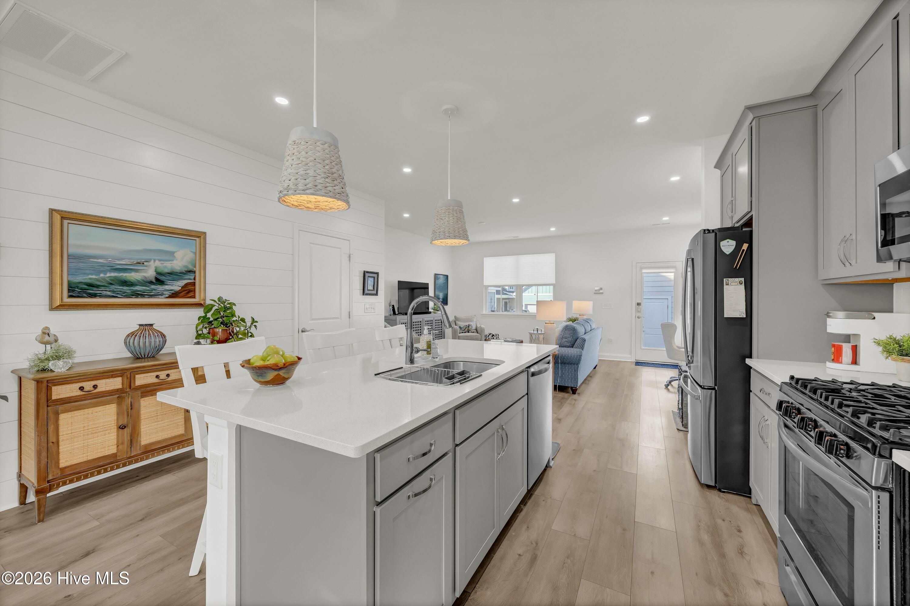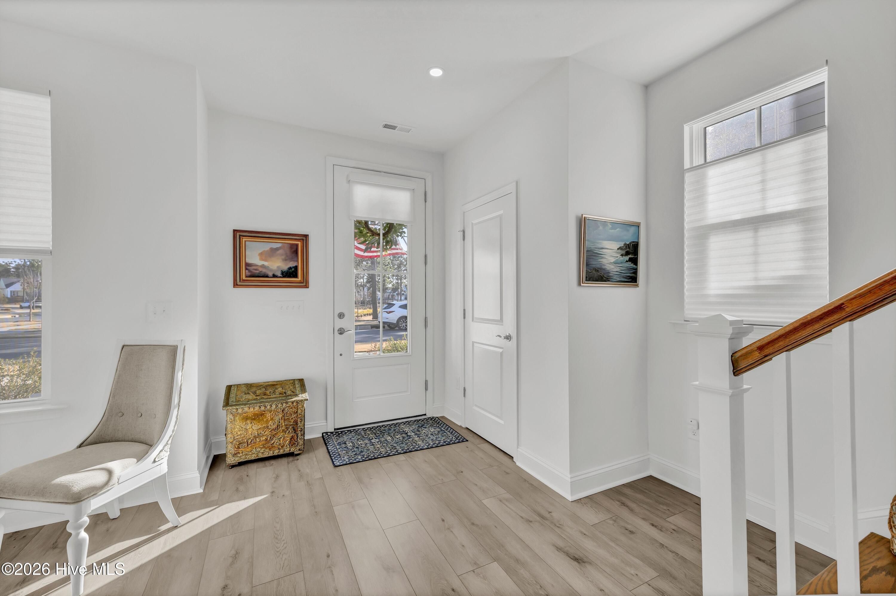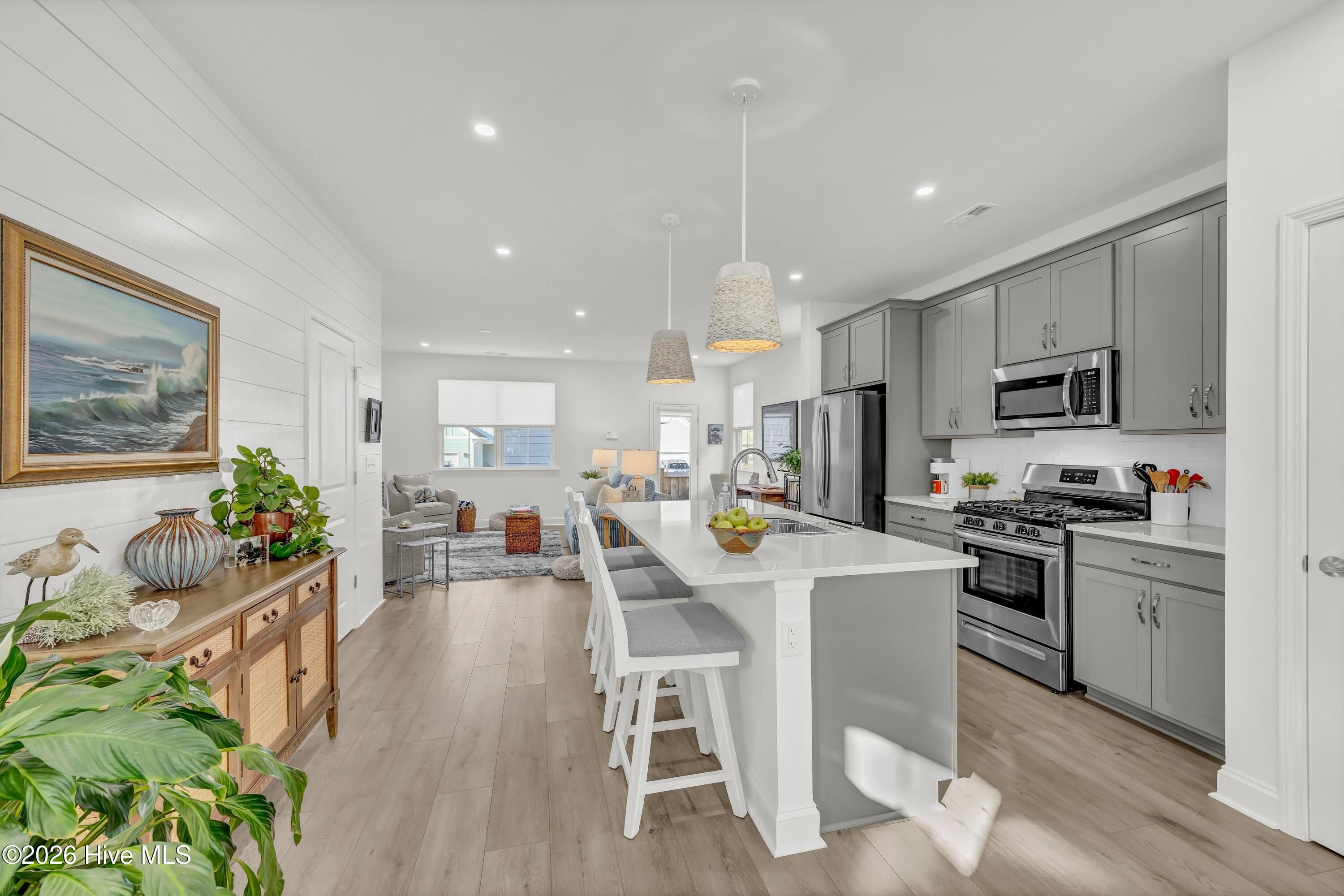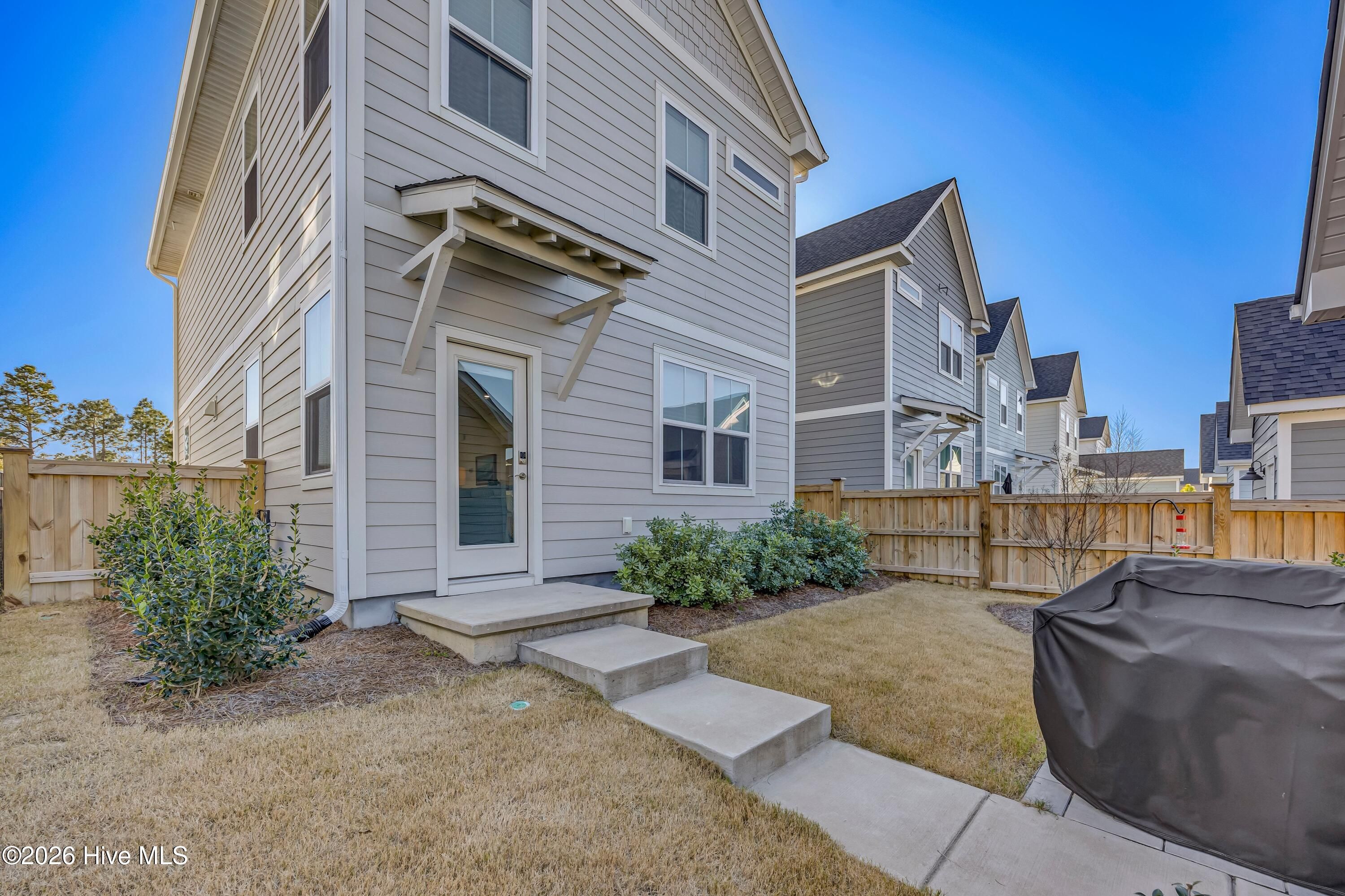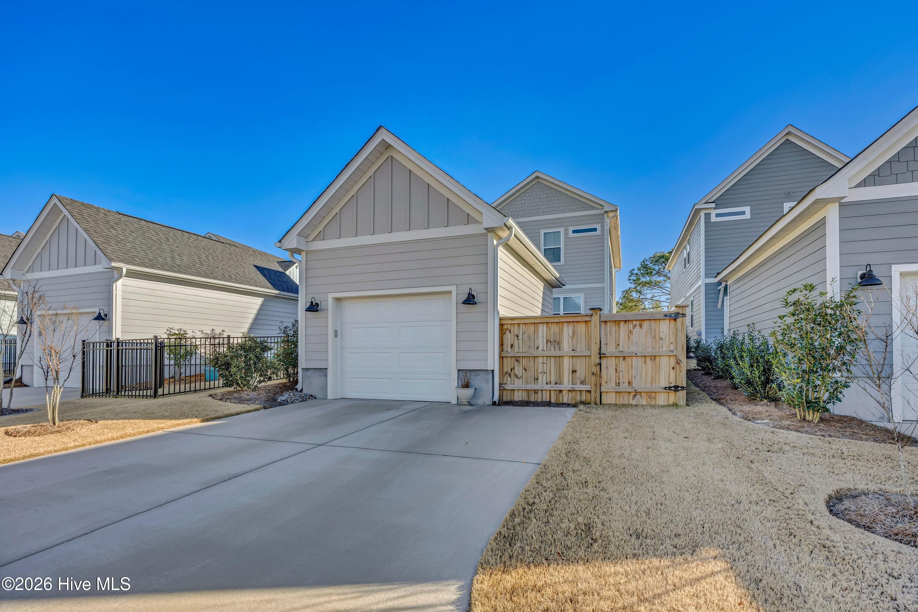 Stunning Haywood Model in RiverLights is ready for you to move right in. This beautifully upgraded Haywood model offers 3 bedrooms and 2.5 baths, and a desireable open floor plan designed for modern living. The spacious kitchen features a large center island, stainless steel appliances, tile backsplash, walk-in pantry, and upgraded luxury vinyl plank flooring - perfect for everyday living and entertaining. The cozy living area is enhanced by a custom shiplap accent wall and flows seamlessly into the outdoor space, where you'll find a fenced-in yard and patio ideal for grilling. A detached garage includes added shelving for extra storage, while gutters and window blinds are already in place. Additional highlights include a refrigerator, washer, dryer, wood-accented stairway and premium LVP flooring throughout the main living areas. Situated on a premium lot directly across from the natural space and the community dog park, this home offers both privacy and convenience. Best of all, it's located outside the flood zone and is truly move-in ready. Enjoy upscale living in RiverLights with exceptional amenities including access to pools, clubhouse, fitness center, firepits, nature trails, Marina Village, shopping, restaurants and more. With all the upgrades already completed, this home is better than new - what more could you ask for?