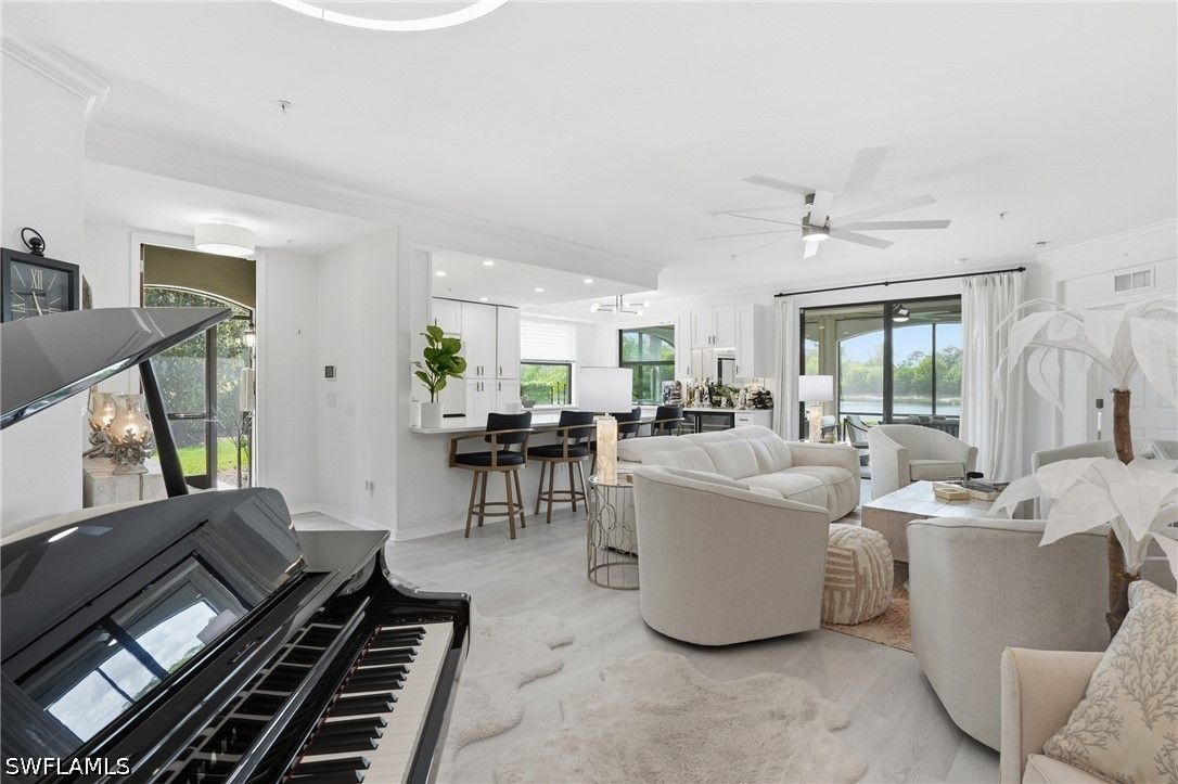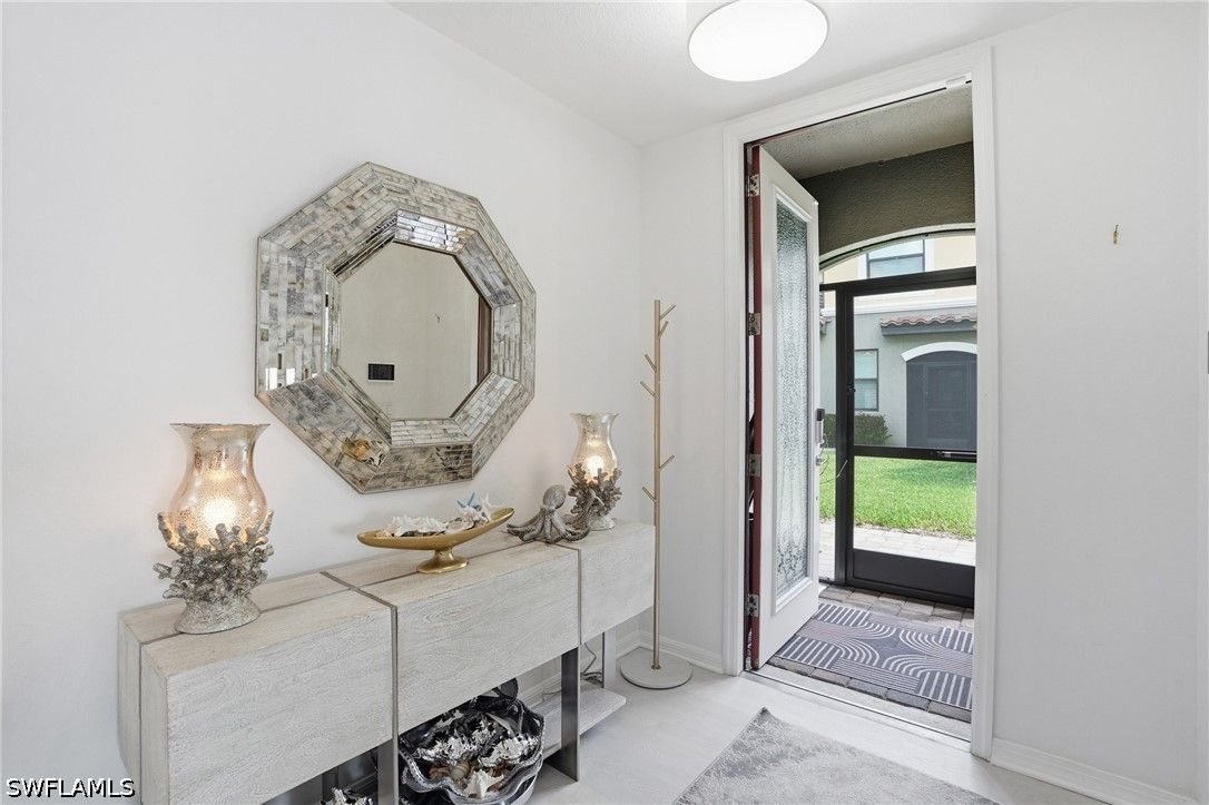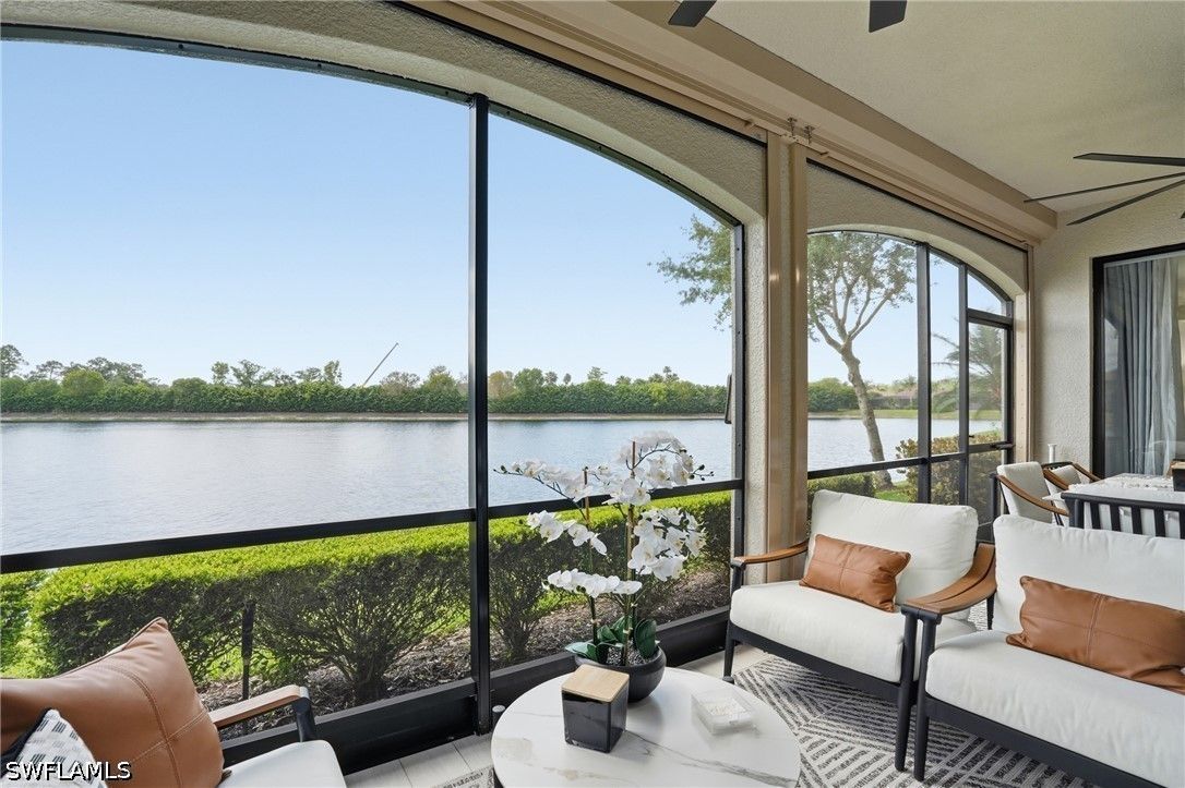 GOLF MEMBERSHIP INCLUDED! Lock it and leave it! This coach home lives like a single-family residence while offering the ease of condo living. The association covers key expenses including insurance, cable, and water—plus no roof or landscaping to worry about—making it perfect for seasonal or full-time enjoyment. Completely renovated, this beautifully updated 3-bedroom, 2-bath coach home in Treviso Bay offers the perfect blend of luxury, location, and lifestyle. Featuring a full golf membership, this residence is ideal for buyers seeking both comfort and access to world-class amenities. Ideally situated on a prime lot directly across from the community pool, convenience is unmatched—just steps away from relaxation and socializing. Inside, the home showcases high-end finishes throughout, with a modern, open-concept design, upgraded flooring, a designer kitchen, and thoughtfully renovated bathrooms. Step out onto the private lanai and take in serene lake views, creating the perfect backdrop for morning coffee or evening entertaining.With its rare combination of a premium location, stunning updates, and golf privileges, this coach home presents an exceptional opportunity to enjoy the best of Southwest Florida living.