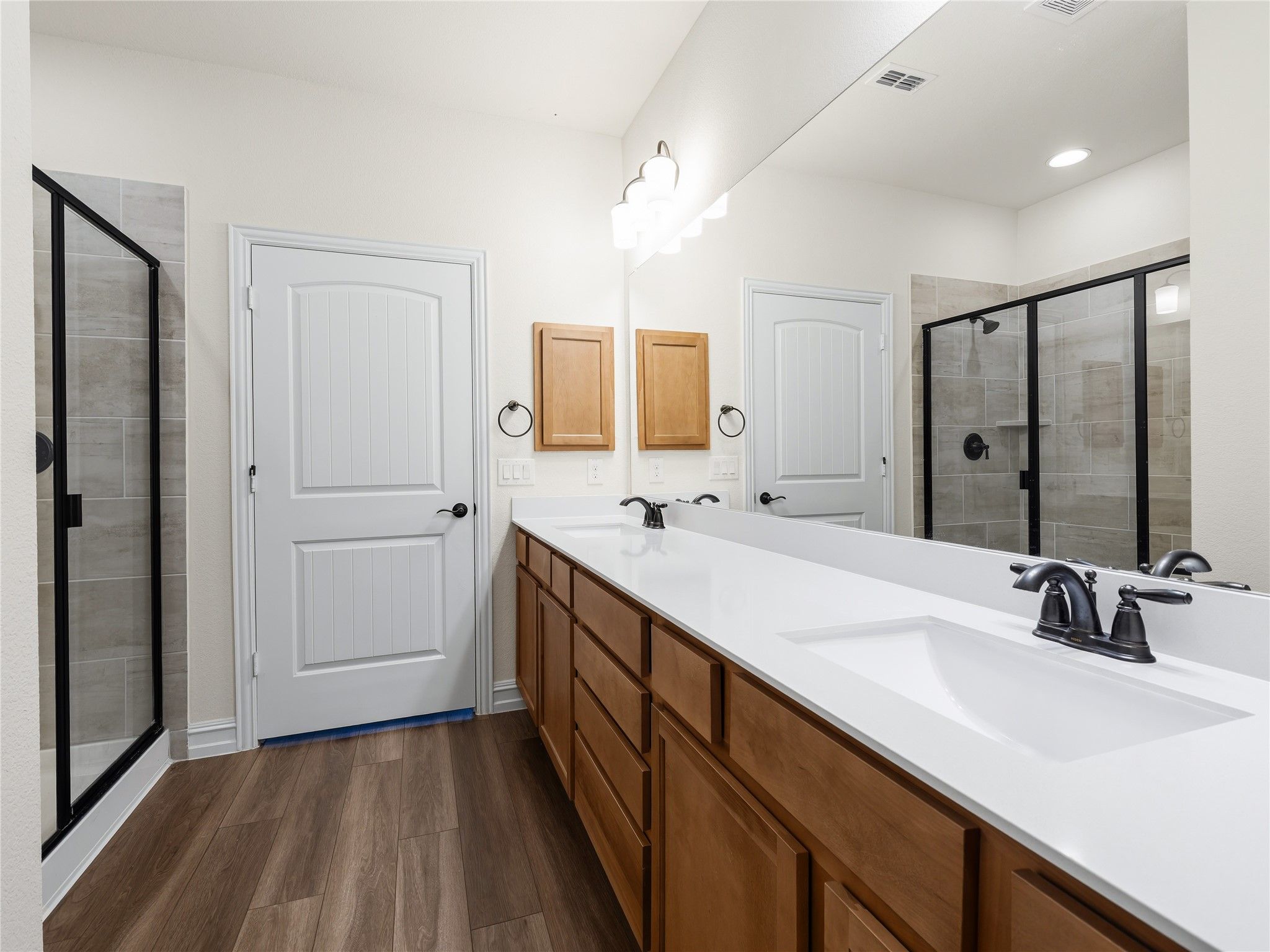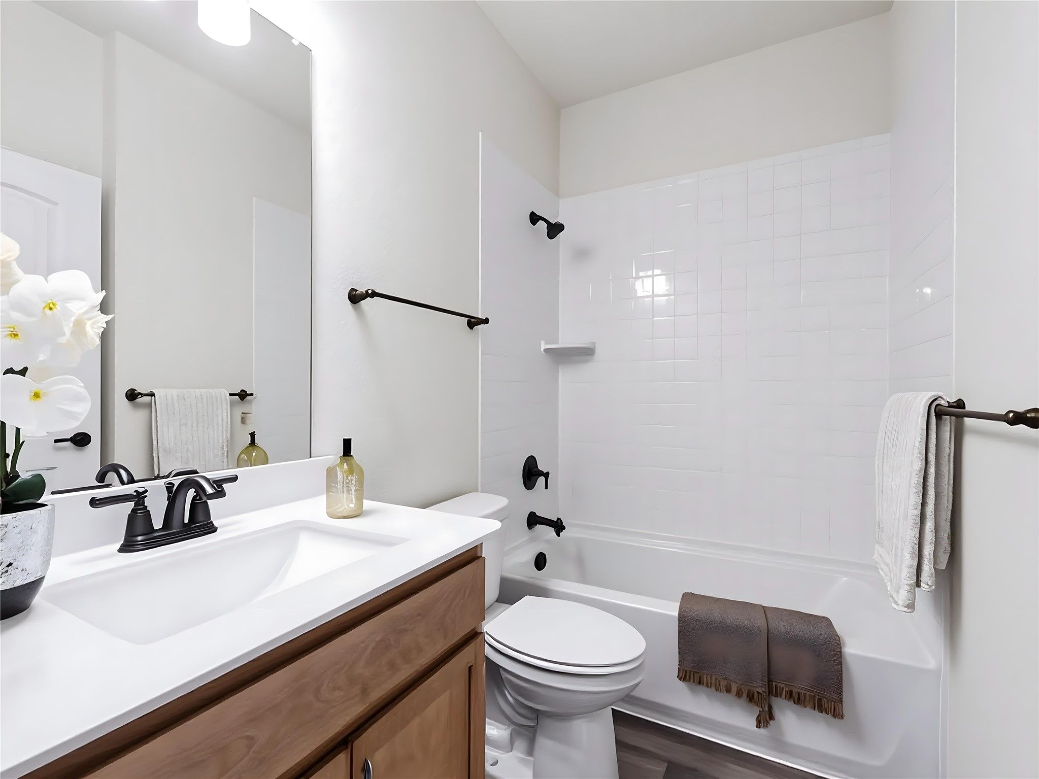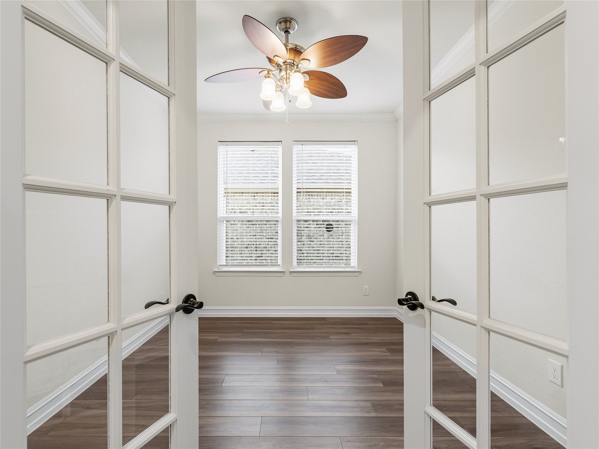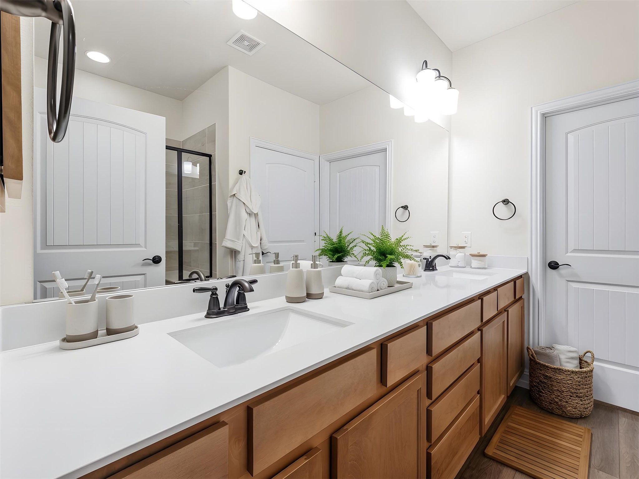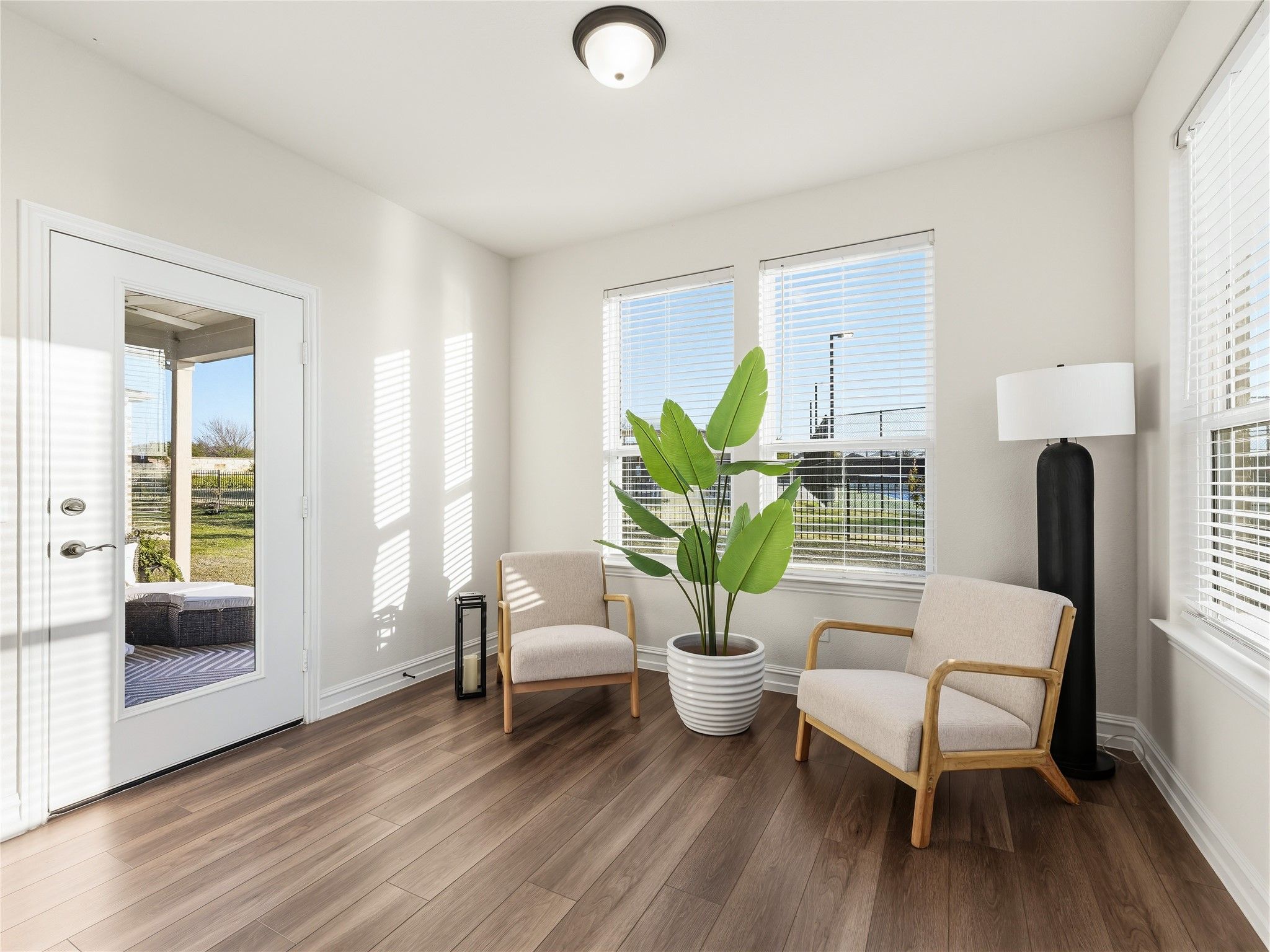 FEELS LIKE NEW CONSTRUCTION + IMMACULATELY MAINTAINED + SUNROOM & EXTRA STORAGE without the wait! This low-maintenance, TOP-SELLING Abbeyville, by Pulte Homes, offers two bedrooms, a private study, & sunroom, living like a 3-bedroom, already done right and move-in ready. Step inside a light-filled, open-concept layout defined by beautiful arches and quality craftsmanship, designed for both everyday comfort & effortless living. A chef-inspired kitchen anchors the space with an oversized island, abundant cabinetry, & seamless flow. The oversized laundry room, complete with integrated bonus storage room, delivers a rare level of efficiency and intentional design. The spacious primary suite offers a private retreat with an ensuite bath and walk-in closet. Split-bedroom layout provides added privacy for guests. A dedicated study creates the ideal space for work or hobbies, & the sunroom extends the living area seamlessly, perfect for morning coffee, reading and quiet moments. Experience front-row living as you step onto the covered patio overlooking the amenity center, pickleball and tennis courts. From vibrant community energy to quiet golden-hour sunsets, your patio delivers both. Evenings settle into a warm, golden glow—an inviting retreat for quiet introspection or effortless connection, offering a tranquil balance of energy and calm. Located in the highly desirable, resort-style community of Del Webb at Union Park 55+, residents enjoy a lifestyle centered around connection, wellness, and ease, with access to a clubhouse, fitness center, pools, walking trails, pickleball, tennis, and a full calendar of social activities. Start living the lifestyle others are still waiting to build. MUST EXPERIENCE! Property serviced by Mustang Special Utility District (SUD); Measurements provided by seller, approximate, and may be rounded for MLS; floorplan, if any, is illustrative only and not to scale. Not intended for appraisal or valuation.