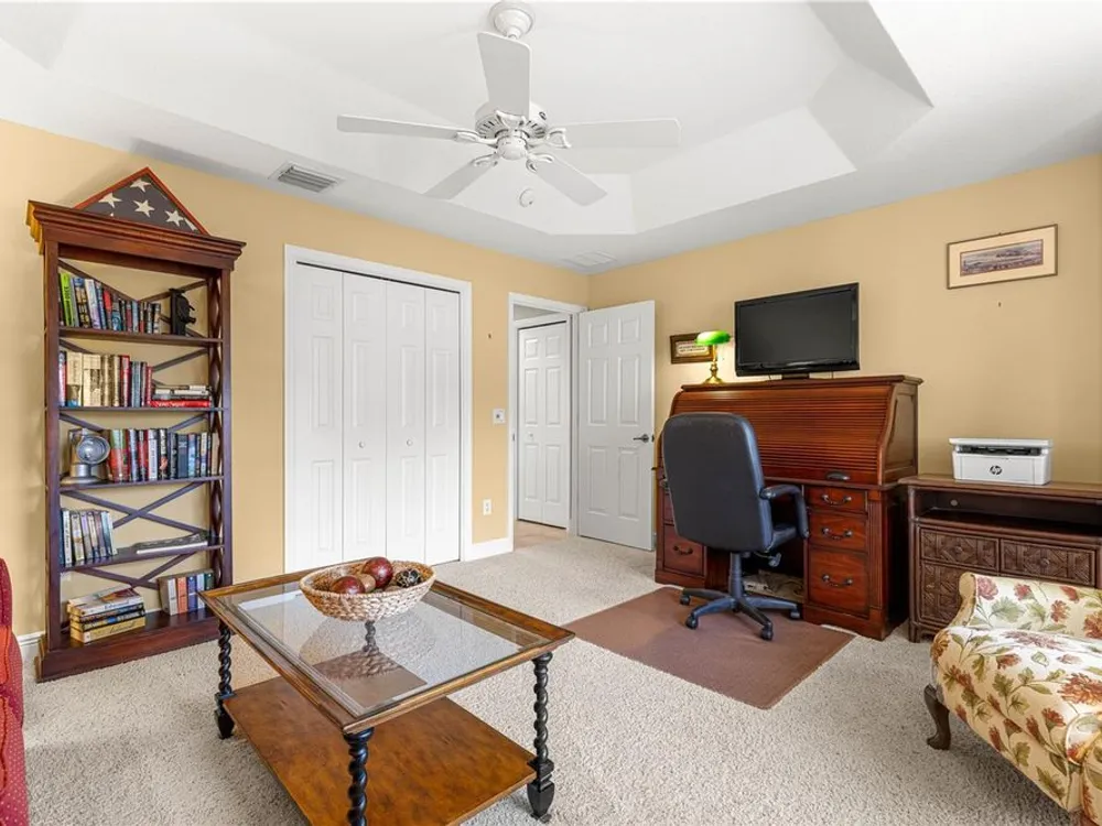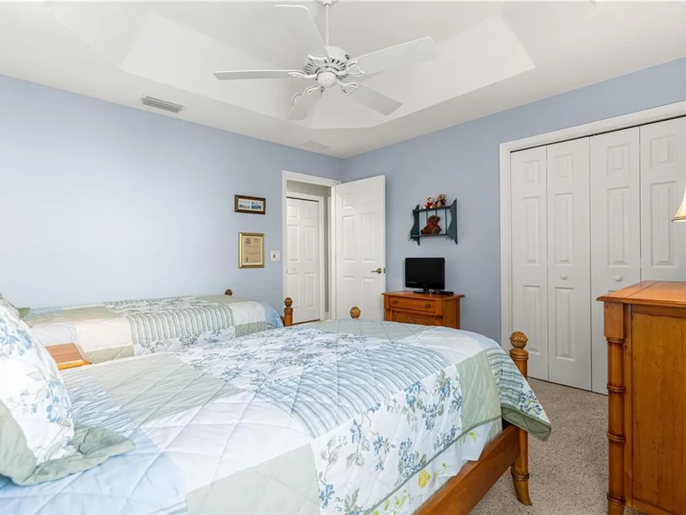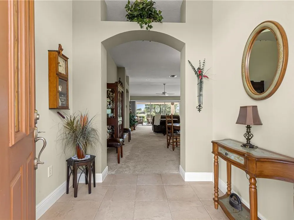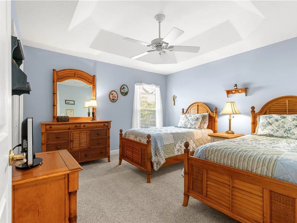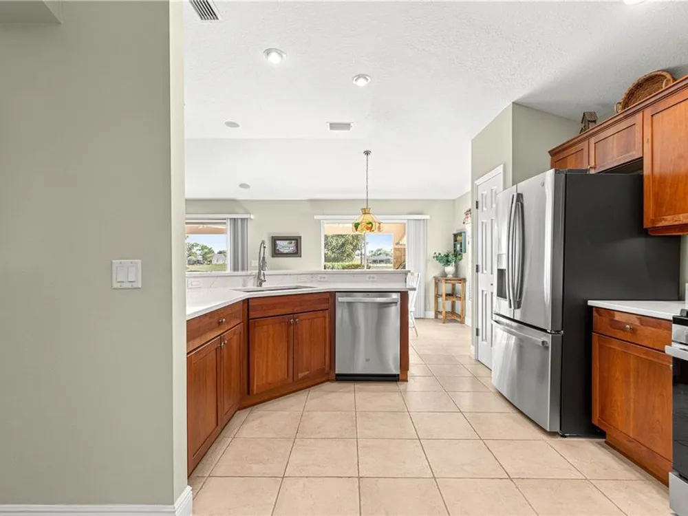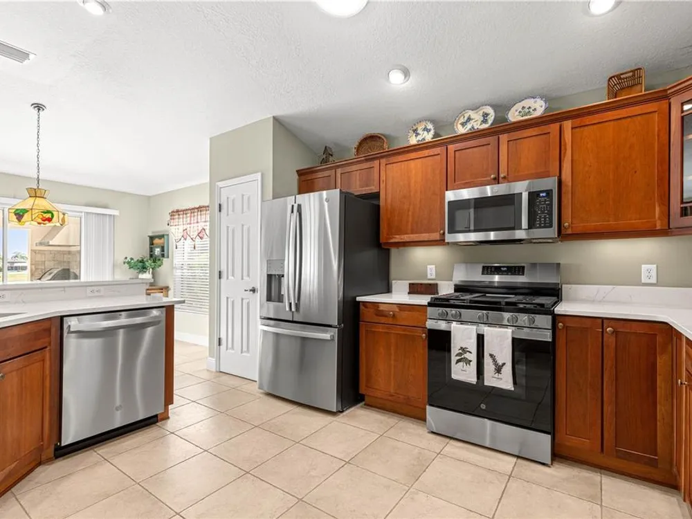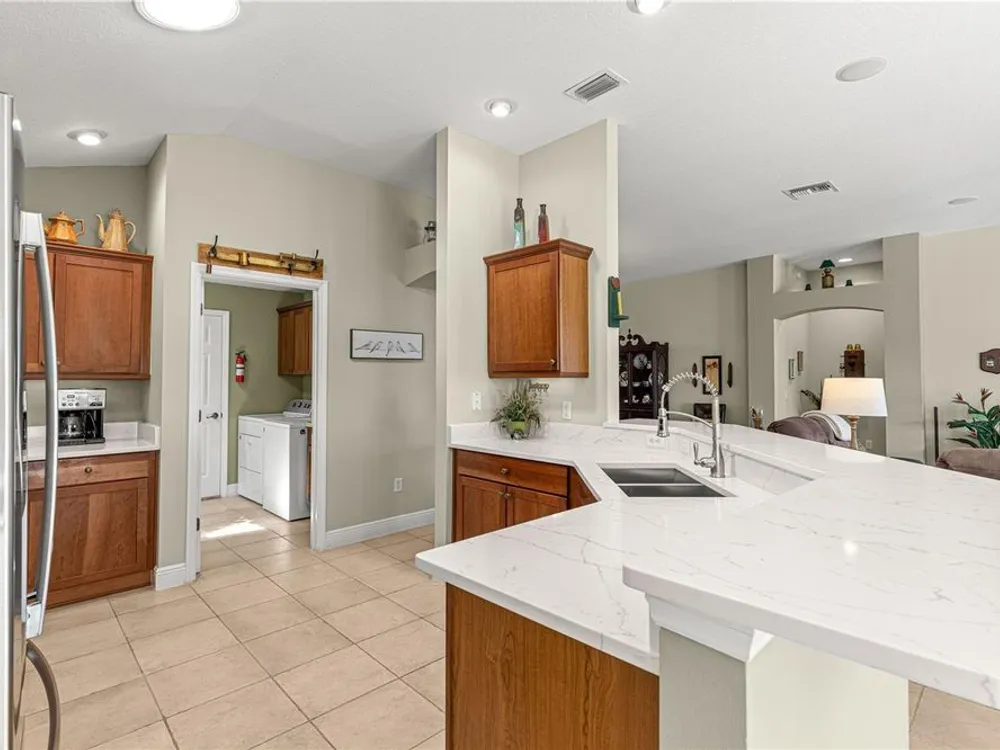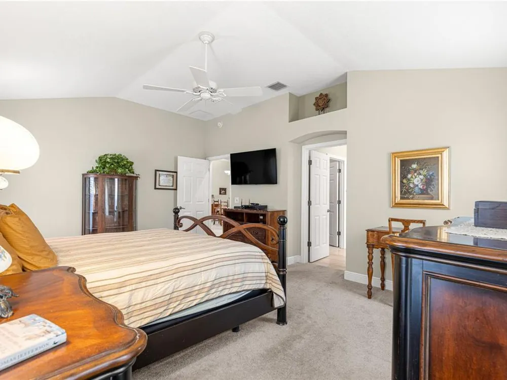 No Bond. This house is located just off of Canal street which gives you a direct short drive to Sumter Landing by golf cart or by car. This gorgeous Lantana was barely lived in and ready for it's new owner. The Bacall Golf Course that is behind this home has just been redone and the first tee box is straight out from your lanai. As you drive up to this beautiful home you will notice the extended garage with extended golf cart garage, upgraded landscaping that is all stone, the gorgeous paver driveway, and the added power screens on the garage doors. As you walk to the front door again you will notice the manicured landscaping and as you enter the front door you will be able to feel the openness of the home and all the great space you have to entertain a great group of friends or family. The very large and open concept allows you to be part of the conversation no matter what area of the great room that you are in. The kitchen is a cooks dream with the brand new quartz counters and the brand new kitchen appliances and the Gas Stove would make any cook want to stay in the kitchen to make that very special dish. The laundry room directly off the kitchen has plenty of space to fold and iron with a built in ironing board and also plenty of storage. The split floor plan allows your guests to have privacy and quietness from the rest of the home. The two full spare bedrooms and full bathroom with upgraded Quartz gives your guests the luxury of feeling like being on vacation with great friends. As you enter the master bedroom you will notice the large space for all of your furniture in addition to the walk in closet. The master bathroom has the quartz upgrade a beautiful walk in shower and a great bathtub for soaking and forgetting about your troubles. The Lanai has been extended freshly painted, an outdoor Kitchen added, and a lovely swim spa for watching the best sun set in The Villages. The roof was replaced 8/2025 The A/C was replaced 2019 and the Hot water heater was replaced 2018. Don't wait houses like this go fast. Call today for a private showing