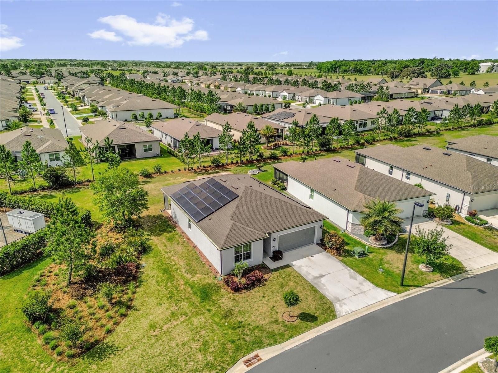 Experience elevated active adult living in one of Ocala’s most sought-after resort-style communities—Stone Creek by Del Webb. This beautifully maintained 2020-built residence is ideally positioned on a premium corner lot, offering 3 bedrooms, 2 bathrooms, and 1,662 square feet of thoughtfully designed living space that blends comfort, efficiency, and modern convenience. From the moment you enter, you’ll appreciate the open-concept layout, abundant natural light, and move-in ready condition that makes this home truly “better than new.” The spacious kitchen flows seamlessly into the main living areas, creating the perfect setting for both everyday living and entertaining. One of the most impressive features of this home is its advanced energy system, including 42 solar panels, two Tesla Powerwall batteries, and an electric vehicle charging station, offering energy efficiency, backup power, and long-term savings. The solar system, Tesla batteries, and EV charger are assumable. Situated on a desirable corner lot, this property provides added privacy and outdoor space—an increasingly valued feature within the community. Living in Stone Creek means enjoying a true resort-style lifestyle with access to world-class amenities, including a championship 18-hole golf course, the 60,000 sq ft Reflection Bay clubhouse, indoor and outdoor pools, state-of-the-art fitness center, spa services, pickleball and tennis courts, and over 100 clubs and social activities designed for an active and connected lifestyle. The gated community offers security, convenience, and a vibrant environment tailored for 55+ living, all within close proximity to shopping, dining, medical facilities, and major roadways. Whether you’re looking to simplify, relocate, or fully embrace the Florida lifestyle, this home offers a unique combination of modern construction, energy efficiency, and resort-style living—all in one exceptional opportunity.