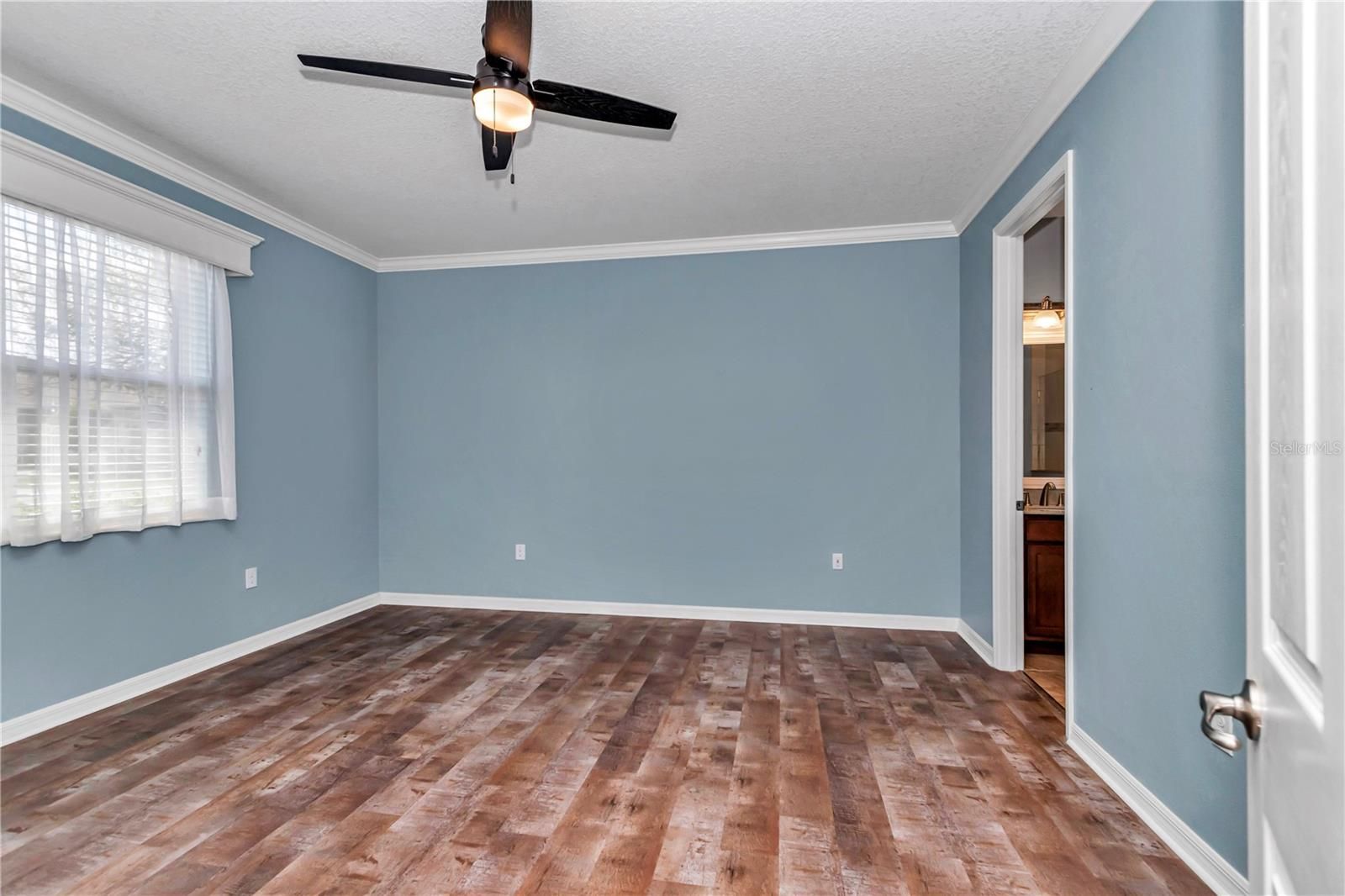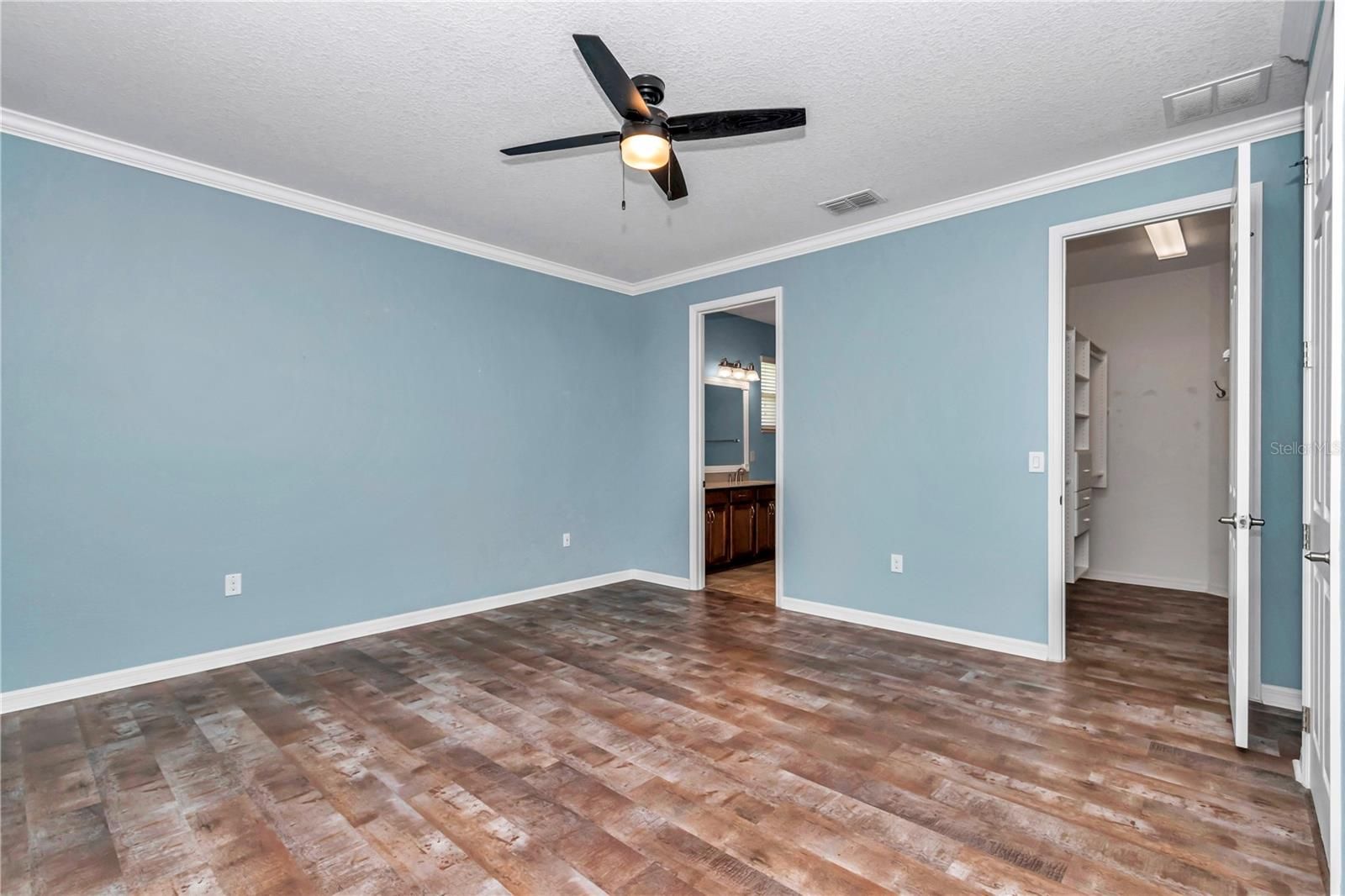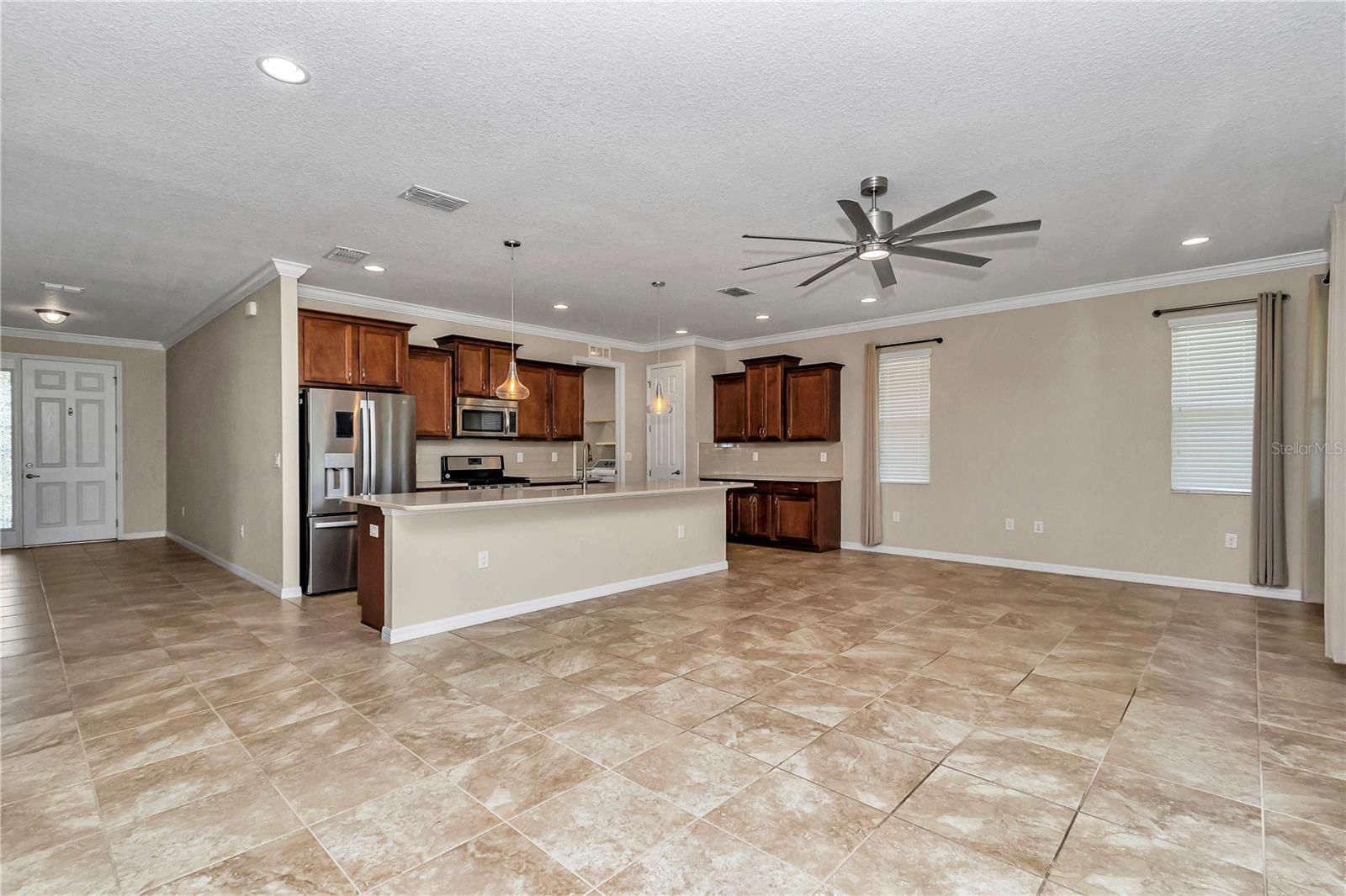 - Ceiling Fan(s), Eat-in Kitchen, High Ceilings, Kitchen/Family Room Combo, Living/Dining Room, Open Floorplan, Main Level Primary, Split Bedrooms, Stone Counters, Thermostat, Tray Ceiling(s), Walk-In Closet(s), Window Treatments