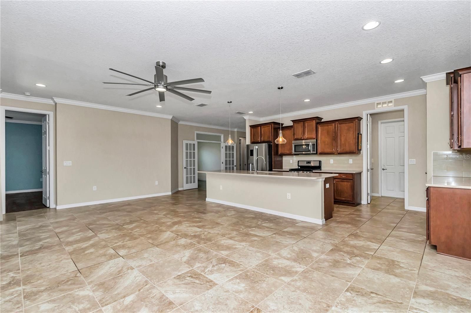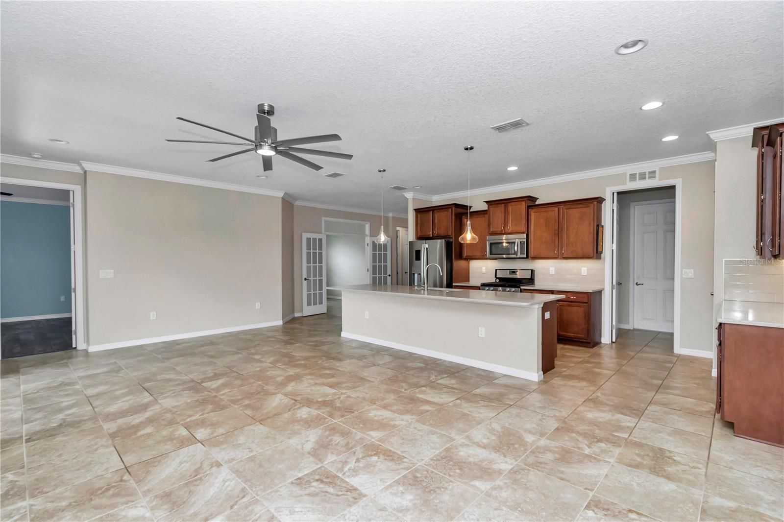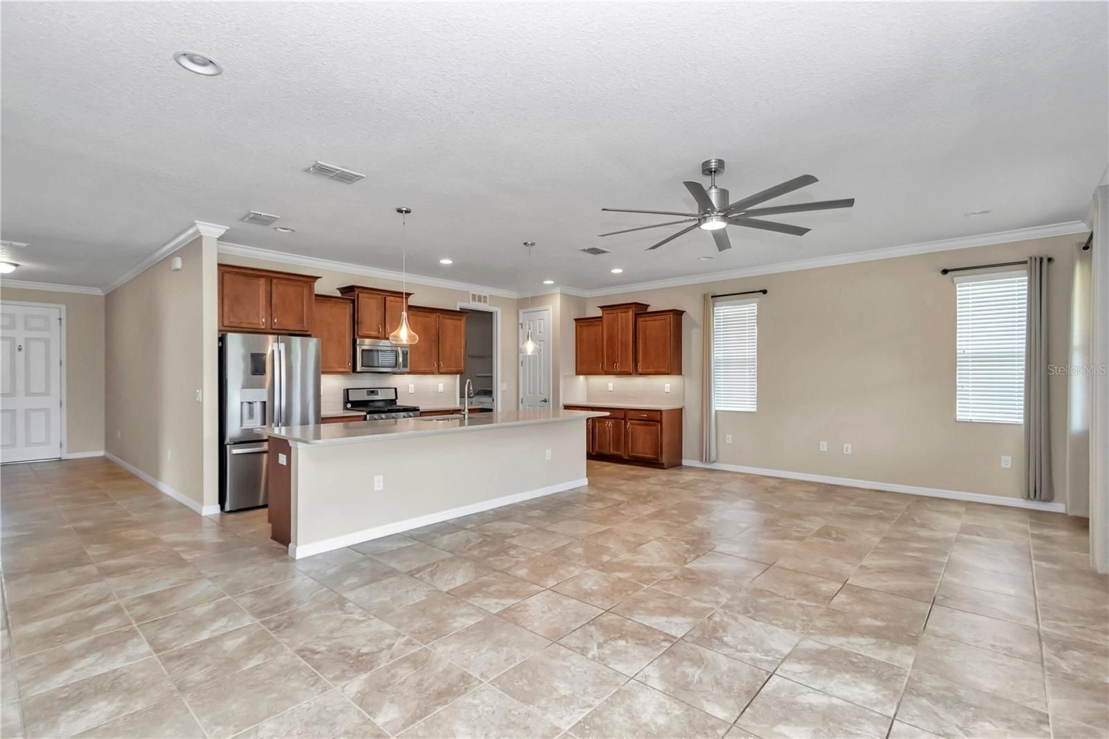 Vacant and Move in Ready!!Welcome to your dream Windsor model retreat in the vibrant 55+ community of On Top of the World! This stunning corner lot in a cul de sac home built in 2017, offers the perfect blend of contemporary design and serene living, ideal for those seeking an active and fulfilling lifestyle. As you step inside, you are greeted by an inviting open floor plan that seamlessly connects the living, dining, and kitchen spaces. The abundance of natural light floods the area, enhancing the home’s warmth and welcoming ambiance. This 2 bedroom and 2 bath plus den/office/sewing room opens to The spacious living room flows effortlessly into the dining area, making it perfect for entertaining family and friends or enjoying quiet evenings at home. At the heart of this home lies a beautifully designed kitchen that will delight any chef. Featuring sleek stainless steel appliances, ample cabinetry, and a huge island, it provides both functionality and a stylish focal point for culinary adventures. Imagine gathering around the island for casual meals, coffee chats, or simply a place to showcase your culinary talents! Step outside to the serene screened-in lanai, where you can relax and soak in the tranquility of your private Greenway backyard. The lanai is perfect for sipping your morning coffee or unwinding with a good book in the evening breeze. The picturesque palms of the backyard adds to the peaceful atmosphere, giving you a sense of sanctuary right at home. The corner lot not only provides additional space and privacy but also enhances the curb appeal of this charming property, surrounded by the community's picturesque landscaping and friendly neighbors. Experience all that the On Top of the World community has instore, from social clubs to fitness activities and beautiful walking trails, ensuring that there's never a dull moment for its residents. Here, you can create cherished memories in a vibrant environment tailored to your lifestyle. Don’t miss the opportunity to make this stunning home yours and embrace the enriching experiences that await in this exceptional community! Visit today and see for yourself why this property is the perfect place to call home. Hoa is 512.80 / month an includes all of the incredible amenities of On Top of the World a wonderful golf cart community!