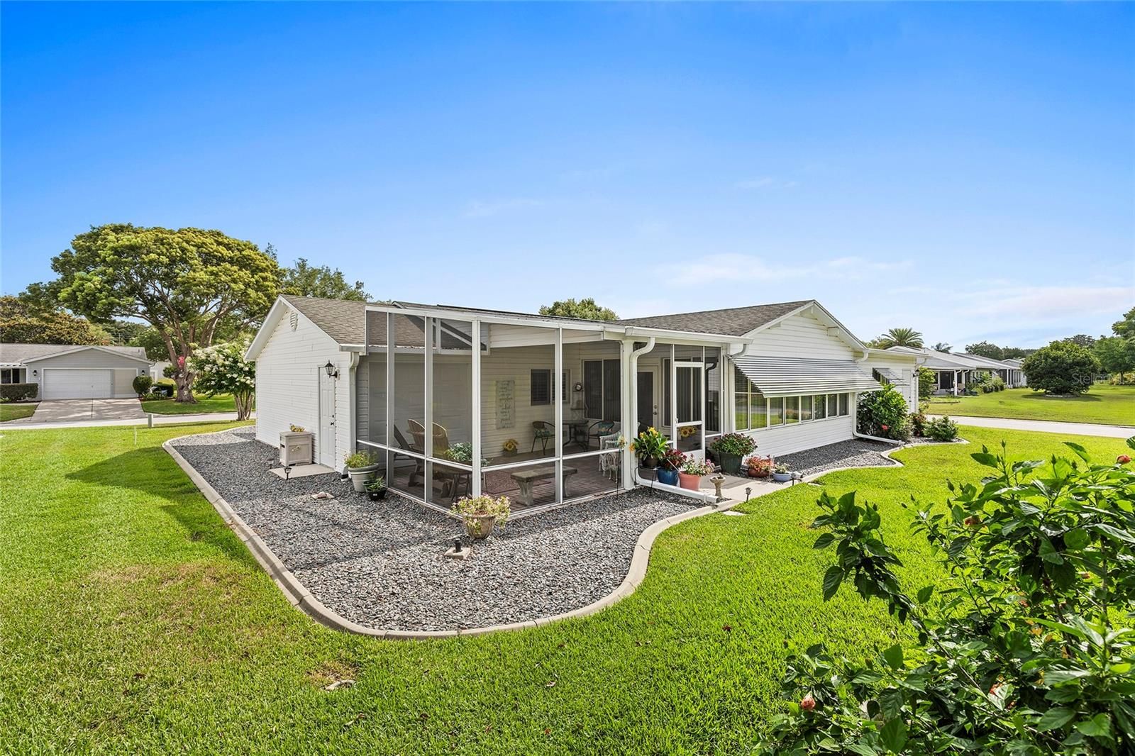 Located within the Premier 55+ Gated Golf Course Community of SPRUCE CREEK SOUTH, this exceptional home offers the perfect blend of relaxed Florida living and everyday convenience. Minutes from THE VILLAGES, FLORIDA off Hwy 441 / US 27, the property is ideally positioned near fine dining, upscale shopping, top rated hospitals, and provides easy access to I-75 for travel and day trips. The home is being sold FULLY FURNISHED and includes a 2018 YAMAHA GOLF CART, allowing you to settle in and start enjoying the lifestyle immediately. This inviting 3 Bedroom, 2 Bath Holly Floor plan sits on a desirable corner lot and welcomes you with soaring ceilings in the living and dining areas that create a bright, OPEN atmosphere. LAMINATE Flooring runs through the main living spaces and the primary bedroom, while Carpeting adds comfort to the guest bedrooms and the Florida Room. UPDATED Cabinetry in both the Kitchen and Bathrooms enhances the home’s style and functionality, making everyday living both comfortable and efficient. One of the standout Features is the SPACIOUS 22 x 14 FLORIDA ROOM under air, complete with a vaulted ceiling, offering an ideal space for entertaining guests or unwinding with a peaceful morning coffee. Just beyond, a SCREENED PATIO provides a quiet outdoor escape, and the adjacent 9 x 25 STORAGE ROOM opens the door to endless possibilities, whether used as a hobby space, studio, workshop, or private retreat. The exterior is just as impressive, with attractive landscaping that adds curb appeal and a practical layout that includes a TWO CAR Garage plus a separate GOLF CART GARAGE with convenient side entry and utility door. Major systems have been thoughtfully maintained, with the HVAC replaced in 2020 and the water heater in 2012, offering added peace of mind. Surrounded by resort-style amenities and a welcoming neighborhood atmosphere, this home delivers a lifestyle that feels like a year round vacation. Don’t miss your opportunity to enjoy comfort, convenience, and community in one of central Florida’s most desirable active adult communities...Spruce Creek South.