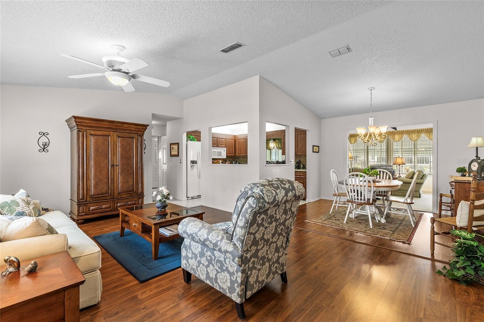 - Cathedral Ceiling(s), Ceiling Fan(s), Eat-in Kitchen, Living/Dining Room, Open Floorplan, Main Level Primary, Walk-In Closet(s)