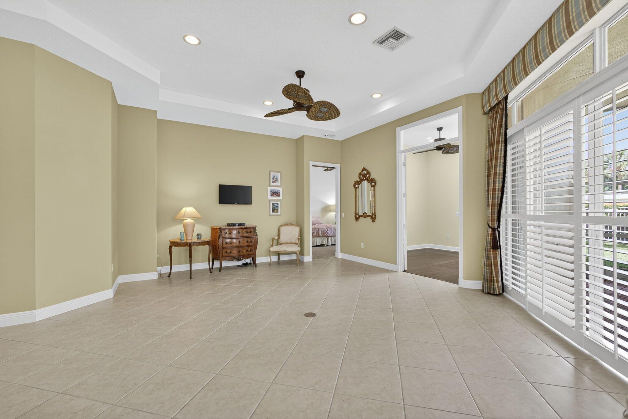 Great opportunity to own a stunning and private Coronado model situated on an oversized fenced lot in desirable Buena Vida! As you enter this impeccable home through double glass front entry doors you'll see it's move-in ready, has many extras! This home boasts NEW A/C w/WARRANTY (2024), ACCORDION HURRICANE SHUTTERS, Plantation Shutters throughout, custom drapery, a den w/ laminate wood flooring & French doors. The den can also be easily converted to a 3rd bedroom w/ easy access through a sliding glass door to your private backyard. This home also features tile on the diagonal throughout, strategically placed custom mirrors in the foyer, tray ceilings, rounded corner beads and abundance of high-hat lighting keeping this home light and bright. The upgraded formal dining room offers ... elegant columns while the kitchen offers a NEW microwave (2023), pendant lighting, upgraded white kitchen cabinetry, under cabinet lighting, Corian counter tops, decorative full tile backsplash and glass display cabinets on kitchen island. The primary suite offers high ceilings, large windows, designer built-in closets, dual bathroom vanities in the spacious bathroom with a spa tub and upgraded tile. You'll love the upper cabinets in the laundry room that provide extra storage space while presenting a clean and tidy look. Step outside to the screened-in patio and large fenced backyard where you can relax or entertain in total privacy. HOA FEE INCLUDES: Man-guarded gated entry, lanscaping, cable with a premium channel, internet and $500 a year ($41.66/mo.) of your HOA fees goes towards your cafe' card for purchasing food & beverage at the cafe'. Buena Vida is Wellington's premier boutique 55+ active community offering a newly renovated clubhouse and marvelous amenities such as: Resort Style Pools, Cafe, Spa, Sauna, 4 NEW PICKLE BALL COURTS, 6 Har-Tru Tennis Court, State of the Art Fitness Center, Library, Card Rooms, Billiard Room and entertainment in the luxurious Ballroom - just to name a few! Offering the BEST location in Wellington, Buena Vida is just minutes to great restaurants, shopping, entertainment, Wellington International Equestrian events, parks and top-notch medical facilities, yet also close to the beaches, cultural venues, downtown areas & PBI International Airport. Luxuries abound in this well-manicured community with all the indulgence you deserve. ** Wellington, FL made the Forbes Magazine's list of 50 Best Places to Live for the second consecutive year (2023/24).