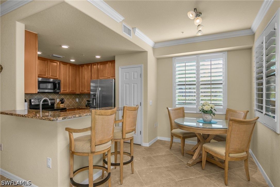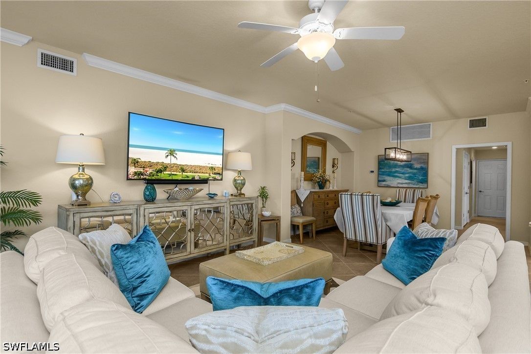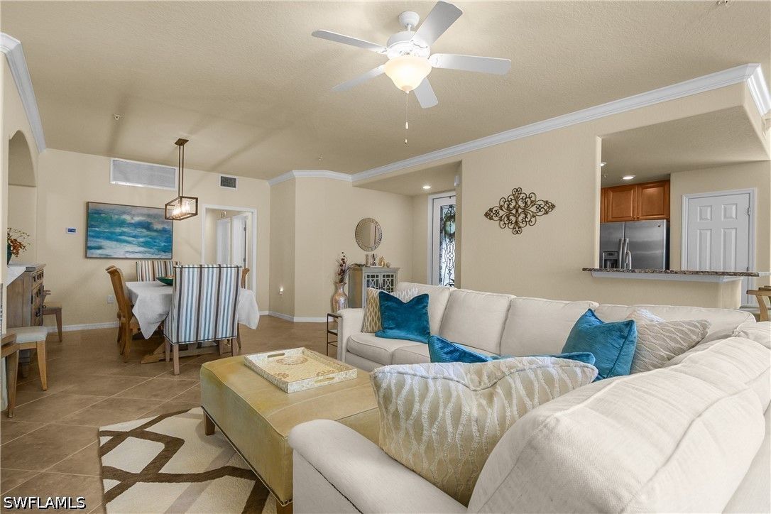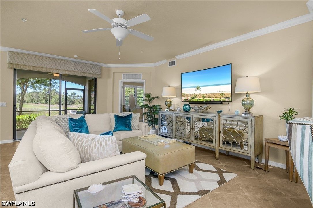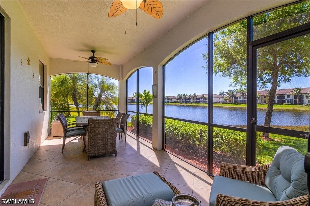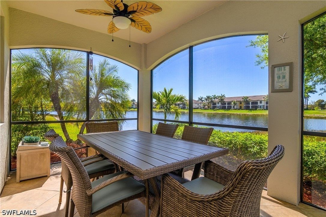 Welcome to 9497 Casoria Ct #101, a highly sought-after social membership, lake side, first-floor coach home in the prestigious, gated community of Treviso Bay in Naples, Florida. Perfectly positioned on a quiet cul-de-sac with an extra-long driveway and no building to your right, this rare 3-bedroom, 2-bath residence with a spacious 2-car garage offers privacy, comfort, and serene lakeside living in one of Naples’ premier resort-style communities. Step inside to a light-filled, open-concept floor plan designed for both everyday living and entertaining. The living area flows seamlessly to your screened lanai, where tranquil lake views create the perfect backdrop for morning coffee or evening relaxation. Thoughtful upgrades enhance the home throughout, including plantation shutters, a tiled lanai, and electric privacy shades on the sliding glass doors in both the living room and primary suite—offering convenience and a touch of modern luxury. The revamped laundry room adds both style and function with upgraded washer and dryer, additional cabinetry, and a built-in countertop workspace. An added front screen enclosure allows for refreshing cross-breezes, bringing the Florida lifestyle right into your home. For peace of mind, the AC system was replaced in 2025. The spacious primary suite offers direct access to the lanai along with peaceful lake views, while two additional bedrooms provide flexibility for guests, a home office, or hobby space. With its first-floor convenience and coach home design, this property lives like a single-family home while offering low-maintenance living. Treviso Bay is renowned for its world-class amenities and luxury resort lifestyle. Residents with a social membership enjoy access to the stunning Club Rilassare, featuring a resort-style lagoon pool with waterfalls, hot tub, poolside restaurant and bar, state-of-the-art fitness center, full-service spa, tennis courts, pickleball, bocce, and an active social calendar filled with events and activities. The community also offers miles of scenic walking and biking trails, beautifully landscaped grounds, and a vibrant, welcoming atmosphere that makes every day feel like a vacation. The main clubhouse offers casual and fine dining, as well as a host of different events, and overlooks the private TPC golf course, available to social members May - October. Located just minutes from downtown Naples, Fifth Avenue South, world-class dining, shopping, and the Gulf’s white-sand beaches, this exceptional property offers the perfect blend of luxury, location, and lifestyle. Experience the best of Naples living—where you don’t just own a home, you own your day.