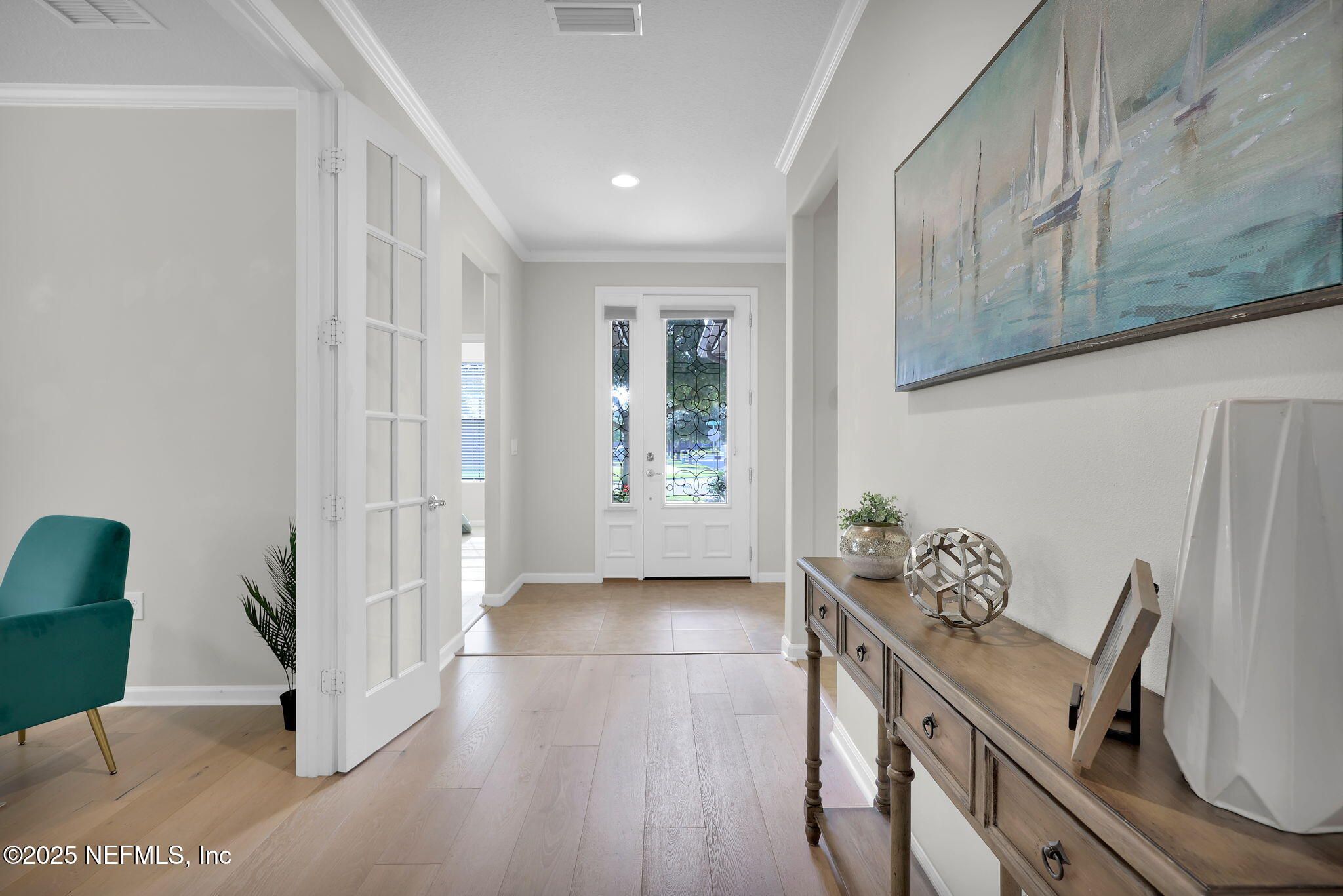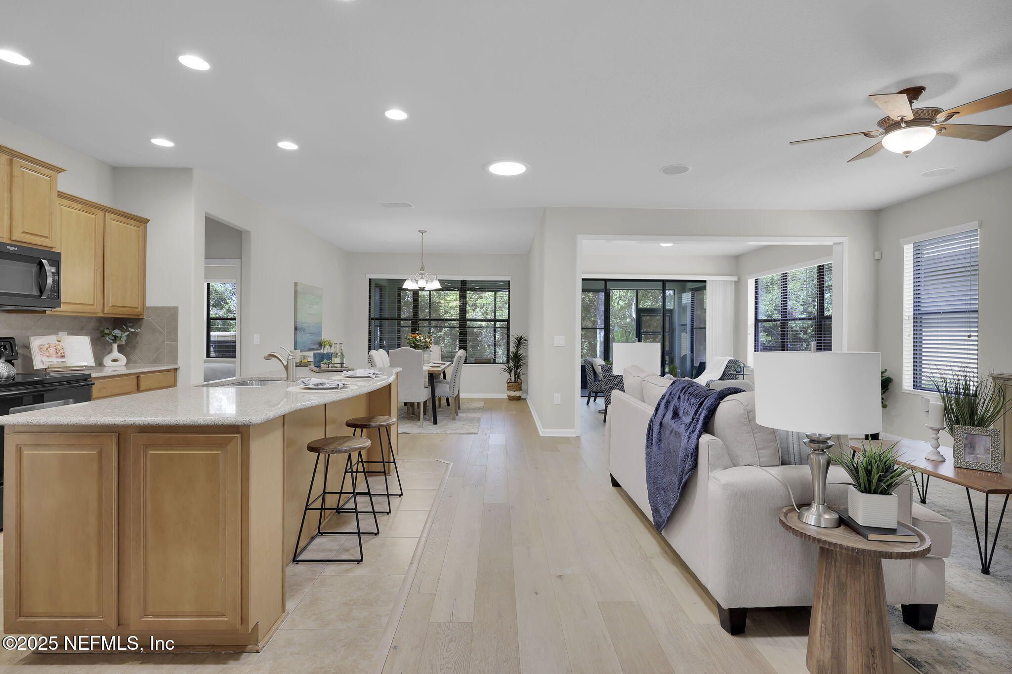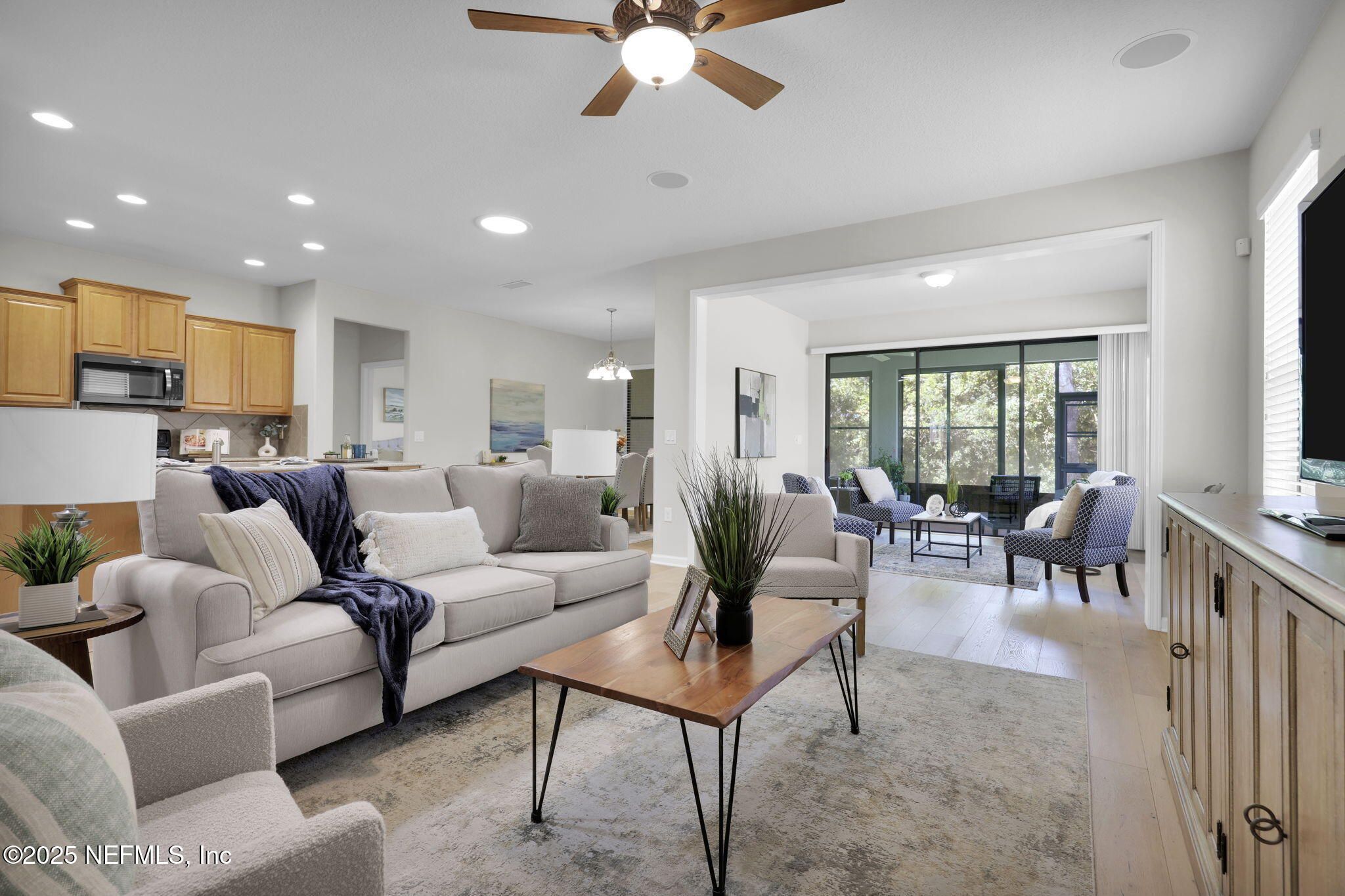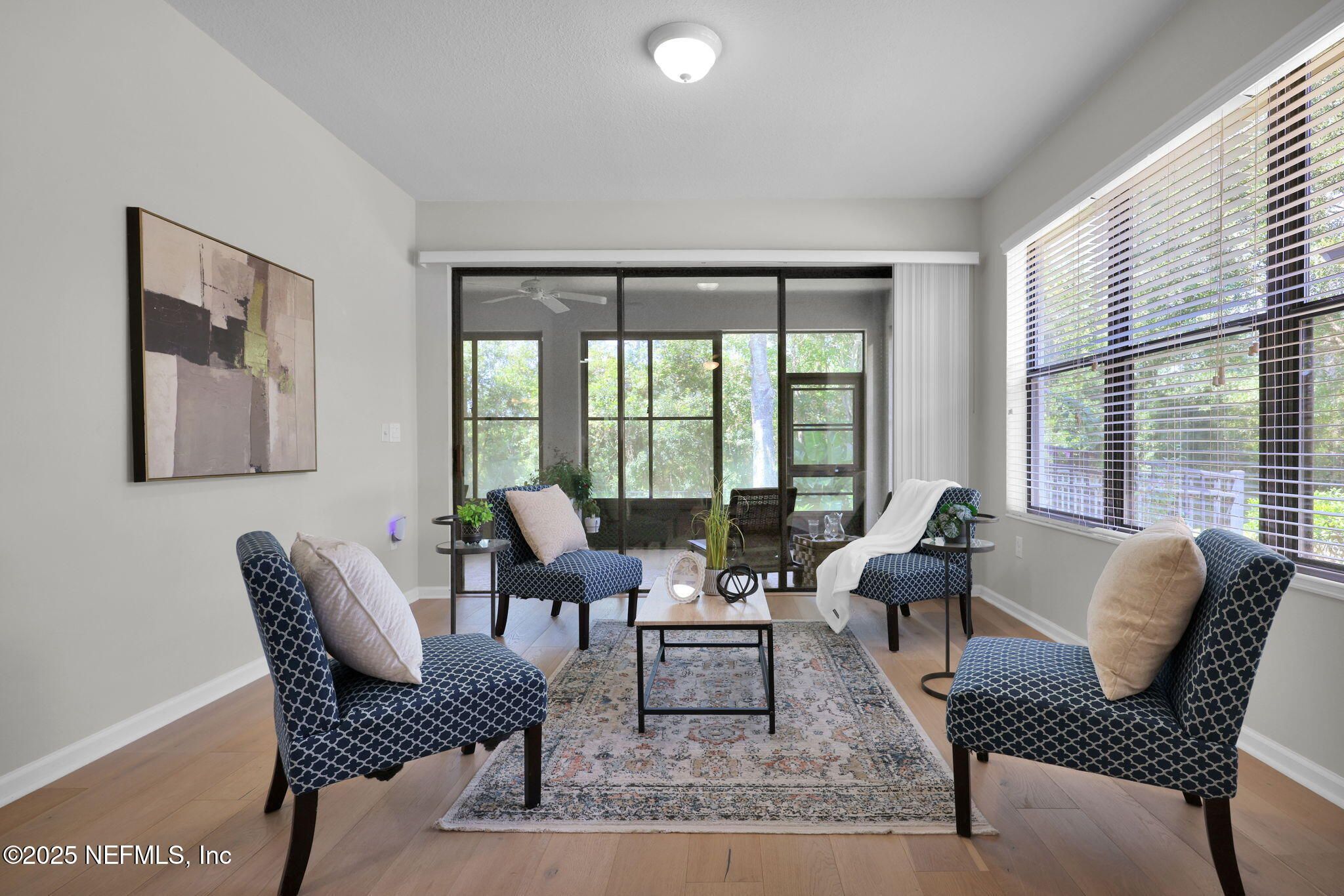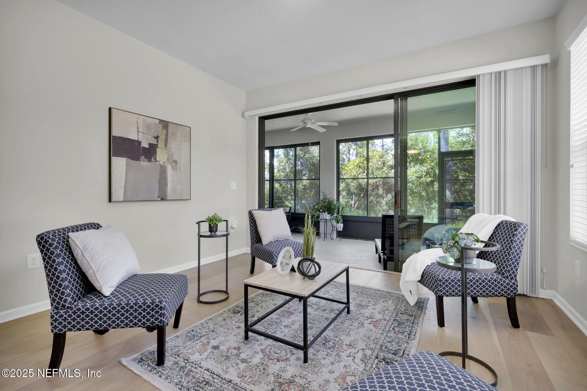 Welcome to the 55+ active adult community of Riverwood by Del Webb. This expanded single story Summerwood model has 2 bedrooms, 2 full baths as well as 2 additional flex rooms which can be used as 3rd or 4th bedrooms, a home office, an exercise room or craft room, etc. A beautiful glass front door, many windows and two solar tubes makes for so much natural light which complements the beautiful wood flooring. The open kitchen has an oversized island overlooking the family room with granite countertops, lots of cabinets and a walk in pantry. The dining room off the kitchen and sitting room make this home perfect for entertaining. An enclosed porch across the back of the home and the fully fenced shaded backyard is perfect for watching the local wildlife in the nature preserve. The large laundry room has a countertop for folding and a sink. Includes Bose surround sound speaker system and hurricane storm shutters. HVAC system replaced January 2025 Riverwood by Del Webb also known as Del Webb Ponte Vedra is situated within the award winning master planned golf cart community of Nocatee, FL. The clubhouse known as The Anastasia Club offers an active 55+ lifestyle that can't be beat. Clubhouse amenities include a resort style outdoor pool, a heated indoor lap pool, a spa and sauna, a full fitness center, billiards and a game room, pickleball and tennis courts and bocce ball. So many classes and clubs are offered to the residents who are interested in exercising, traveling, reading, dancing, photography, ceramics and more. The Nocatee Town Center is only minutes away where you can enjoy many restaurants or shopping at the multiple grocery or retail stores. Many residents spend their time enjoying the Splash or Spray Water Parks, the Jr. Olympic heated outdoor lap pool, volleyball, basketball, playing at the dog park or walking and biking the miles of trails. If the beach is calling you, the 15 minute drive to Micklers Public Beach Access couldn't be any easier. If you prefer the Intracoastal Waterway, a quick trip to the Nocatee kayak launch gets you on the water even faster. Make your appointment today so you can start living the active lifestyle you have imagined!
