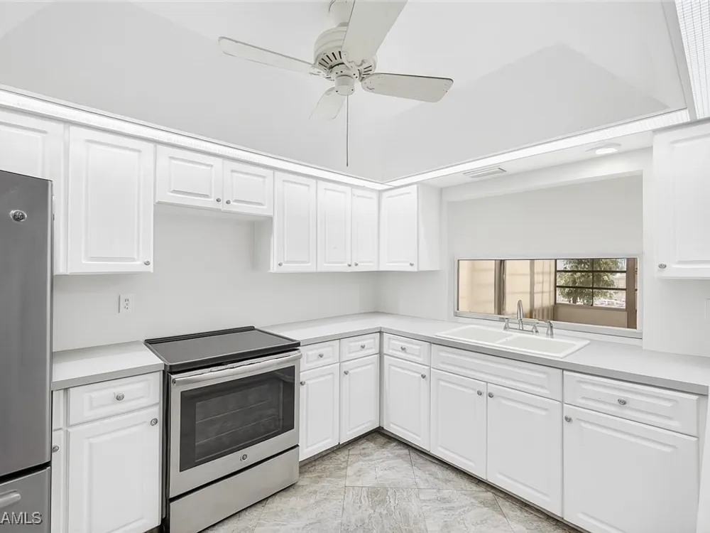LOWEST PRICED HOME IN RIVIERA GOLF ESTATES! Nestled in this serene community, this charming single-family home offers 2 bedrooms and 2 bathrooms across 1,458 sqft of living space. Built in 1984 on a 7,840 sqft lot, the property features LVP flooring, central electric cooling and heating, and modern conveniences including a dishwasher, microwave, and refrigerator. Enjoy Florida living with an oversized lanai overlooking golf and lake views with a coveted SW exposure, perfect for al fresco dining or relaxing evenings. A two-car attached garage adds convenience, while a low HOA fee helps keep community amenities accessible without breaking the budget. Ideally located in South Naples, this home puts beaches, fine dining, shopping, and I-75 within easy reach. Whether you’re downsizing, seeking a vacation hideaway, or a golf retreat, this property delivers comfort, views, and convenience in one delightful package. Please read Confidential Remarks, thanks!