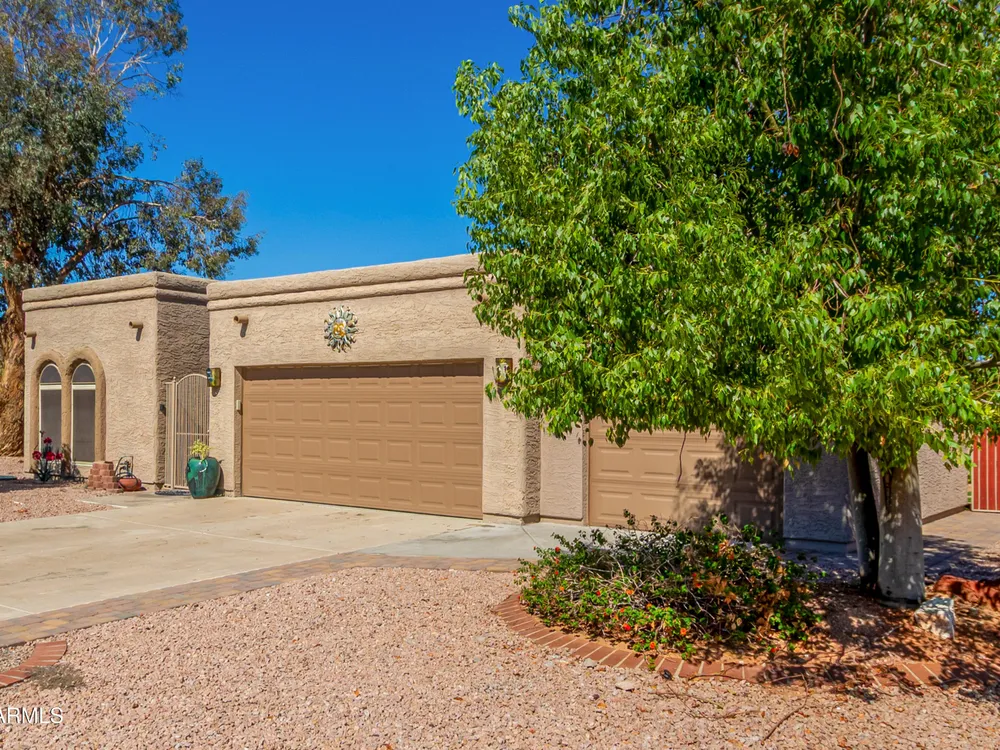 Home Sweet Home. Charming 2-bedroom, 2-bath home with a 3-car garage in the highly desirable 55+ community of Sun Lakes. Freshly painted exterior, covered rear patio with large yard, inviting kitchen with updated appliances, and inside washer and dryer included. Roof recoated in 2023 Enjoy resort-style living with pickleball, golf, on-site dining, live music and countless social activities.