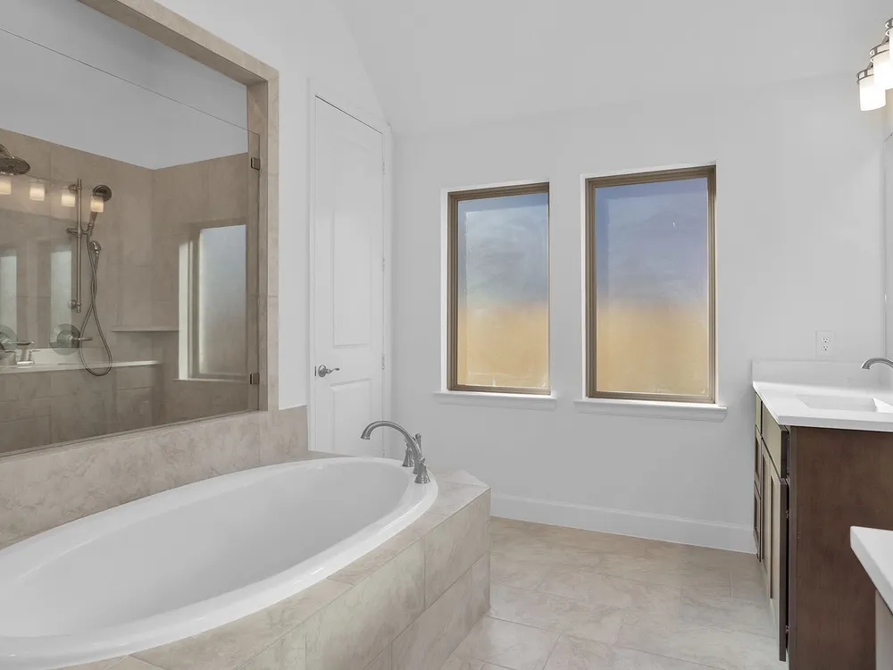 - Double Vanity, Entrance Foyer, High Ceilings, Kitchen Island, Kitchen/Family Room Combo, Pantry, Quartz Countertops, Soaking Tub, Separate Shower, Tub Shower, Ceiling Fan(s), Kitchen/Dining Combo, Programmable Thermostat